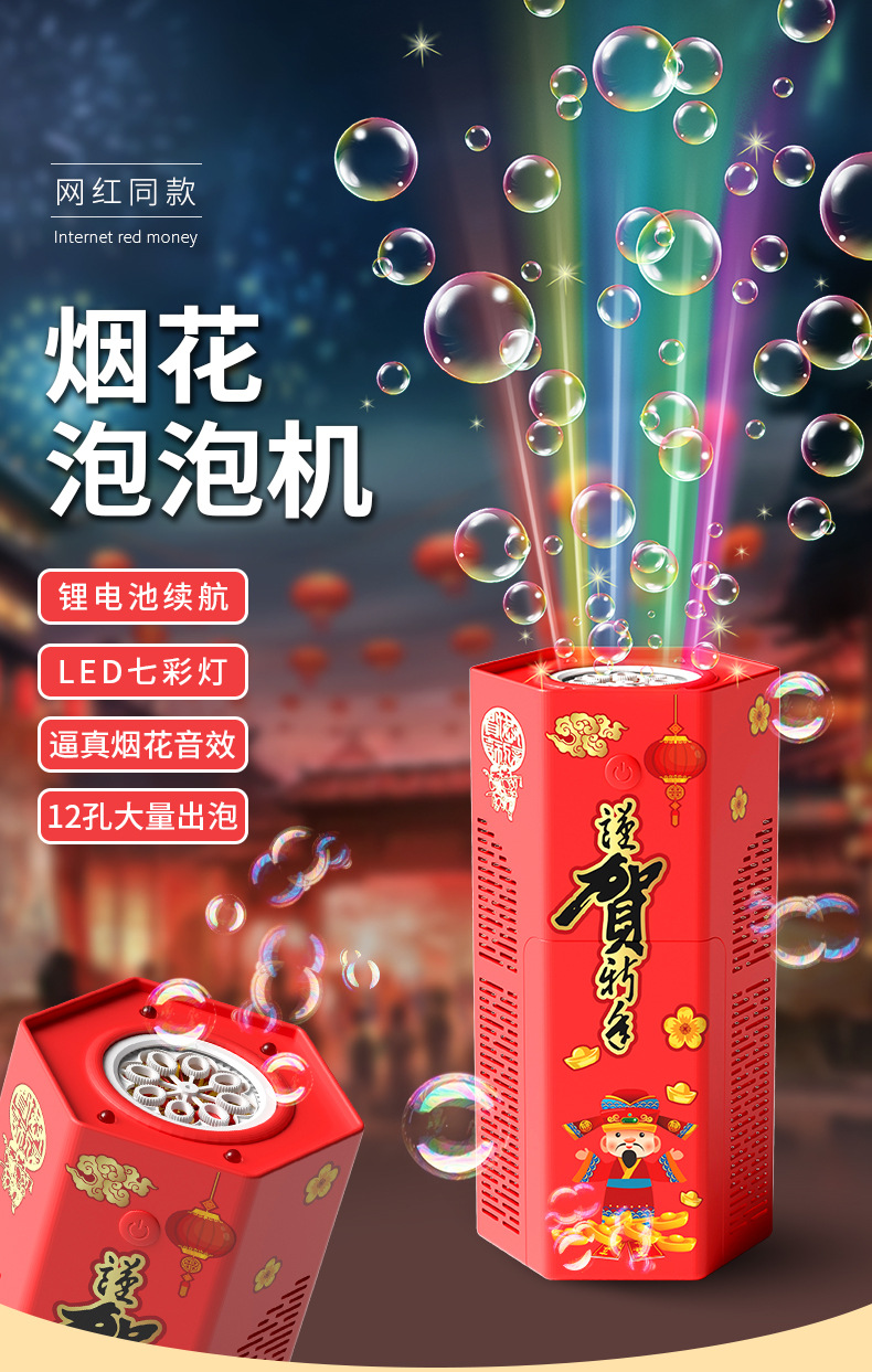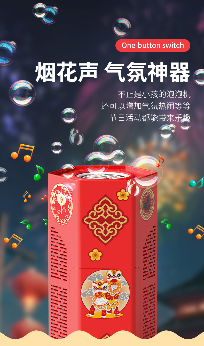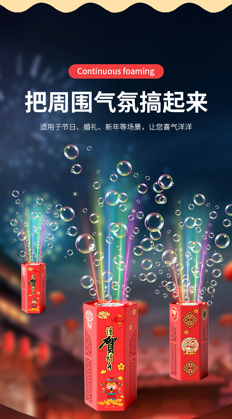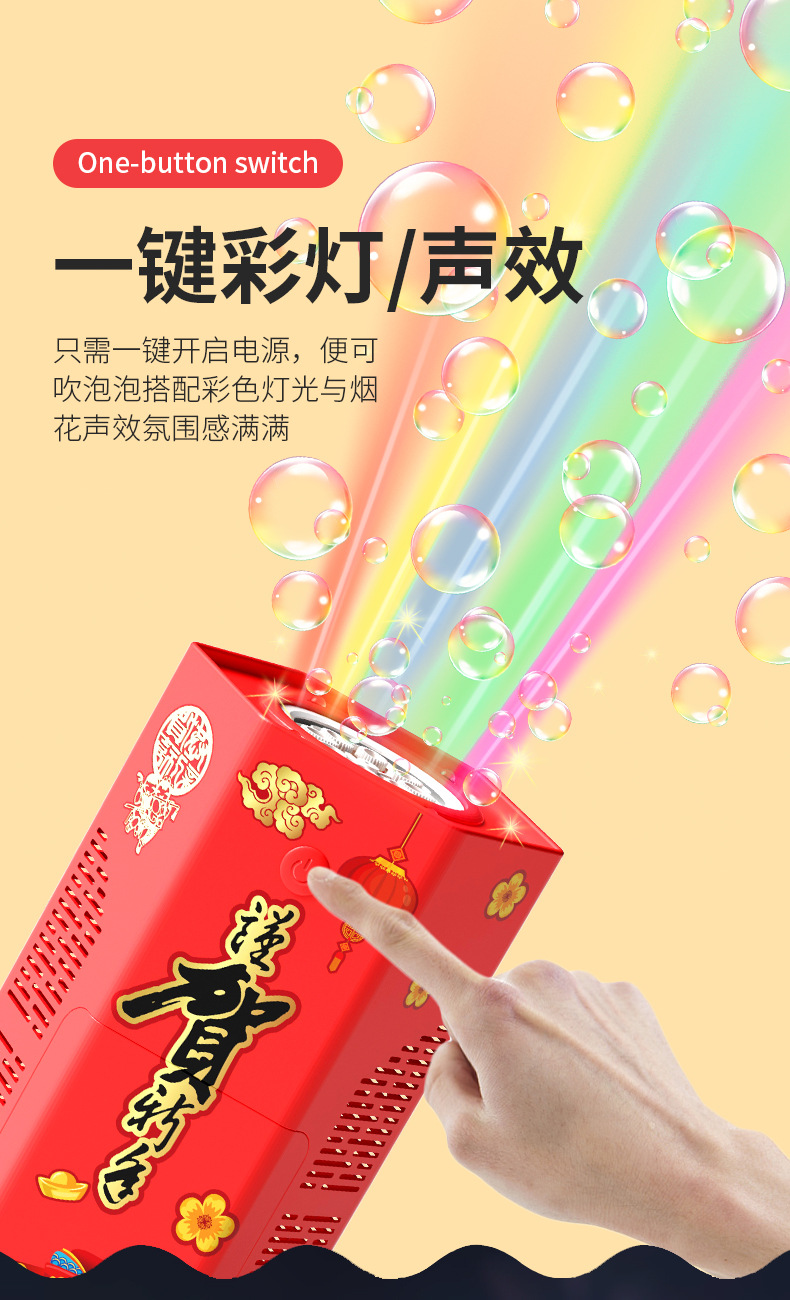 爆款新年好物!【一键启动!欢乐不停】网红春节烟花泡泡机,儿童全自动音效鞭炮,吹泡泡玩具器烟花泡泡筒,全自动音效鞭炮响起,炫彩光影璀璨夺目!
