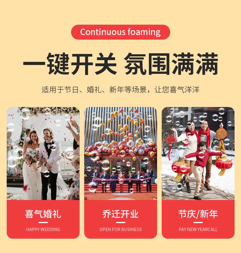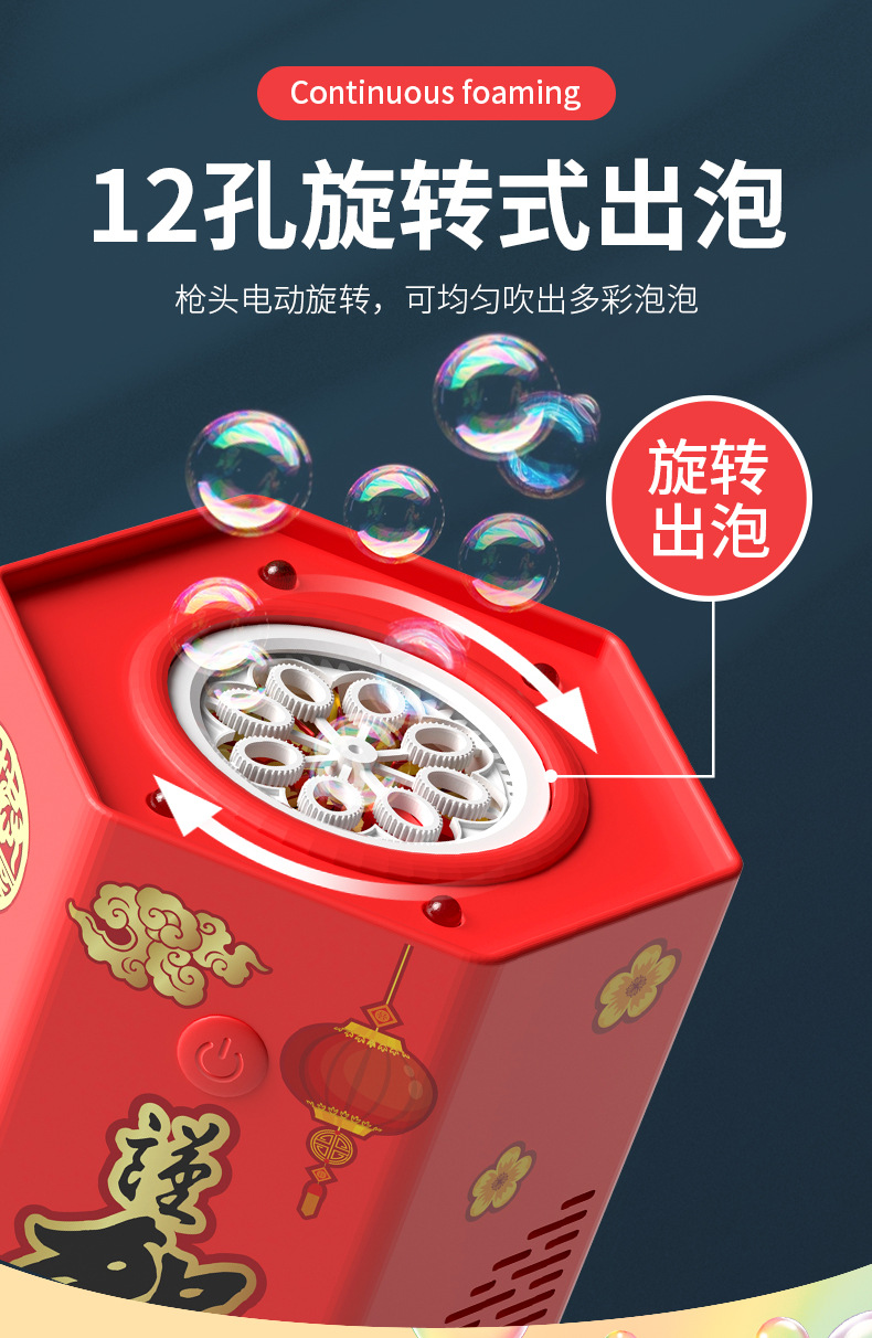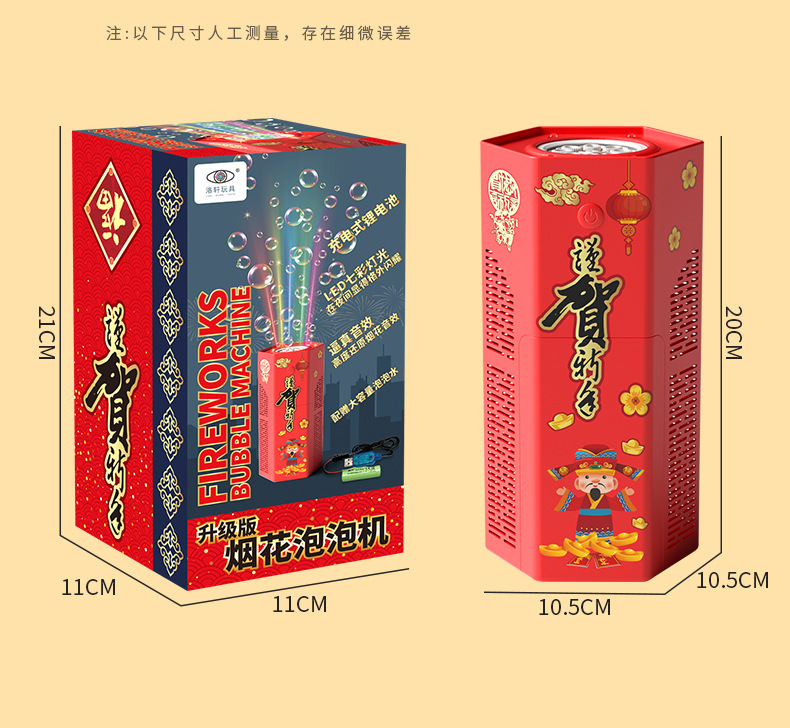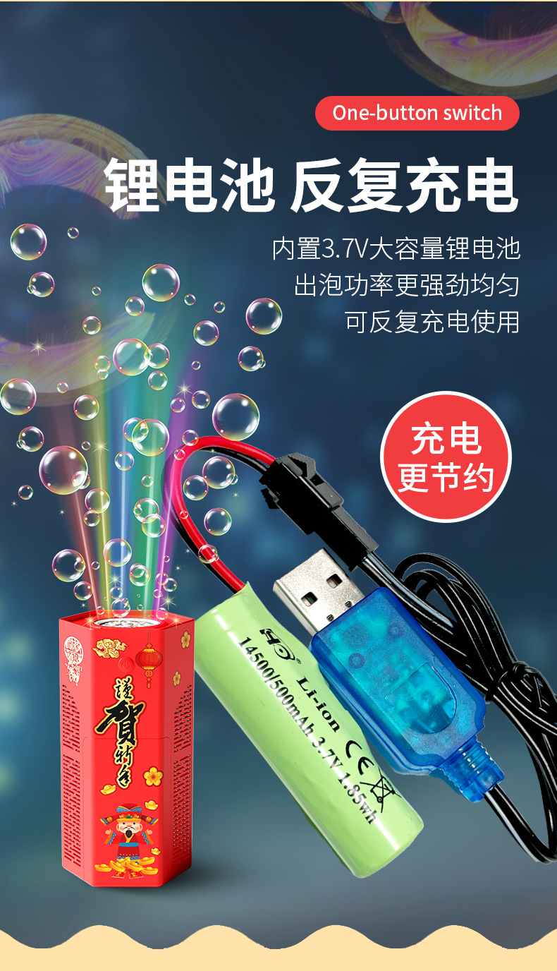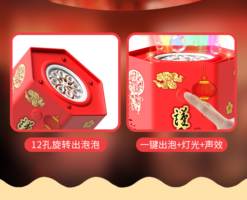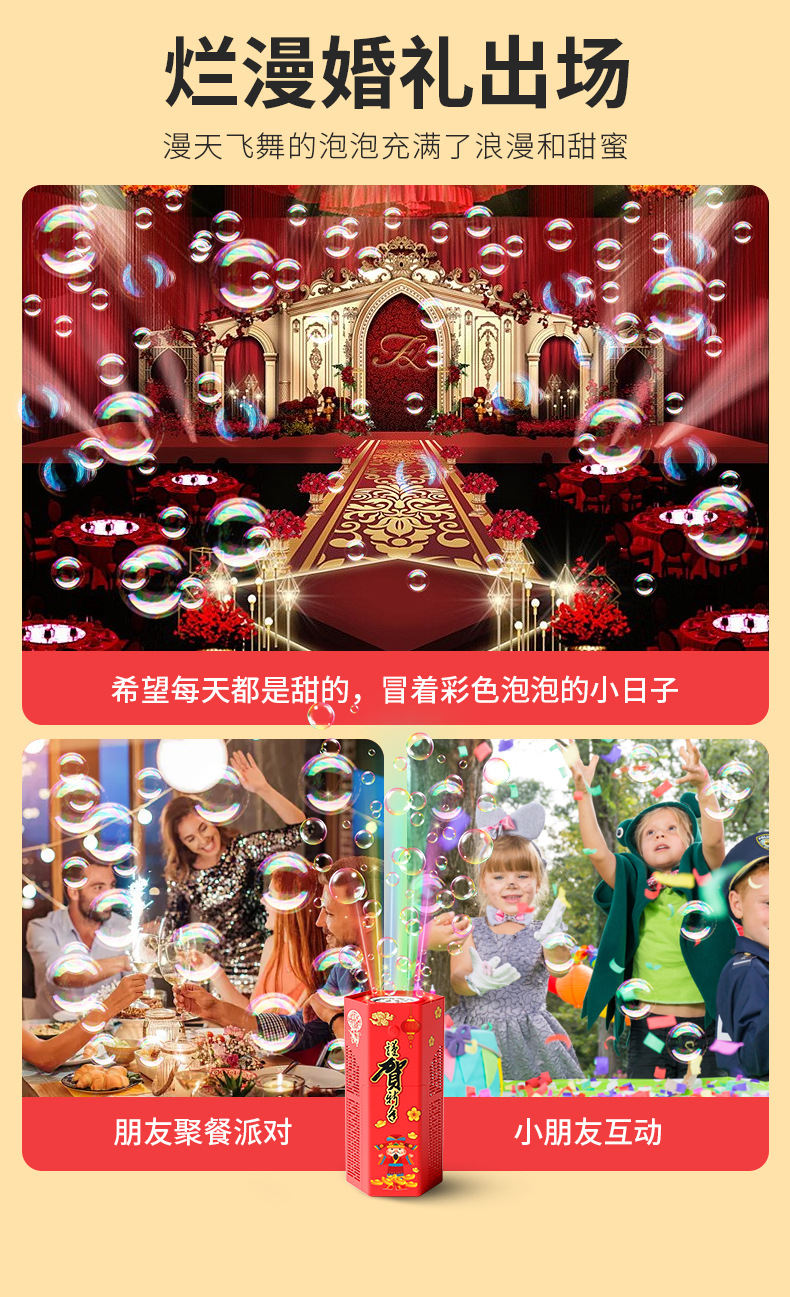 爆款新年好物!【一键启动!欢乐不停】网红春节烟花泡泡机,儿童全自动音效鞭炮,吹泡泡玩具器烟花泡泡筒,全自动音效鞭炮响起,炫彩光影璀璨夺目!