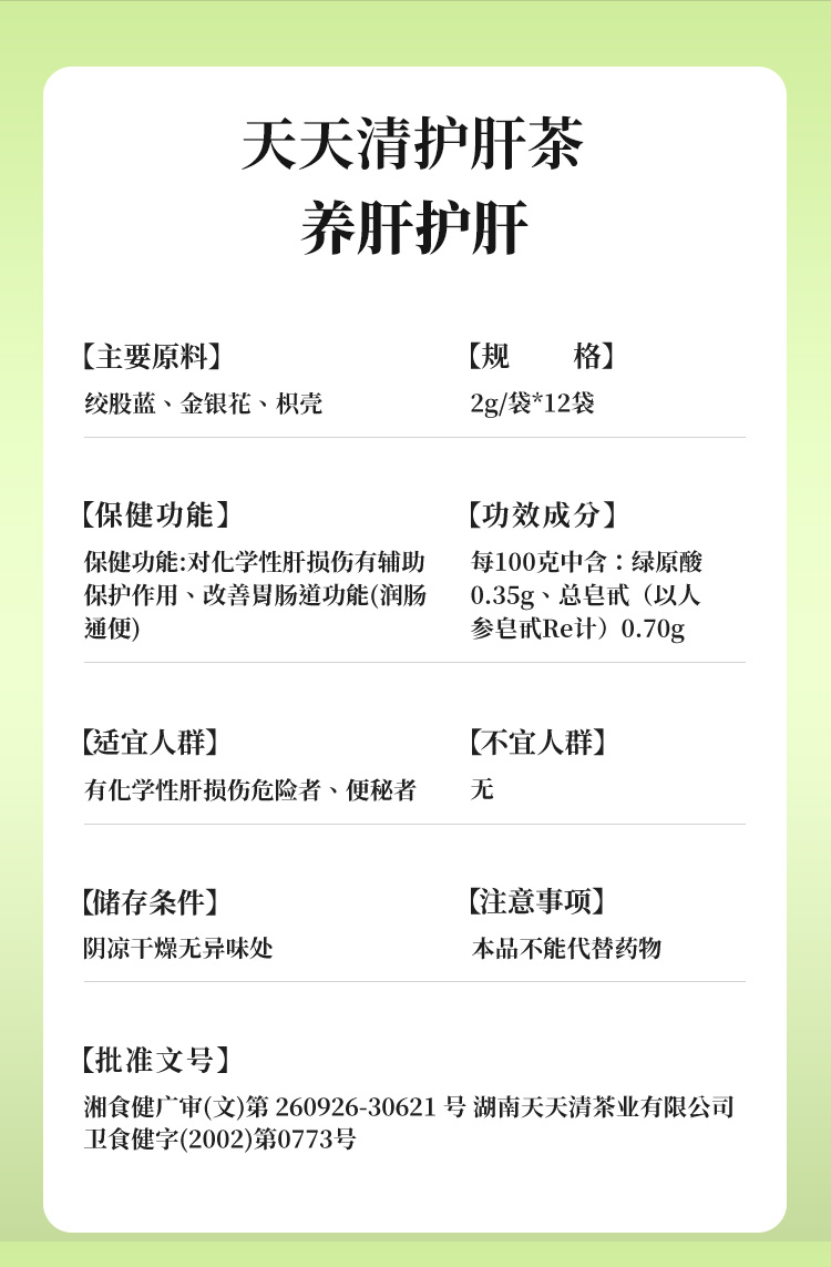 天天清养肝护肝茶 2g/袋*12袋 润肠通便绞股蓝