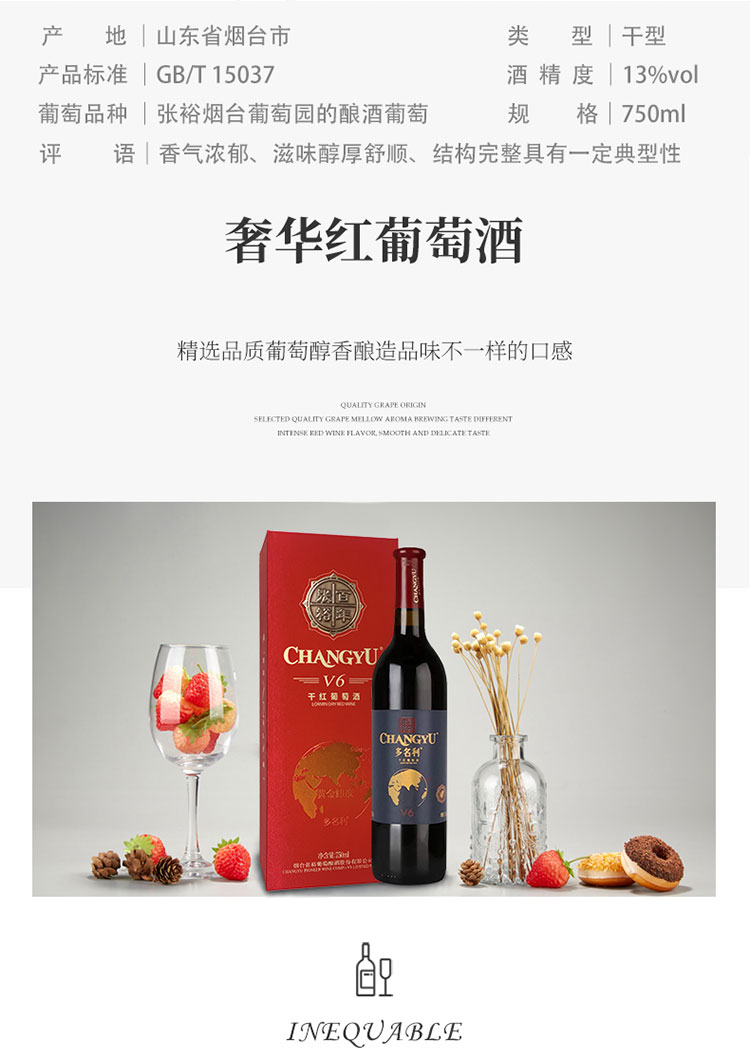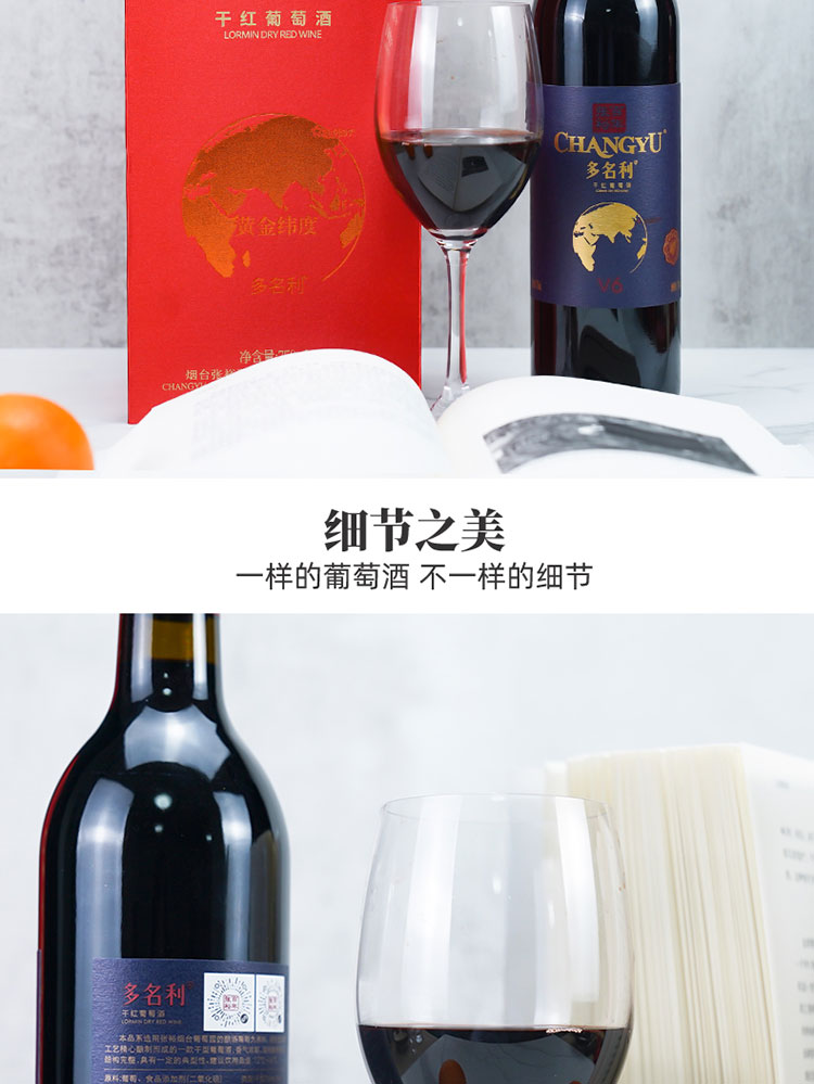 【会员专享】张裕多名利黄金纬度干红(V6)750ml*1瓶(盒装)(买一赠一)