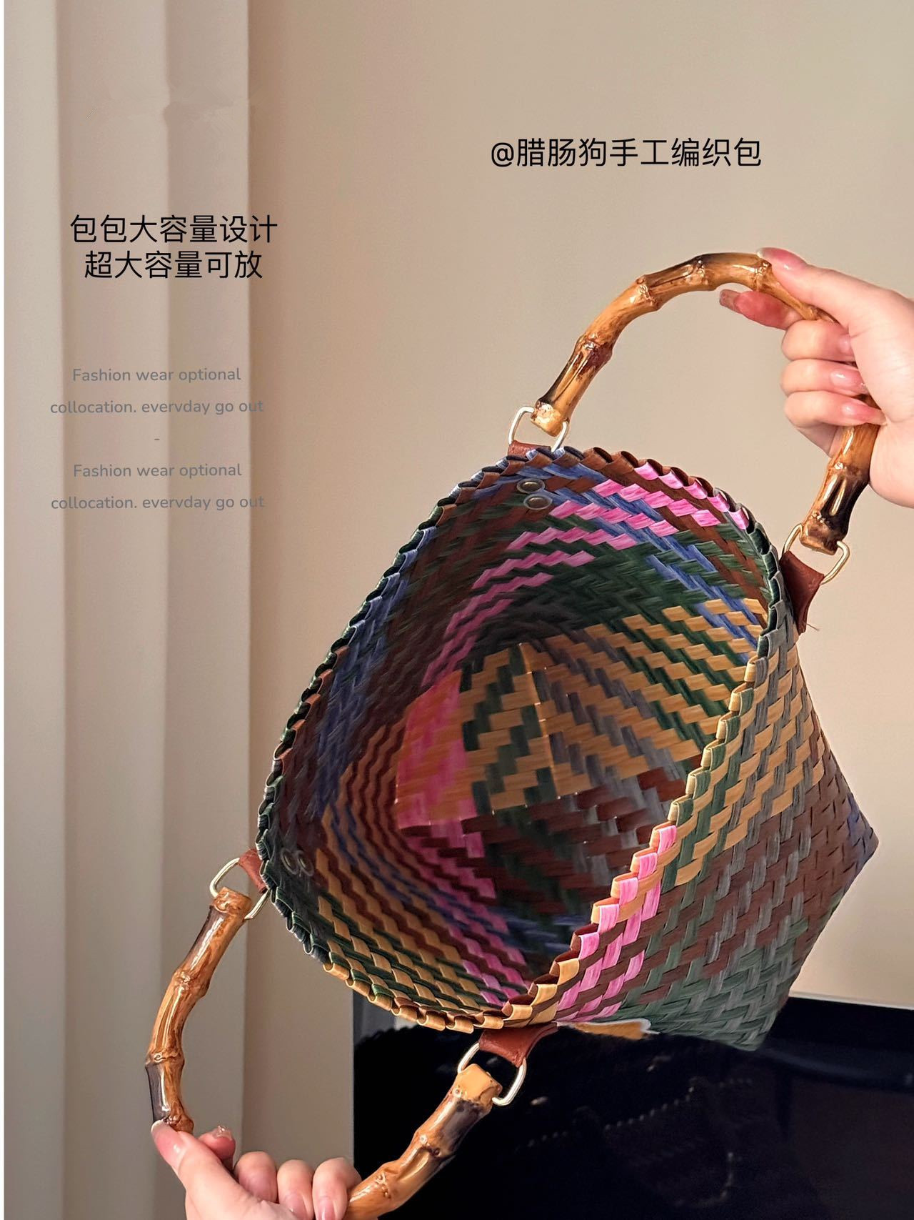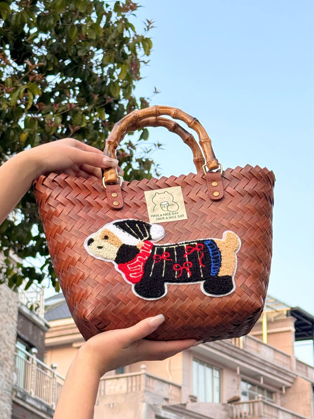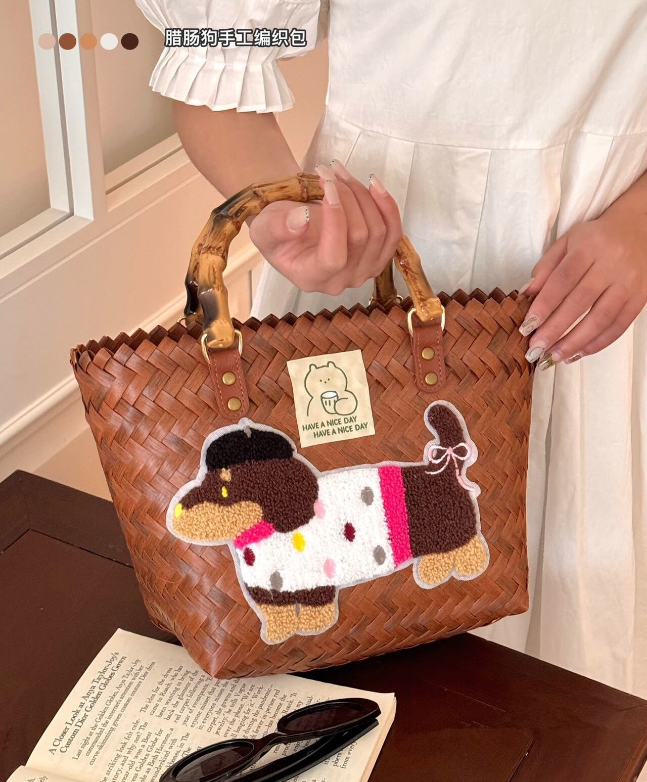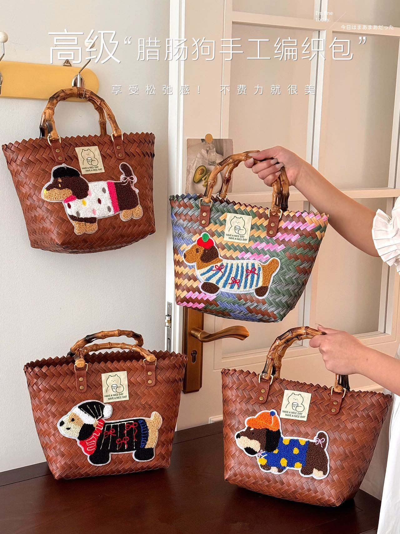 【YiLuoShan腊肠狗手工编织包】环保PP仿藤材质 做工精致 慵懒时尚感 休闲通勤都可搭配
