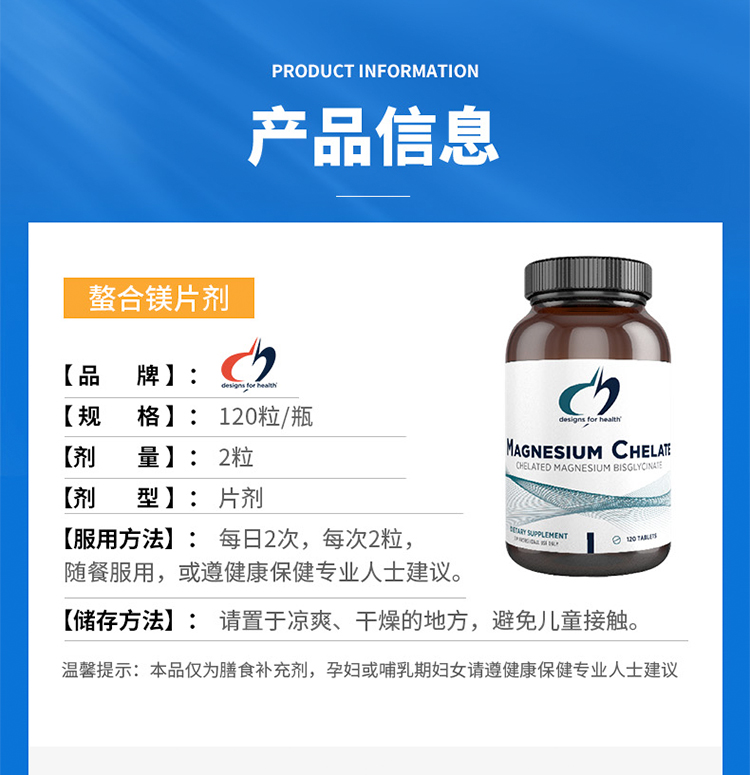 【效期至26年1月】螯合镁胶囊 design for health Magnesium Chelate 120粒/瓶