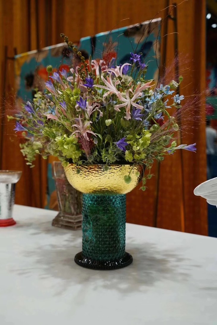 大都会花器-伊斯坦布尔尺寸:20*20*24.5cm材质:玻璃;外电镀金,蓝瓶黑低