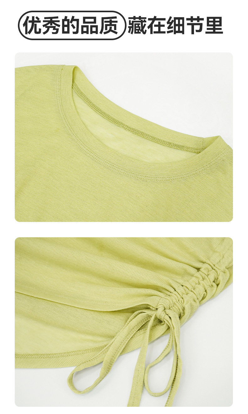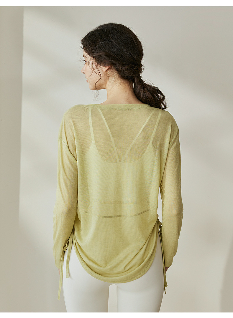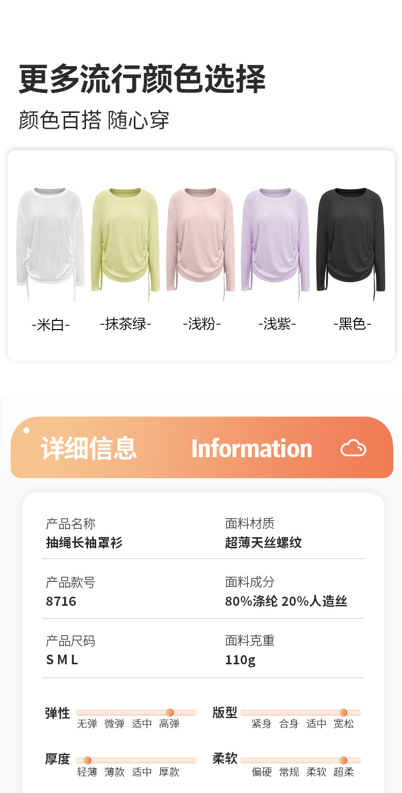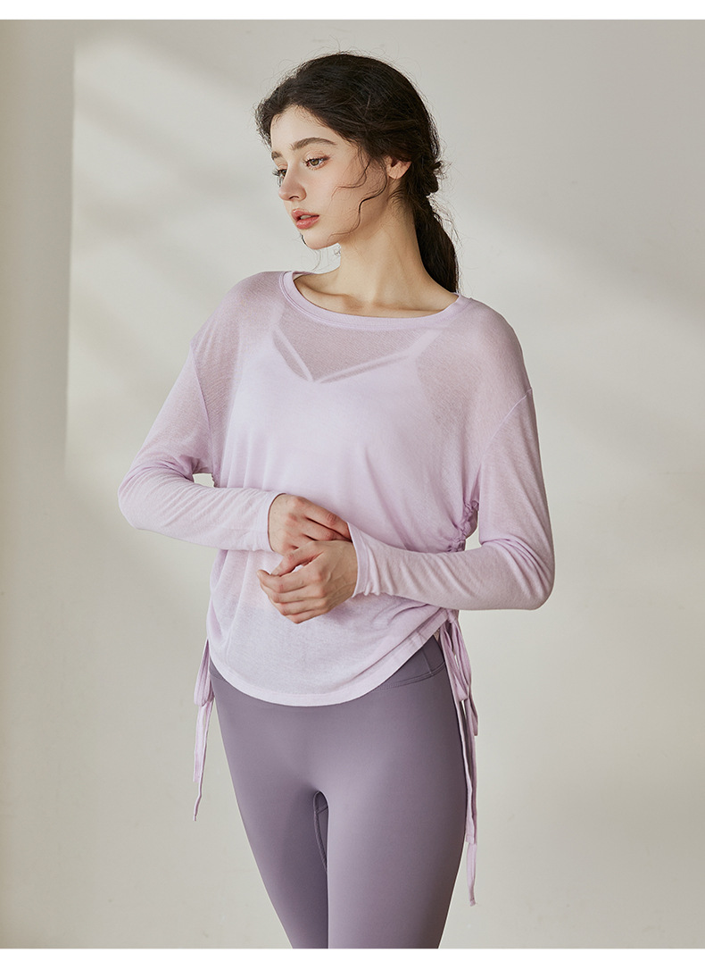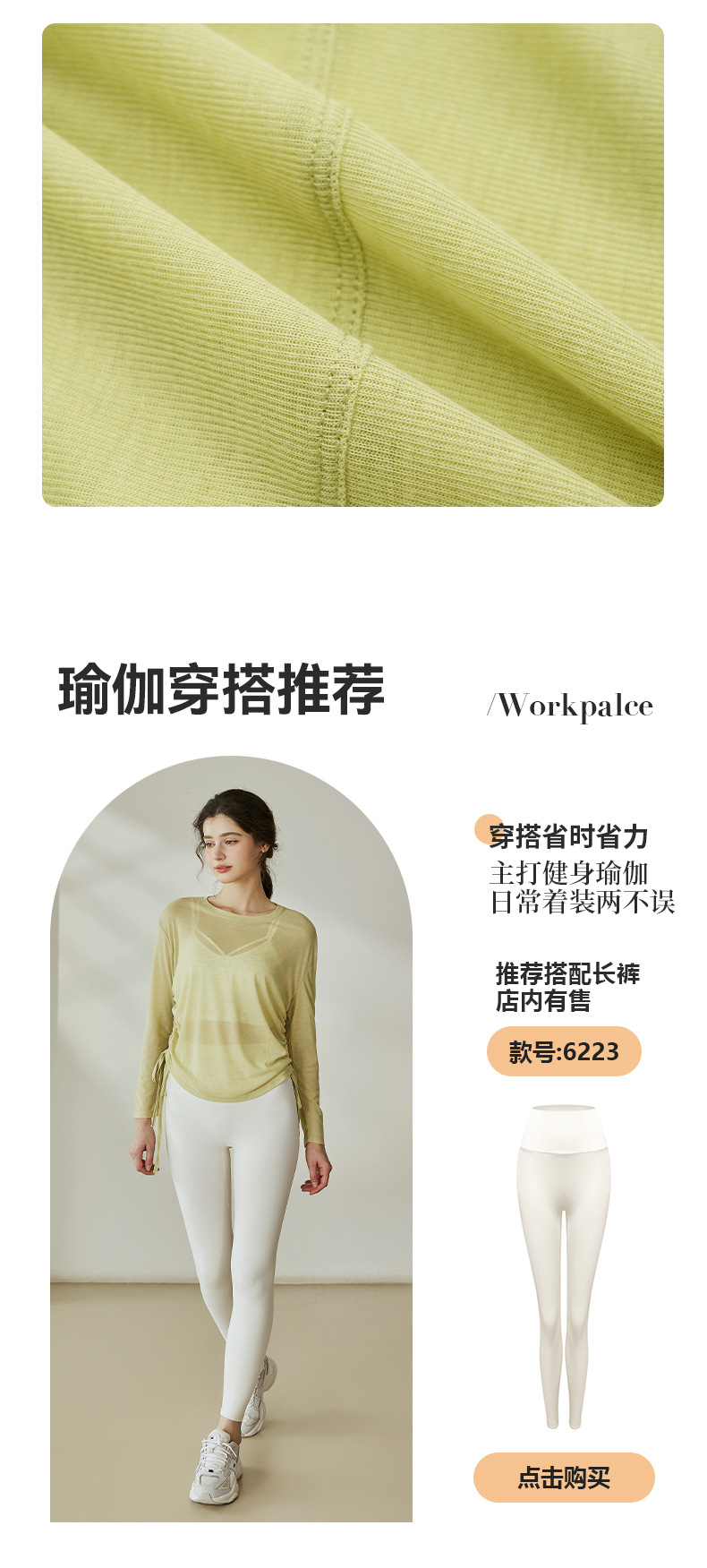 瑜伽服女夏季新款遮臀褶皱抽绳长袖t恤运动户外宽松休闲健身罩衫