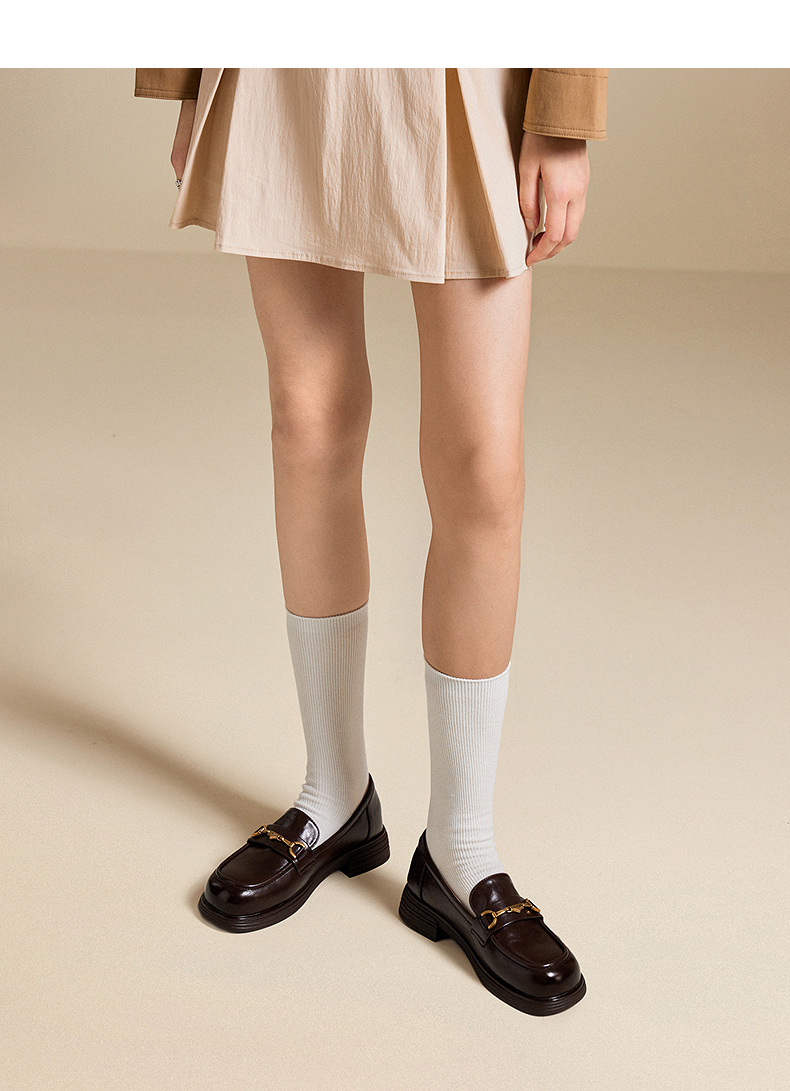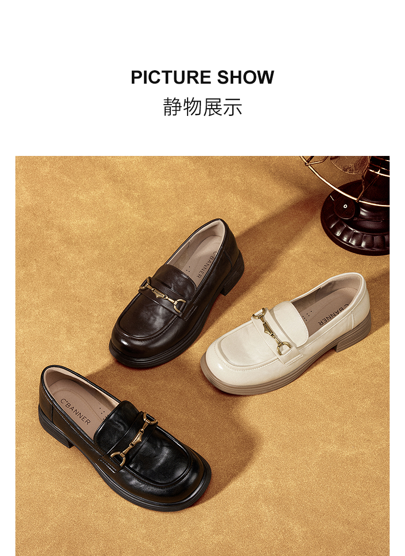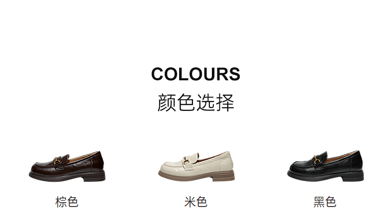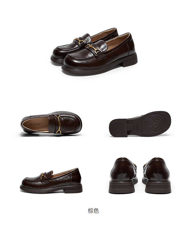 千百度真皮中跟乐福鞋女款通勤小皮鞋复古深口单鞋A25450208