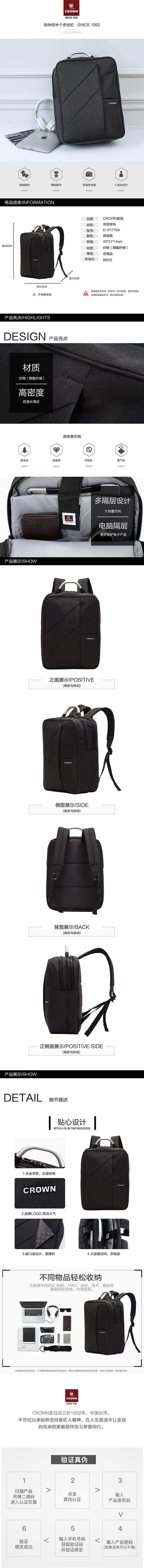 皇冠CROWN单层双肩背包E-P1770A