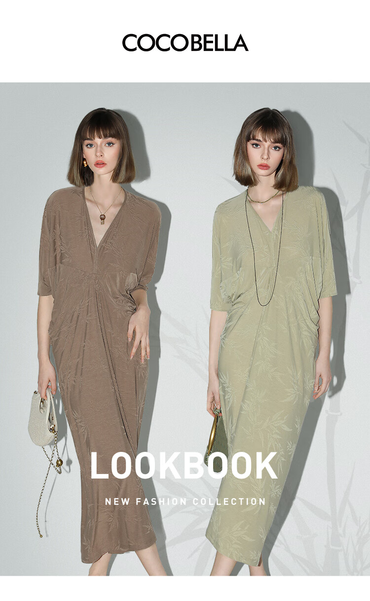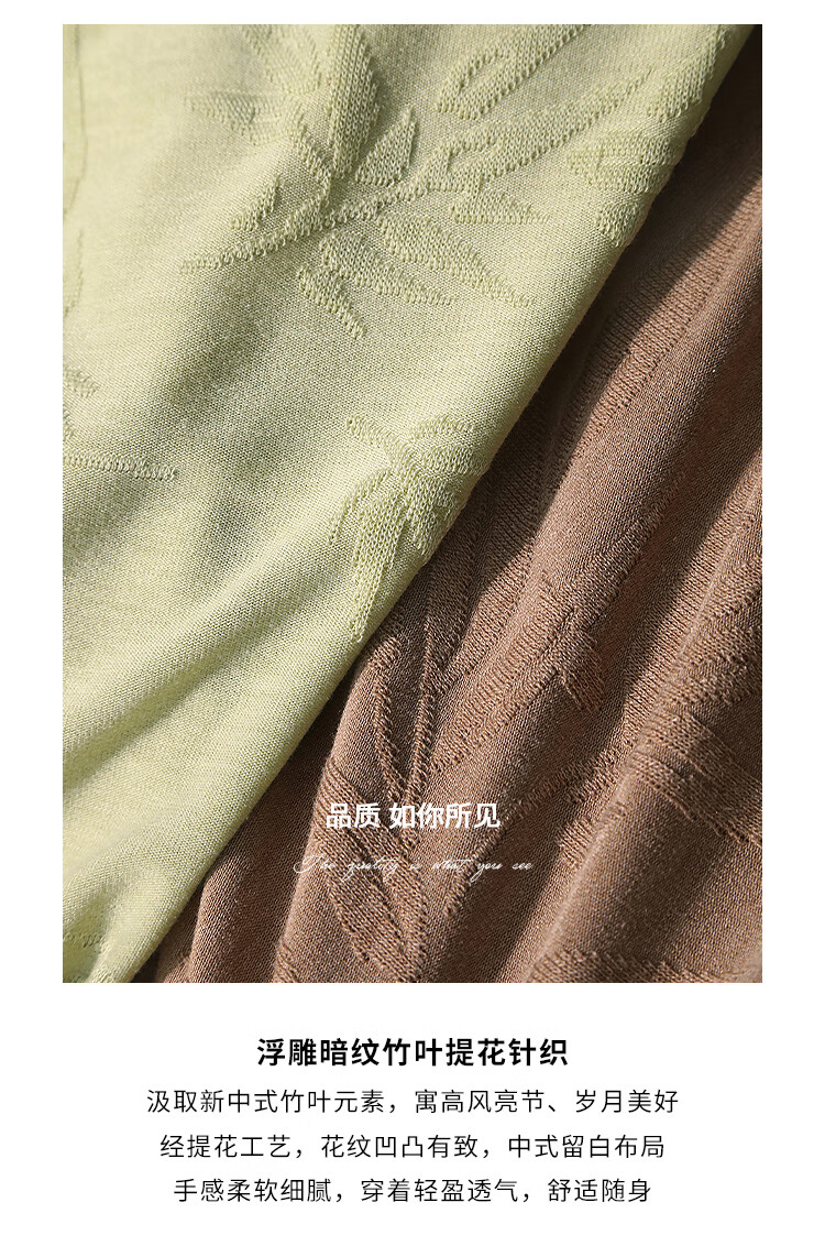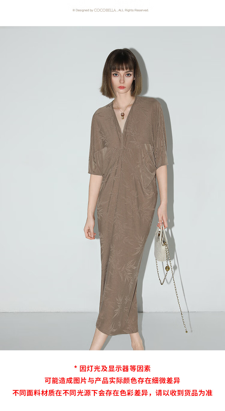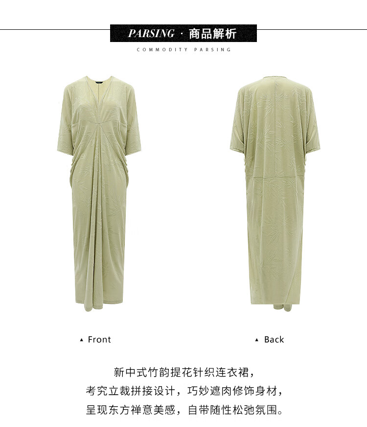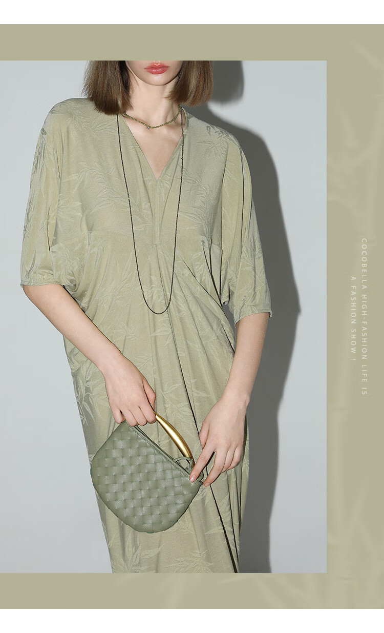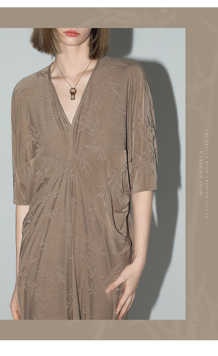 COCOBELLA新中式竹叶提花针织连衣裙立裁禅意弹力长裙FR0045