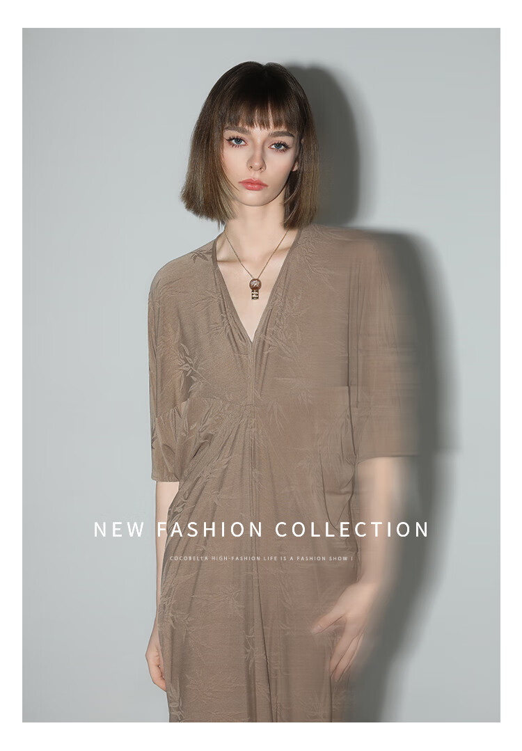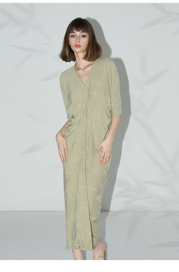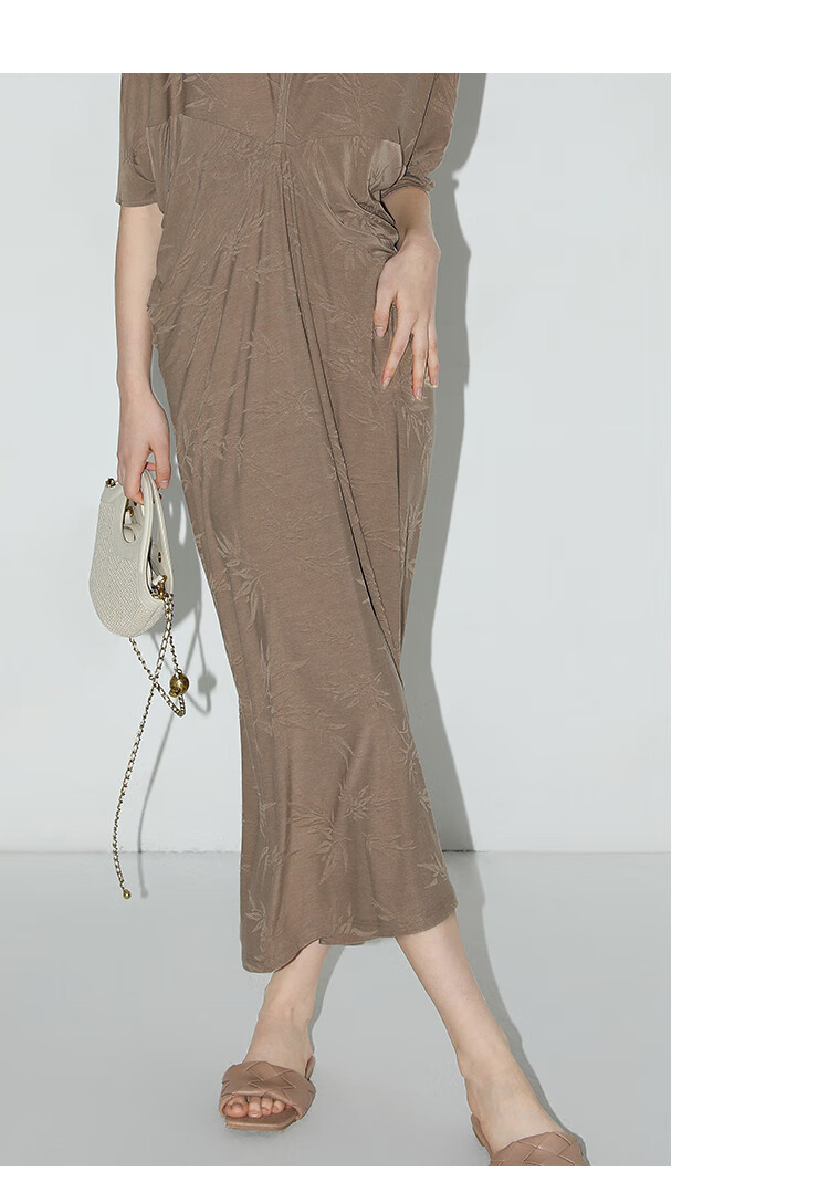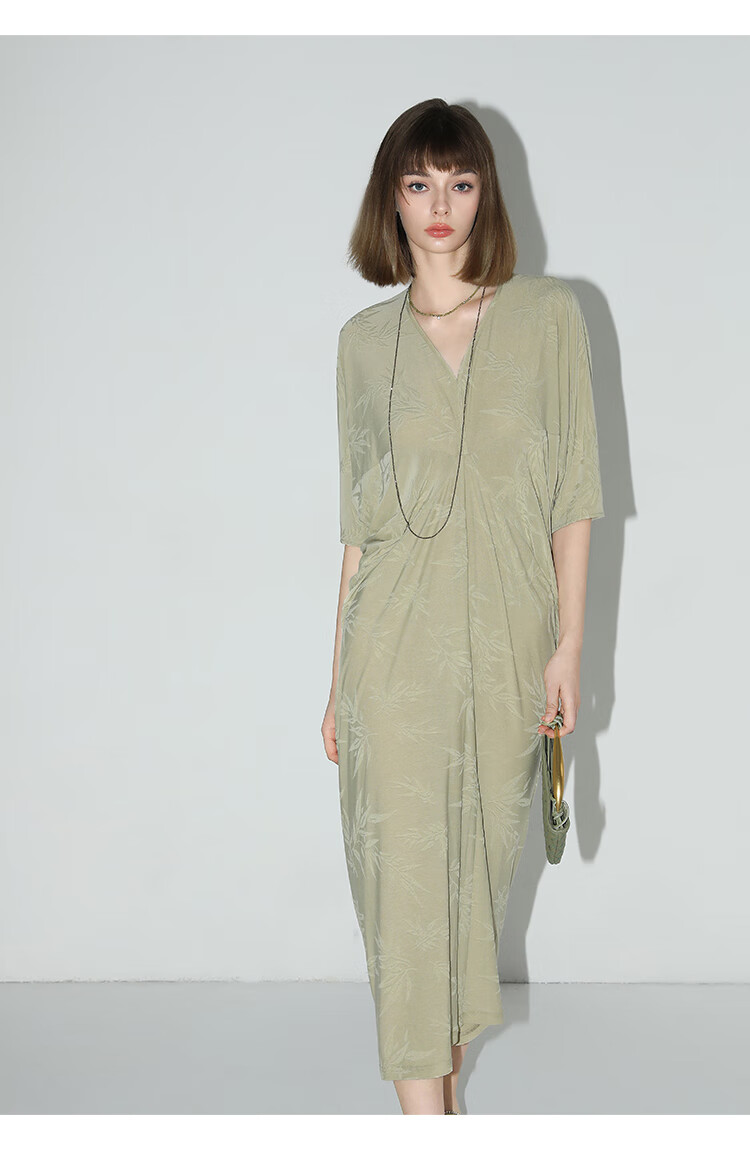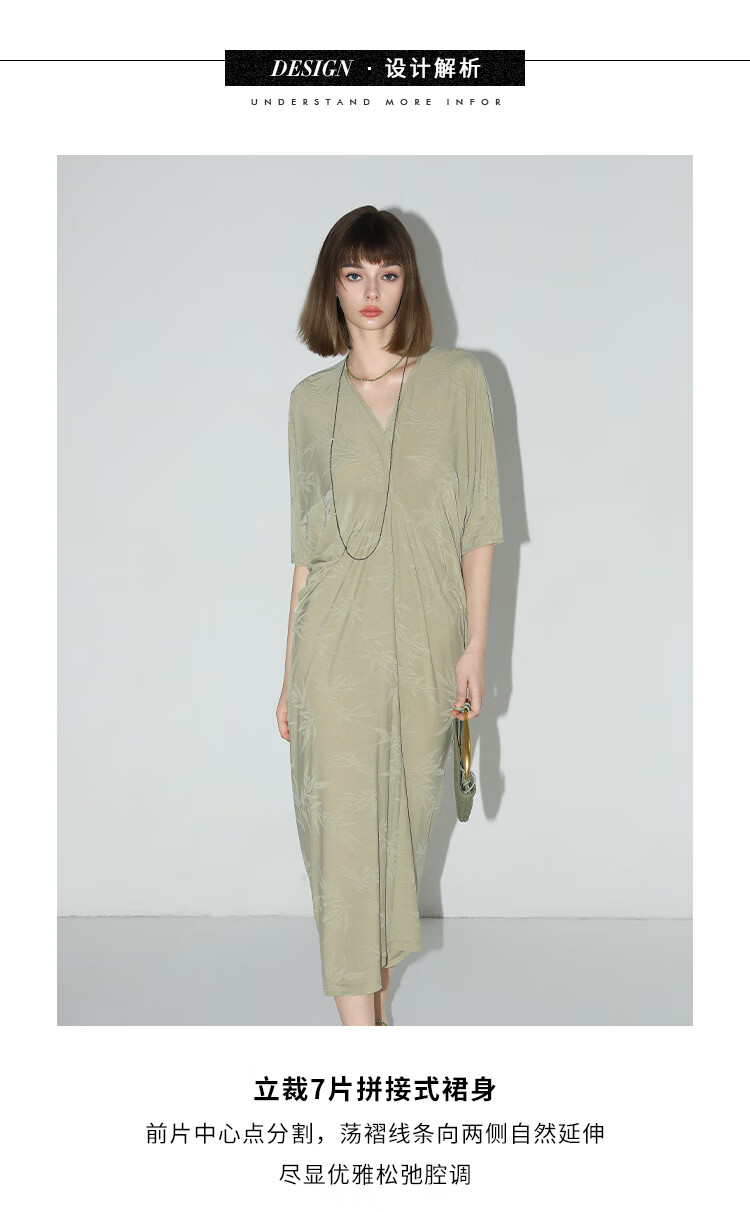 COCOBELLA新中式竹叶提花针织连衣裙立裁禅意弹力长裙FR0045