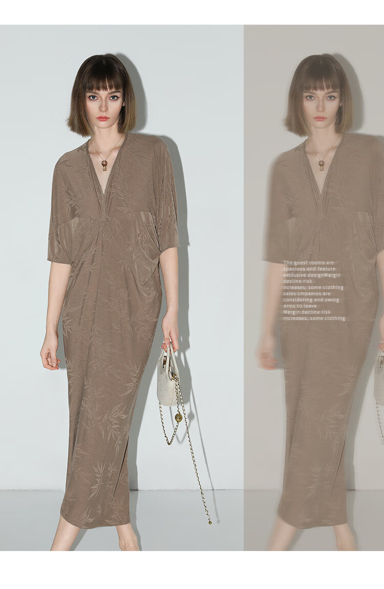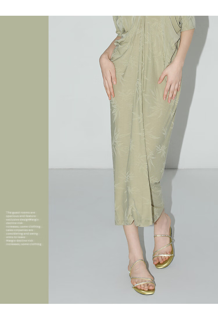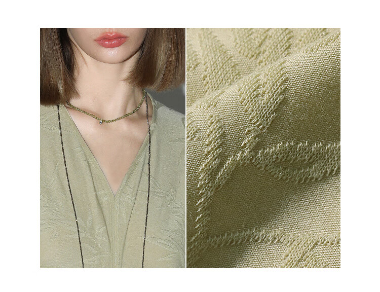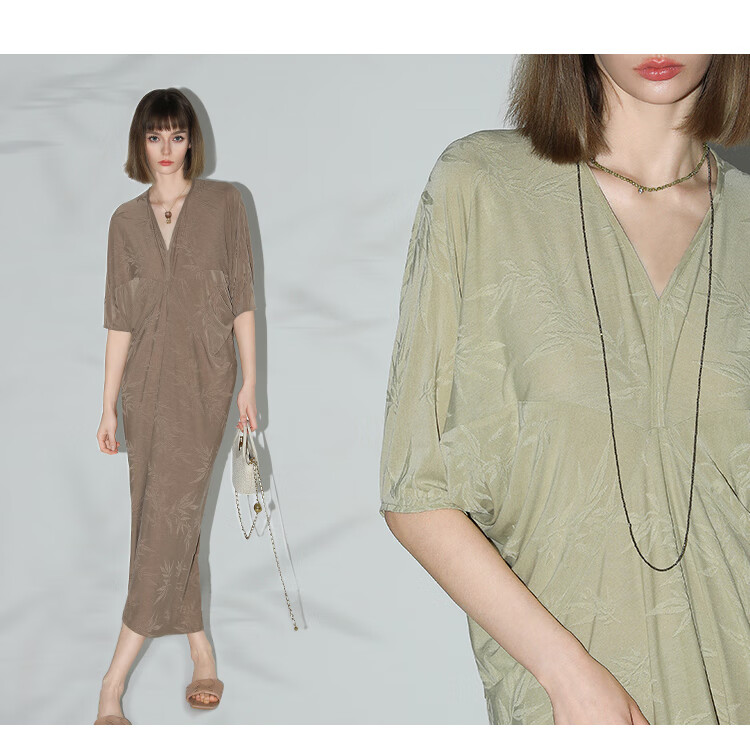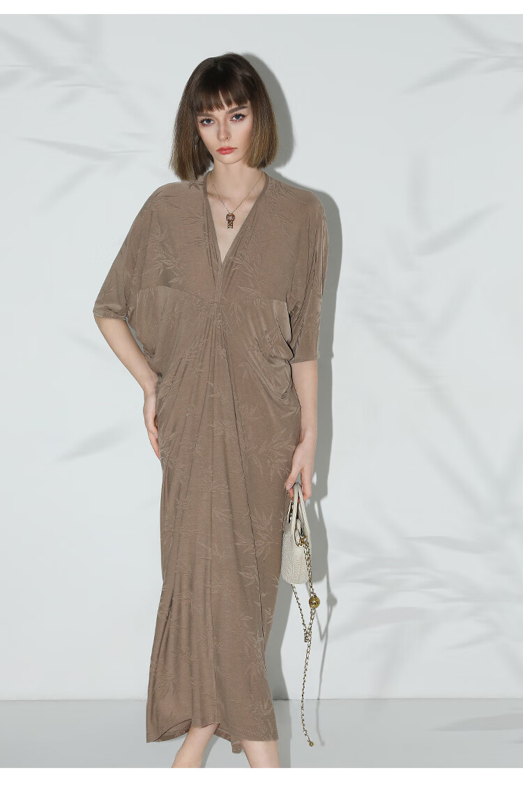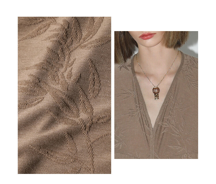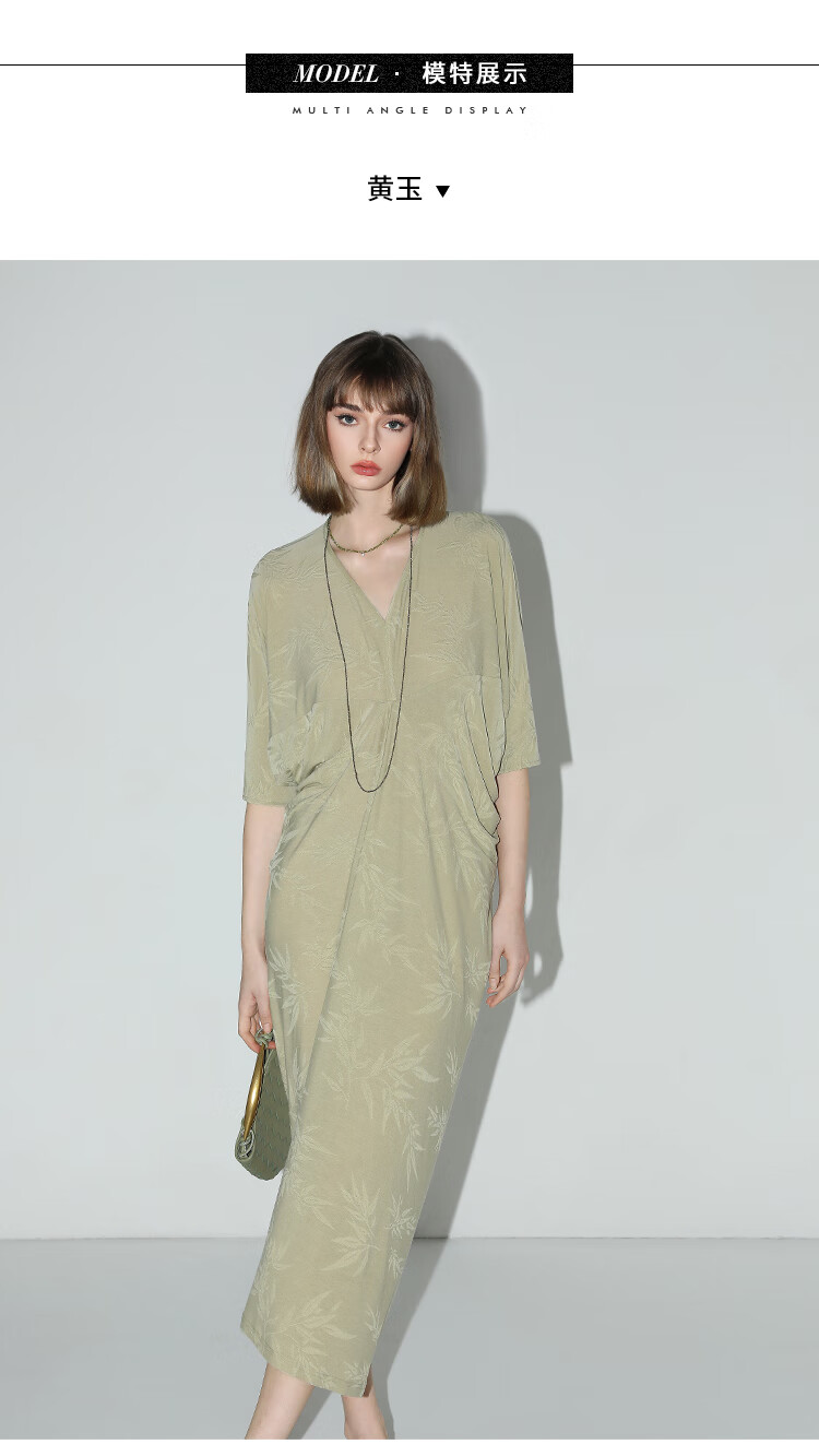 COCOBELLA新中式竹叶提花针织连衣裙立裁禅意弹力长裙FR0045