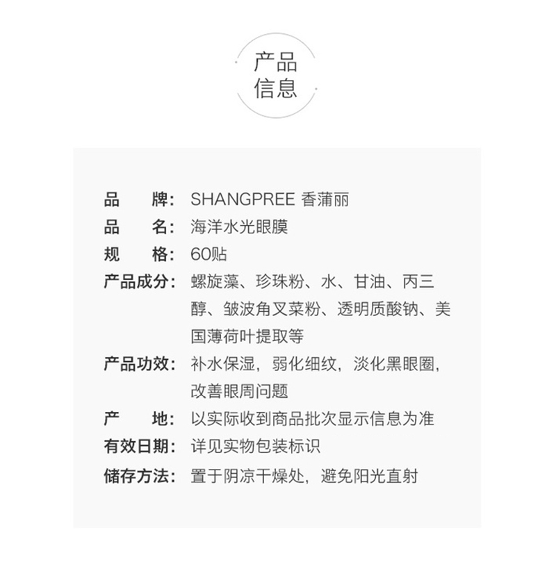 香蒲丽 螺旋藻眼膜贴绿色60枚