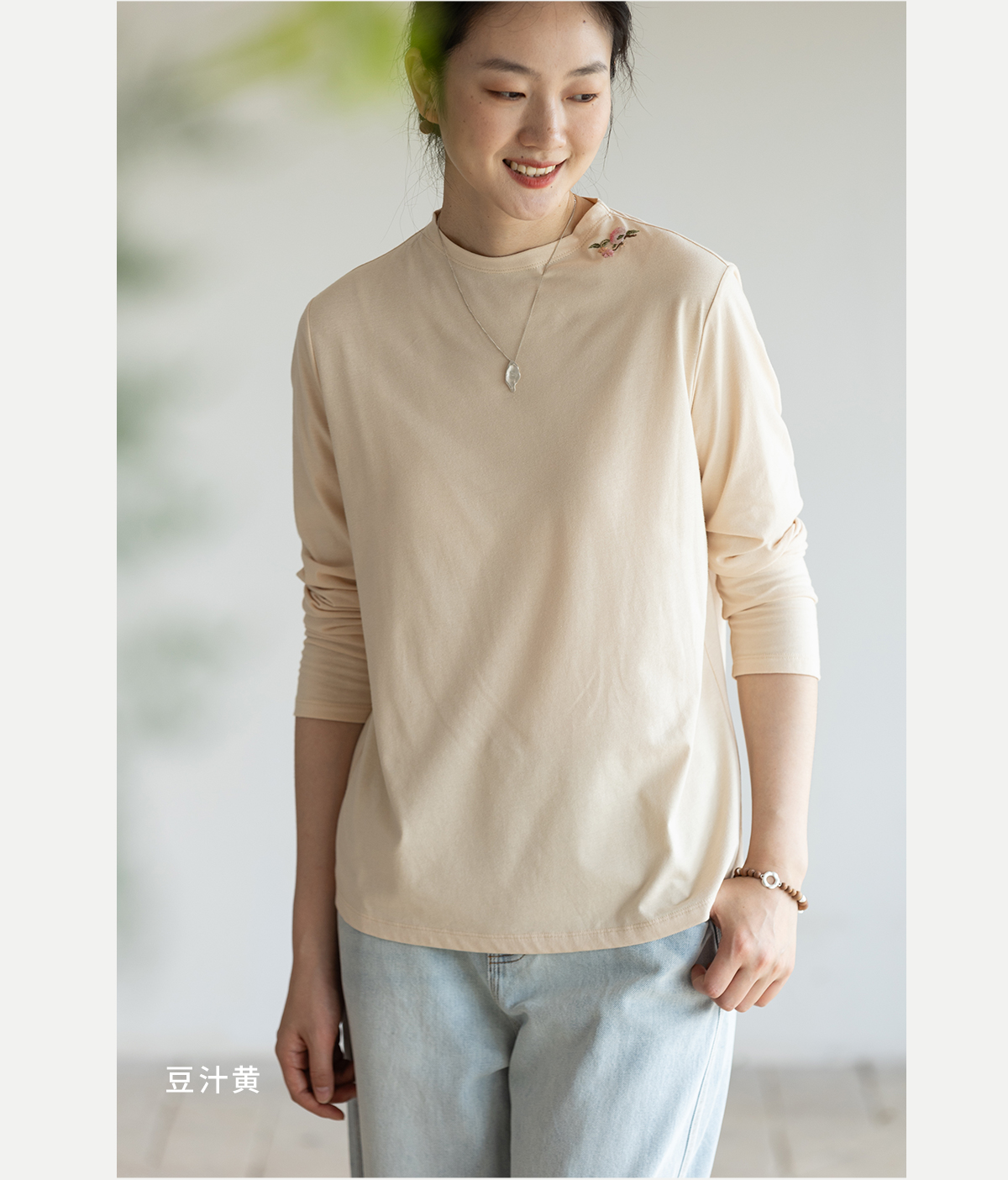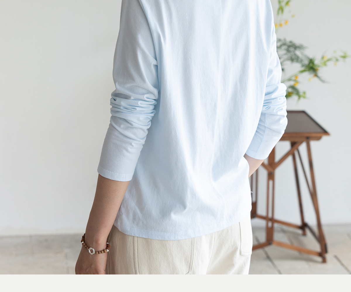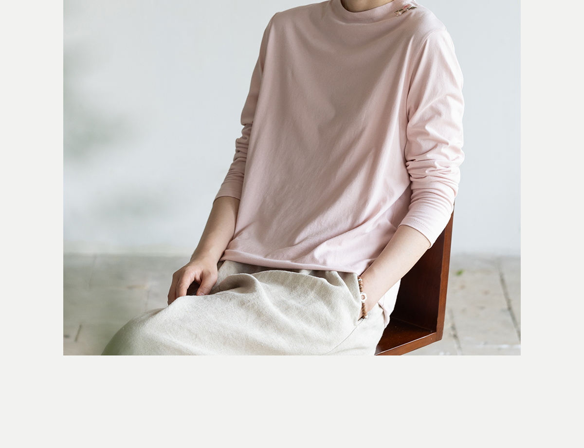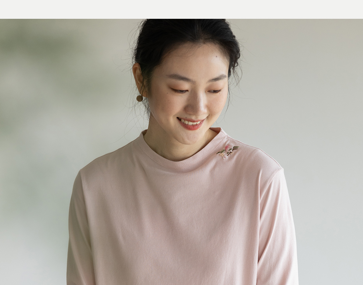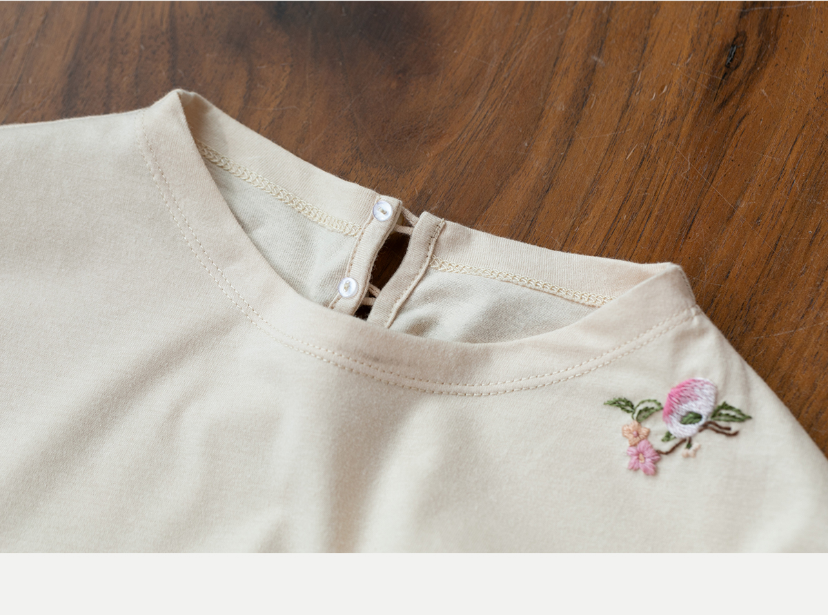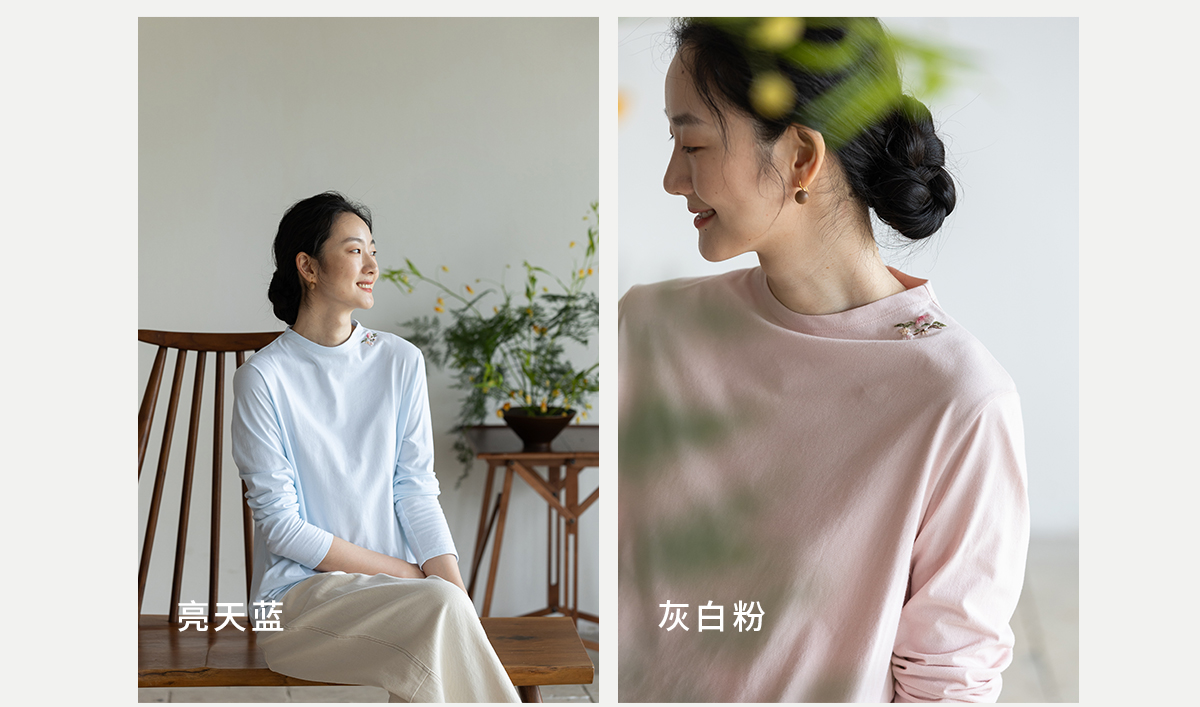牧衣游原创 手工刺绣32支纯棉T恤舒适柔软亲肤内搭休闲长袖 枳禾