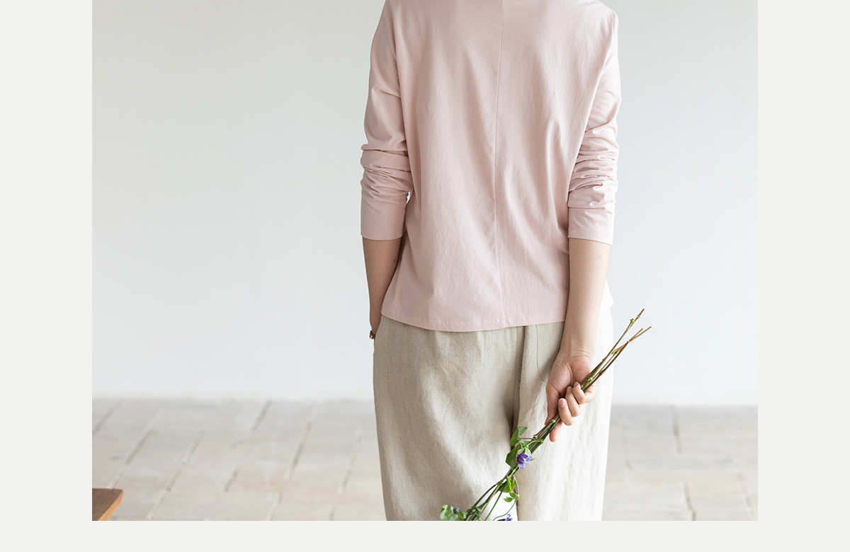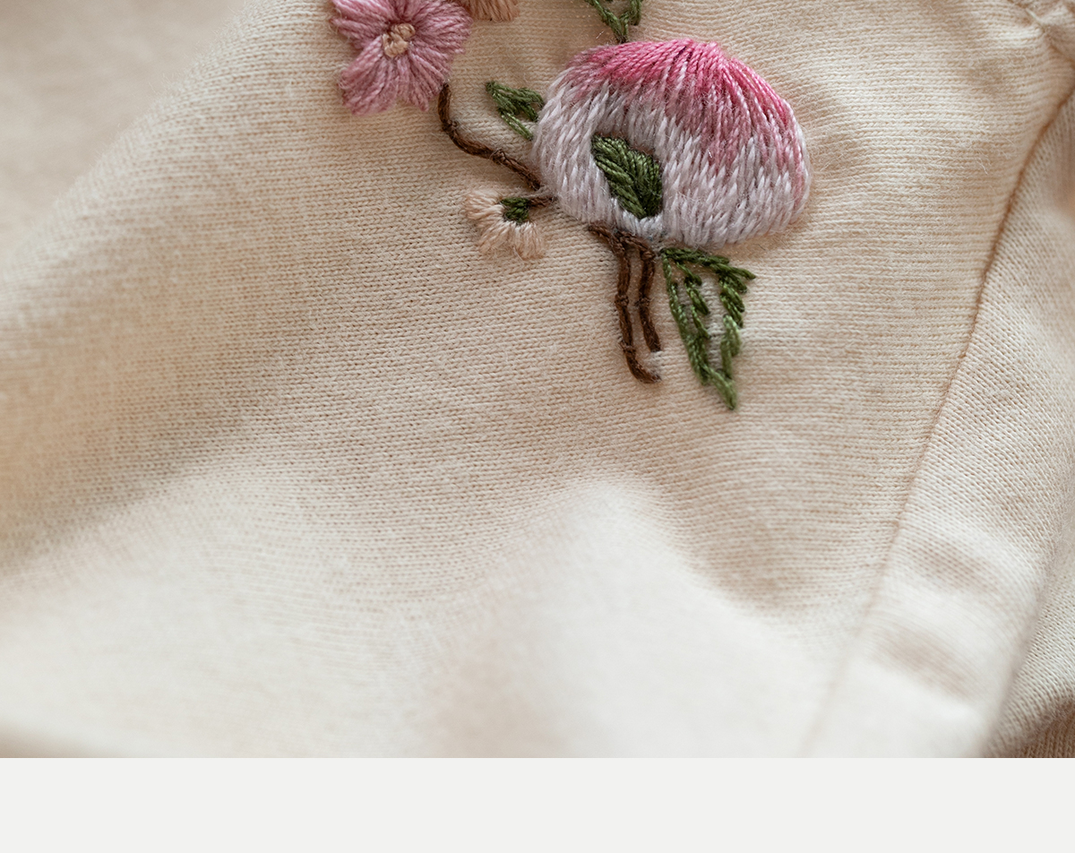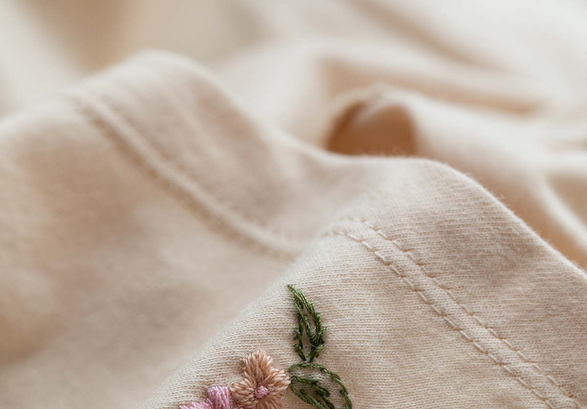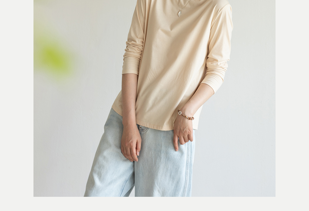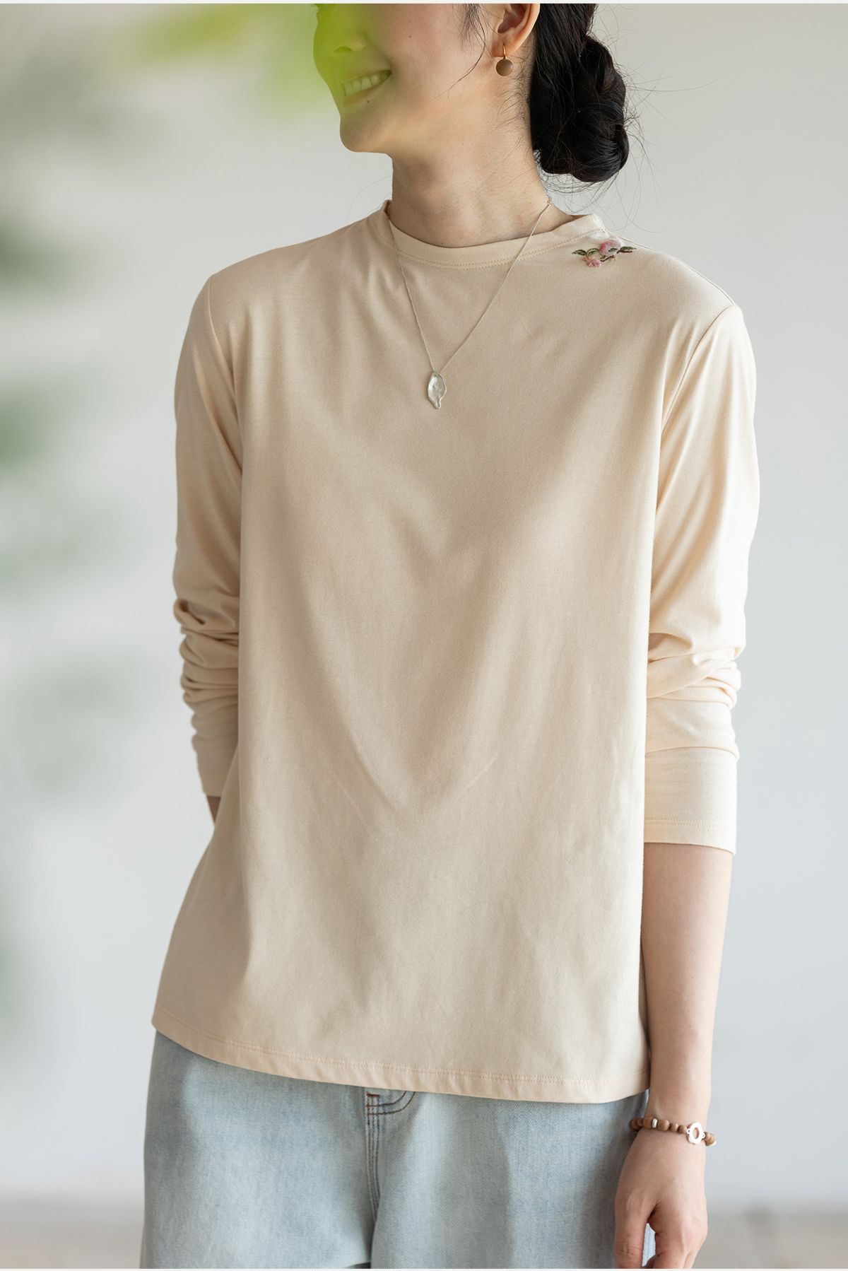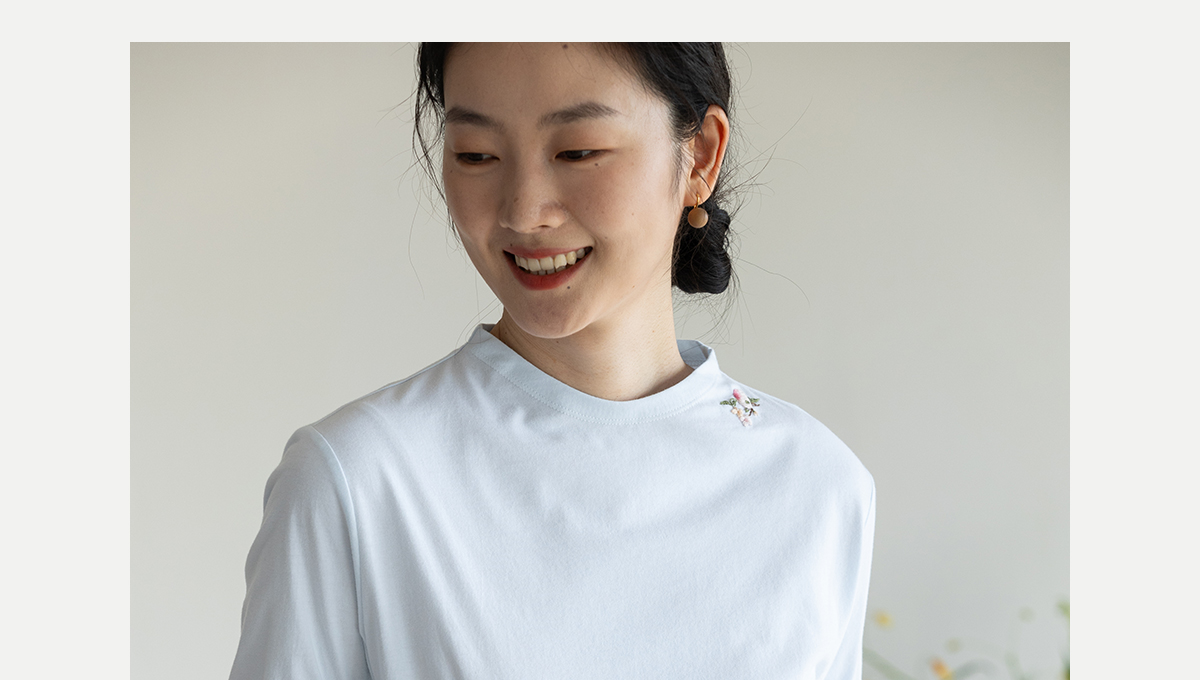 牧衣游原创 手工刺绣32支纯棉T恤舒适柔软亲肤内搭休闲长袖 枳禾