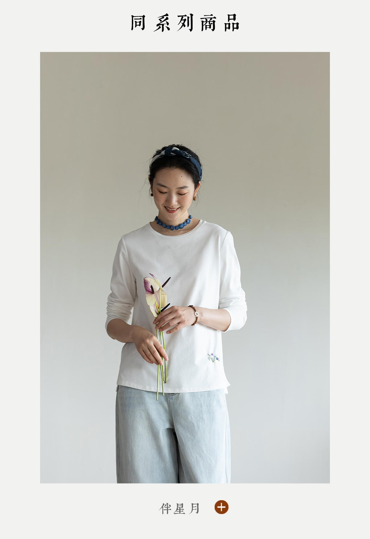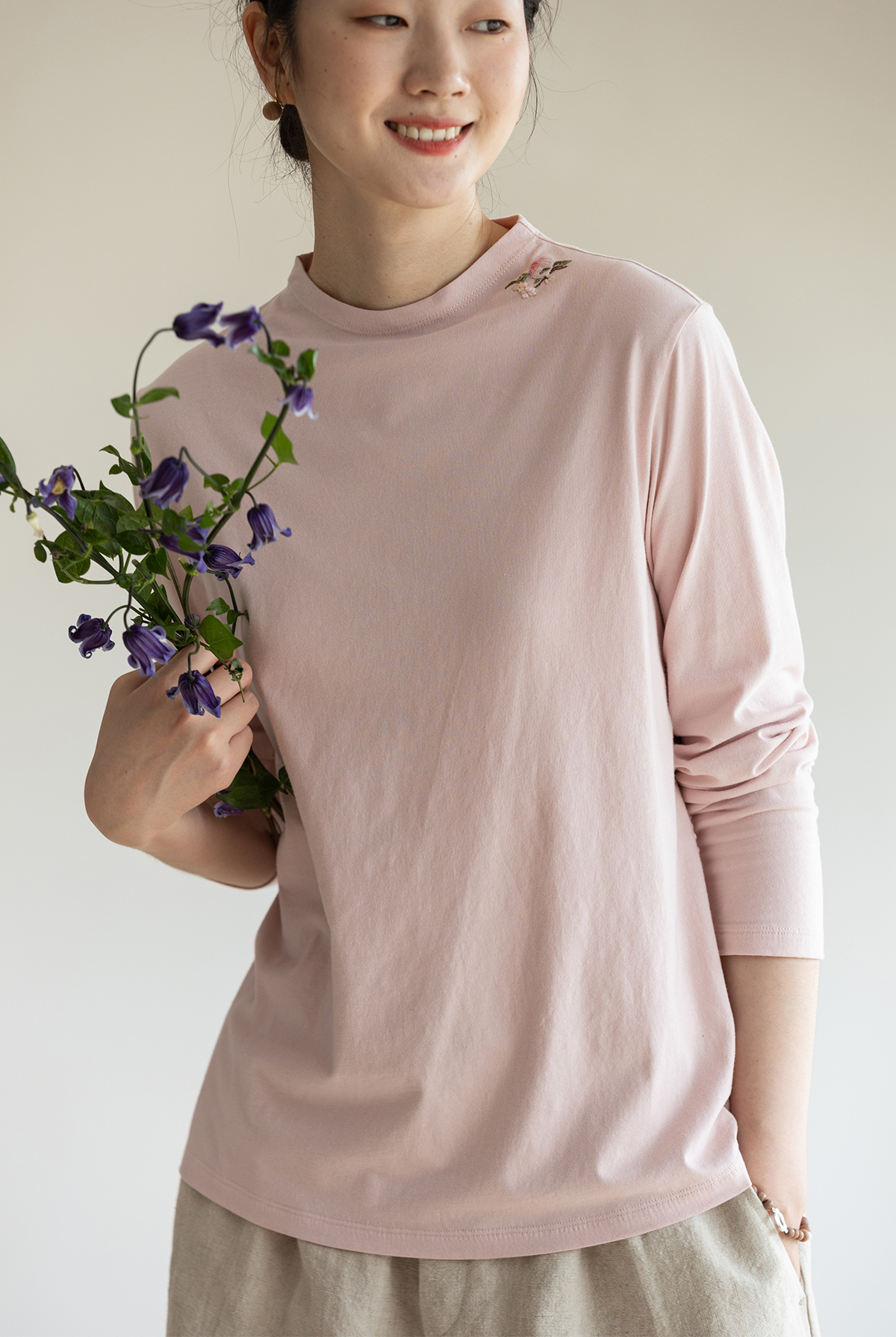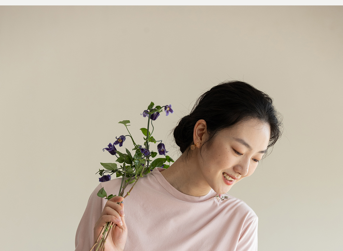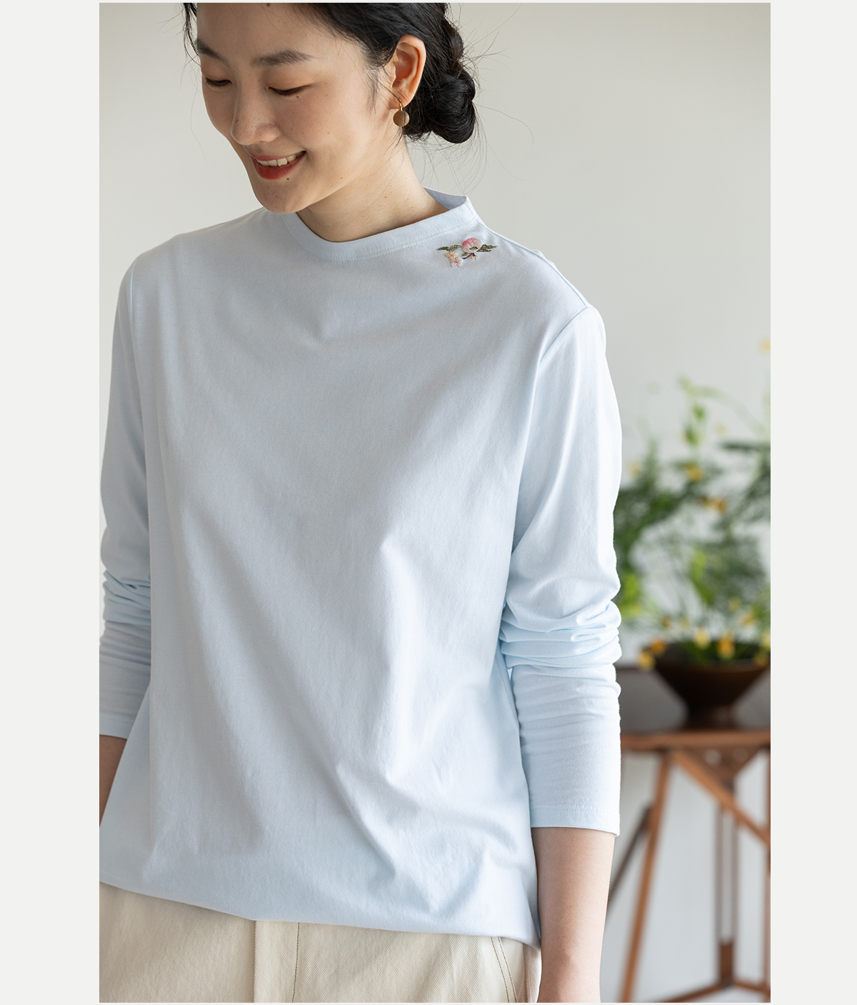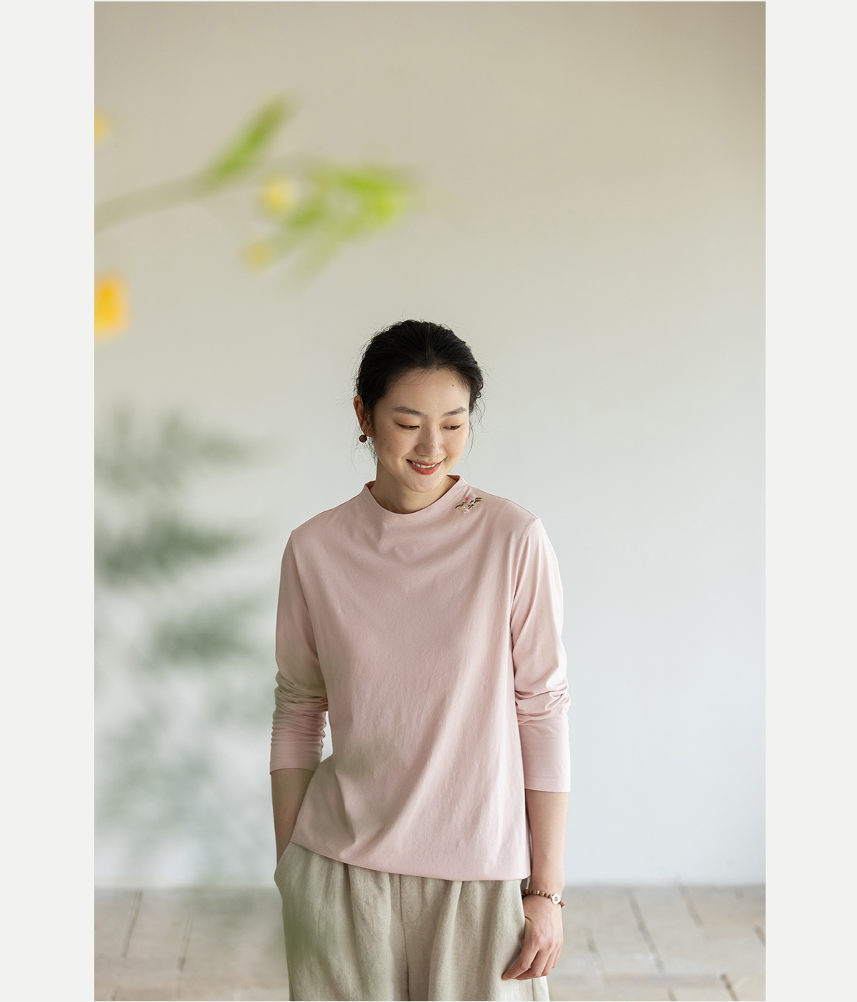 牧衣游原创 手工刺绣32支纯棉T恤舒适柔软亲肤内搭休闲长袖 枳禾