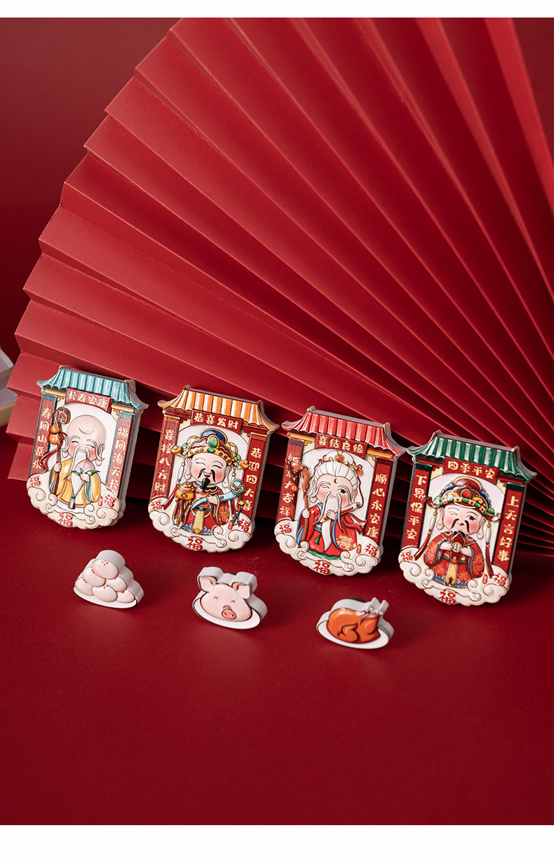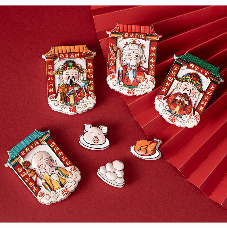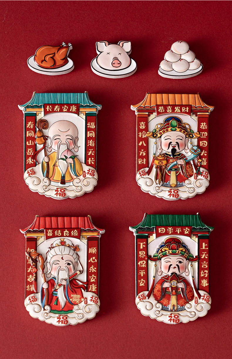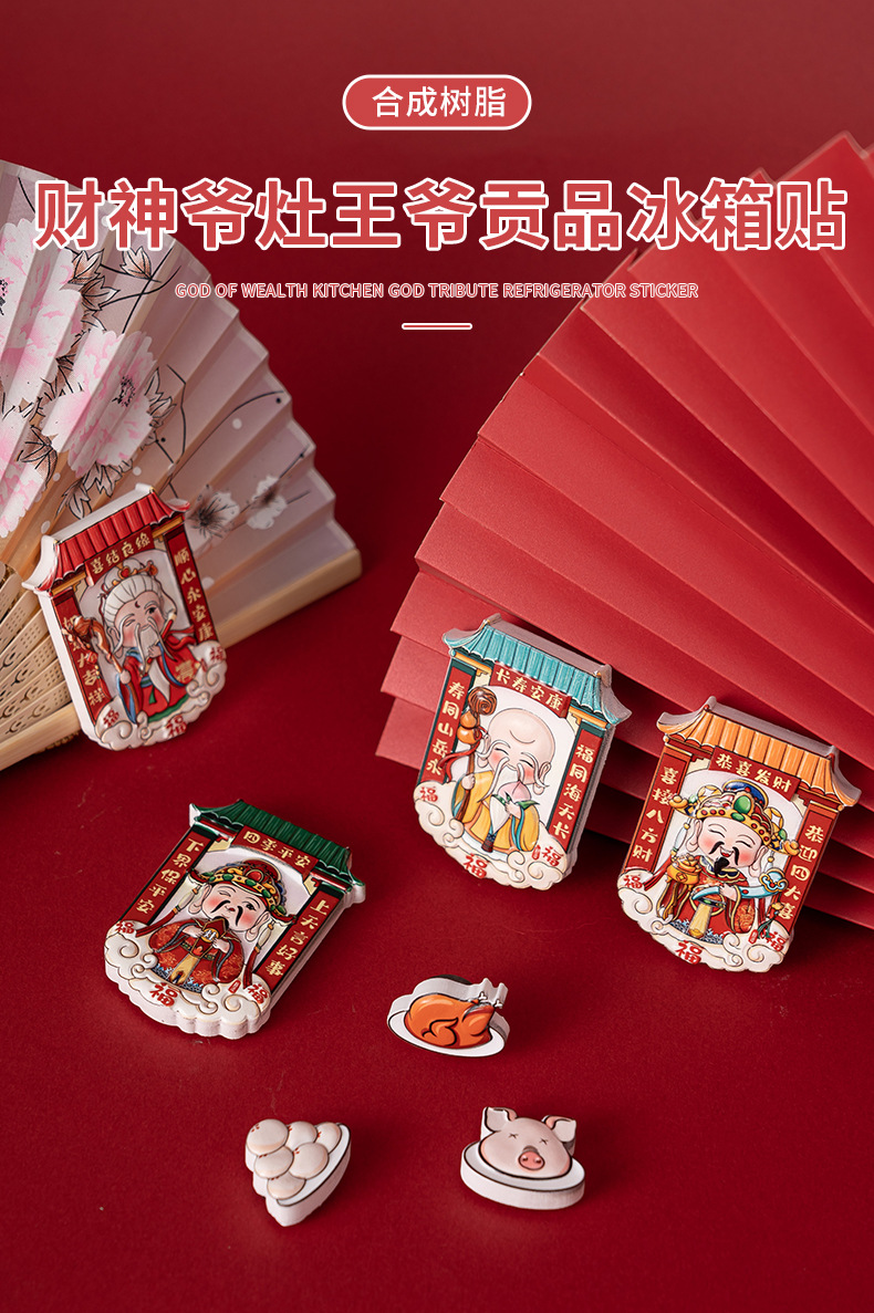 【礼盒套装!财神爷灶王爷贡品冰箱贴】中国风财神爷冰箱贴立体卡通磁吸贴创意灶神磁力贴国潮文创纪念品。ry