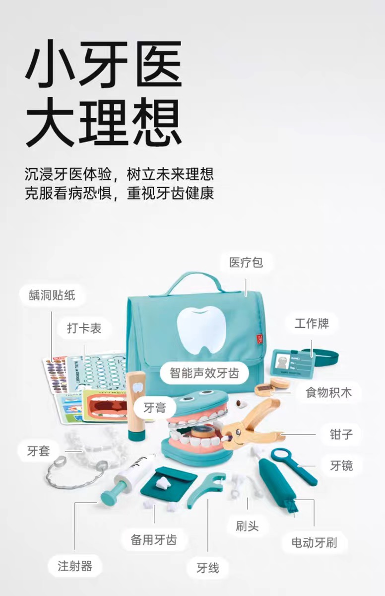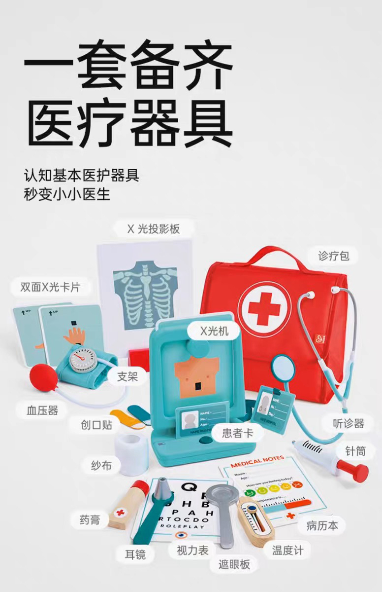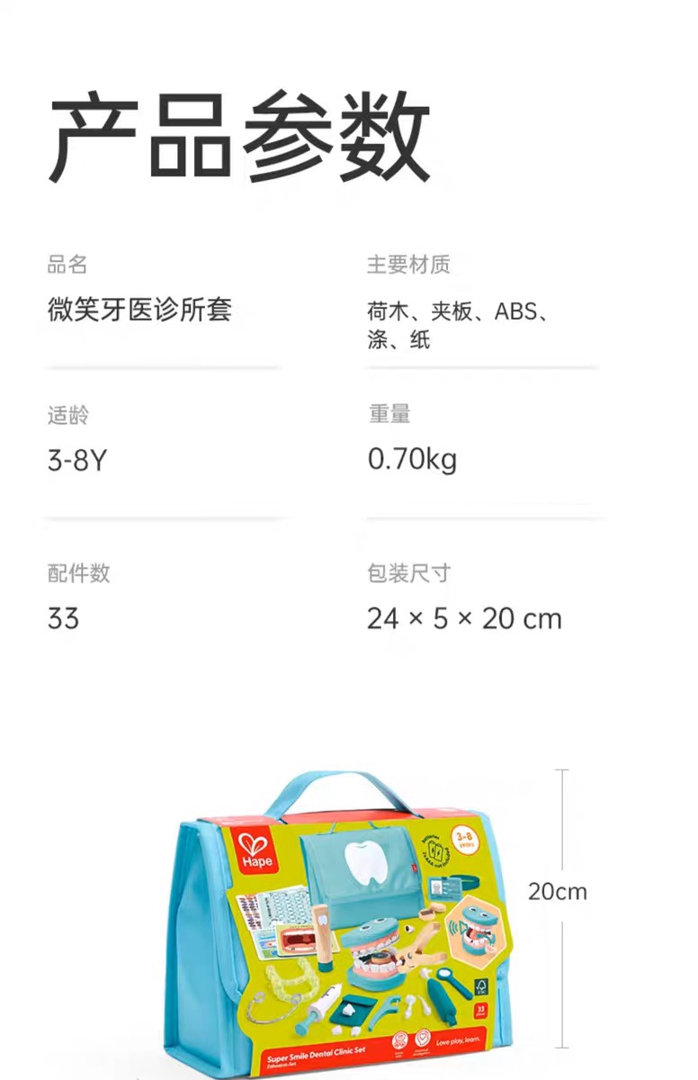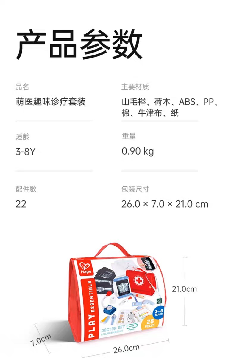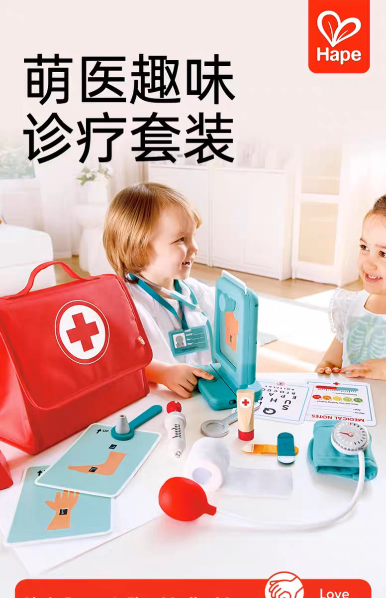 Hape萌医趣味诊疗套装儿童过家家仿真小医生牙医扮演玩具听诊器