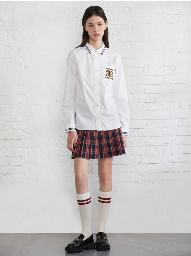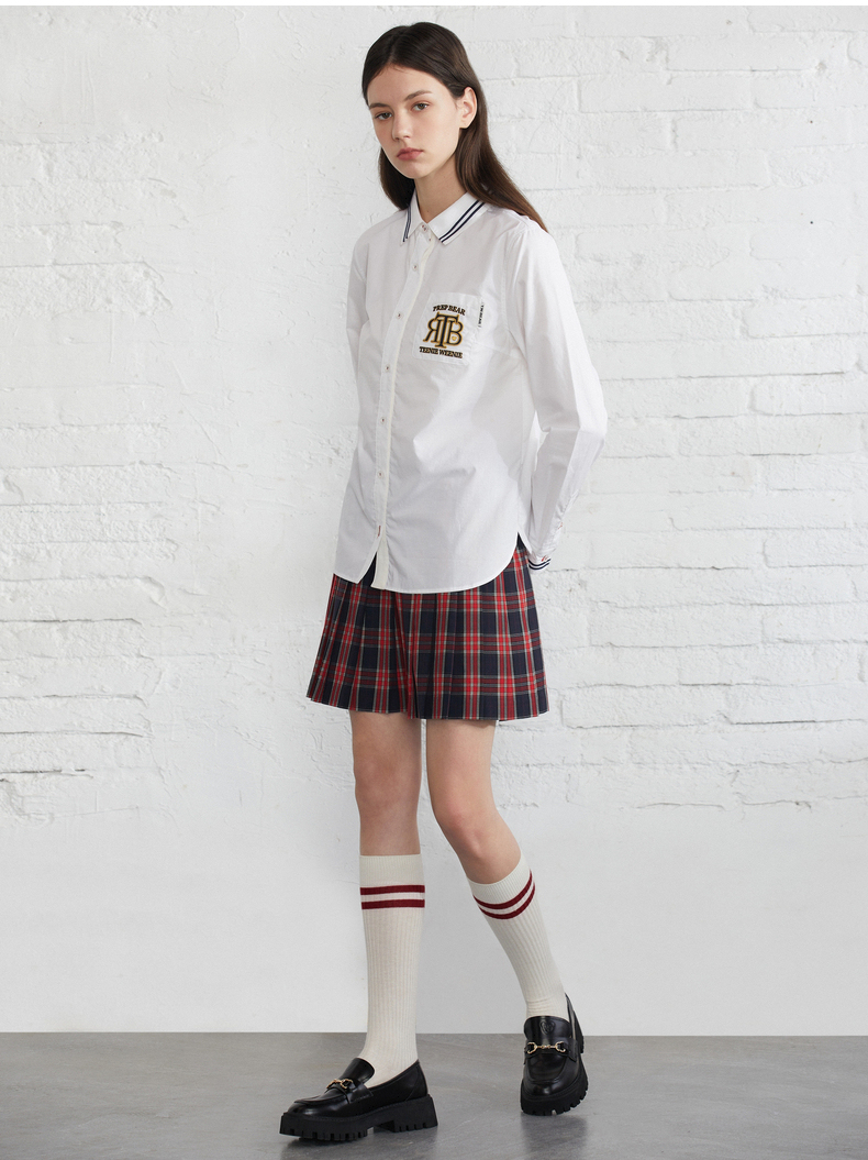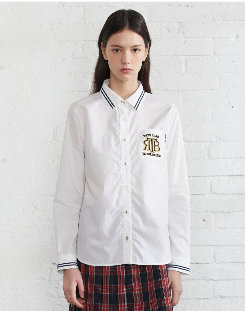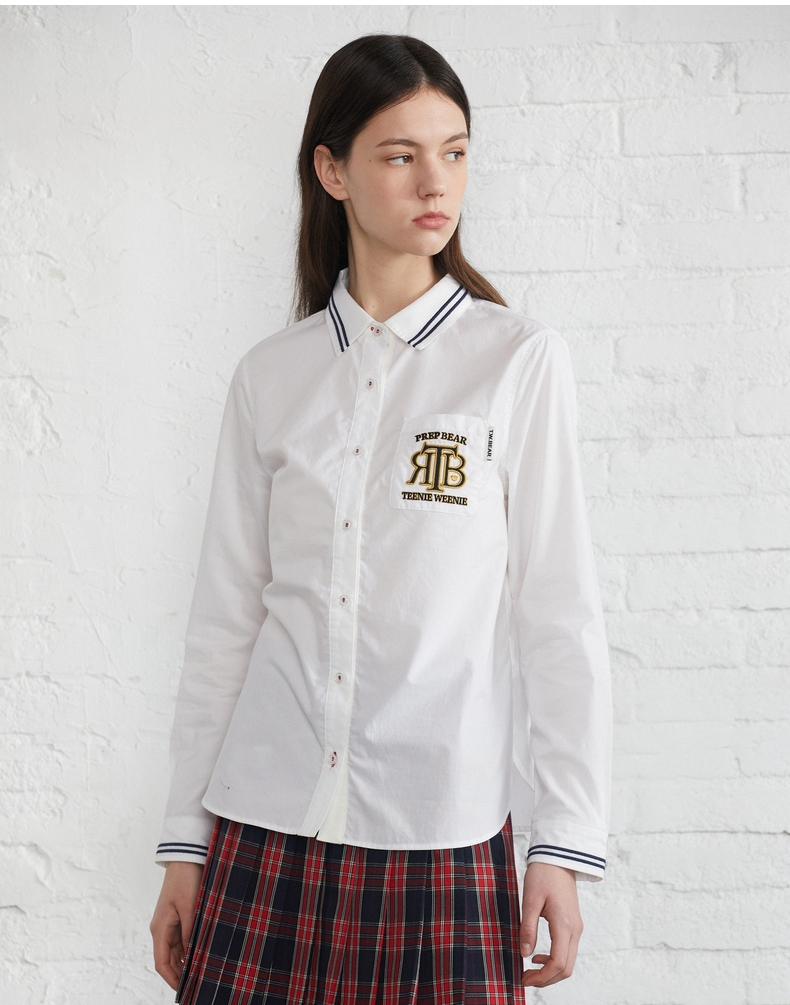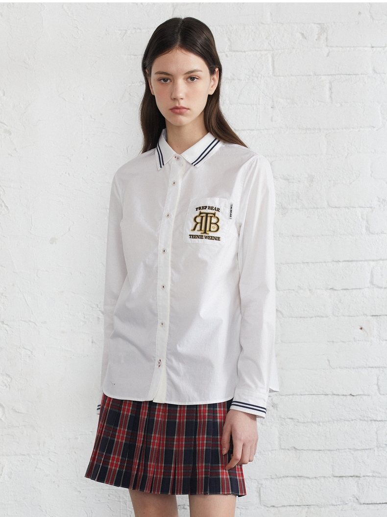 TeenieWeenie小熊22年春款白色休闲刺绣百搭长袖衬衫TTYW222304P