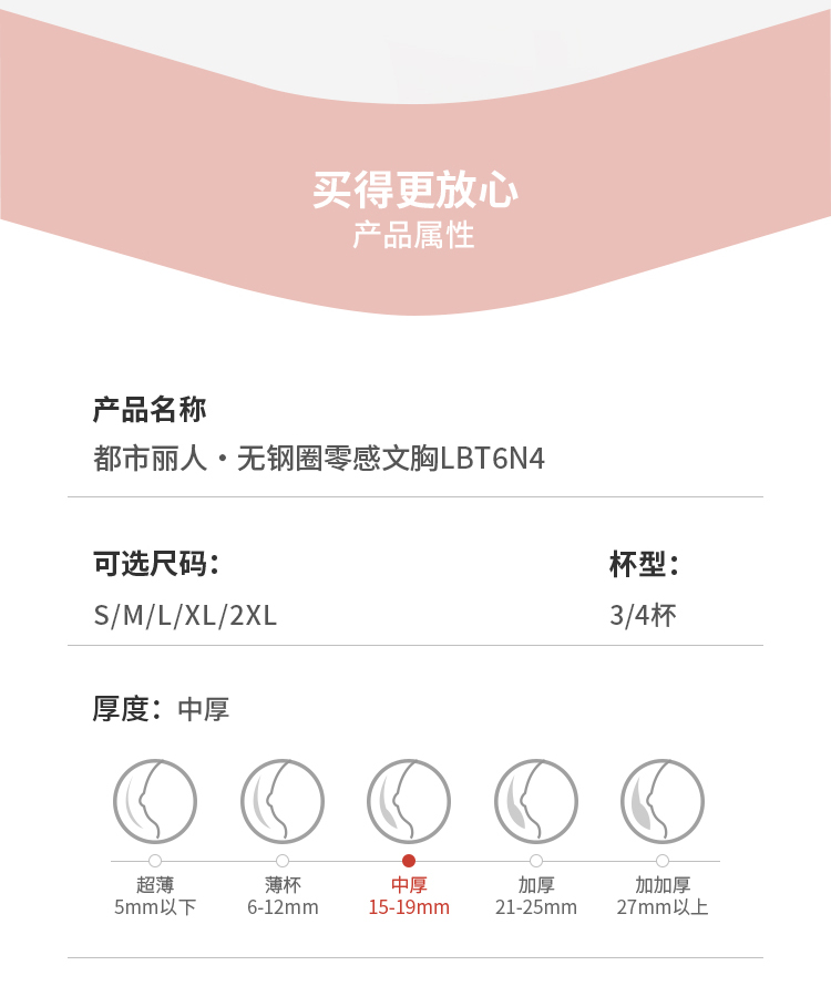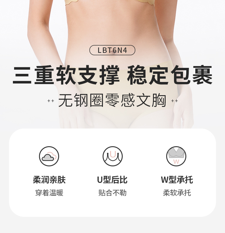 都市丽人内衣Vbra磨毛面料中厚文胸3/4杯二排扣无钢圈LBT6N4