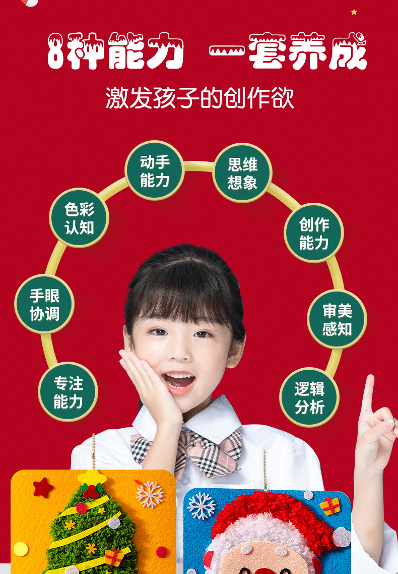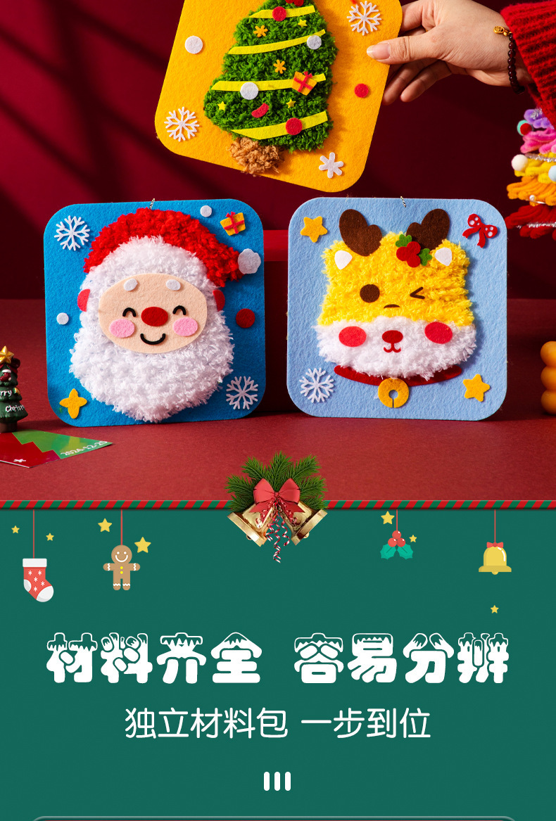 圣诞节礼物不织布缝缝乐穿线画儿童手工diy材料圣诞树装饰小礼品