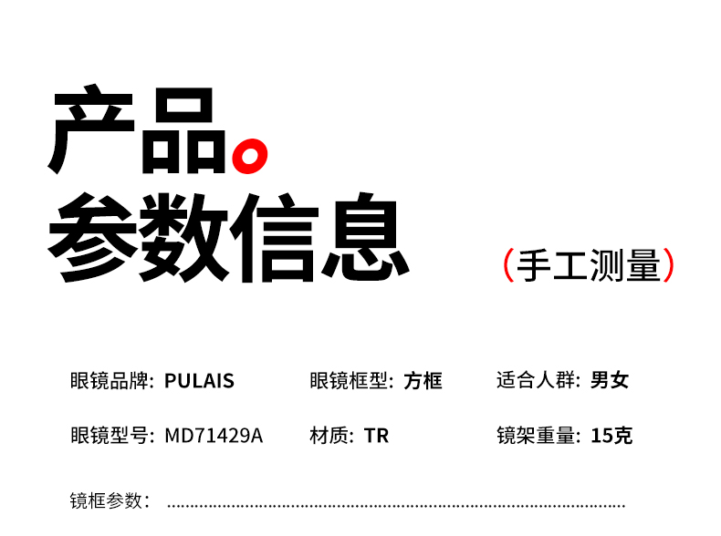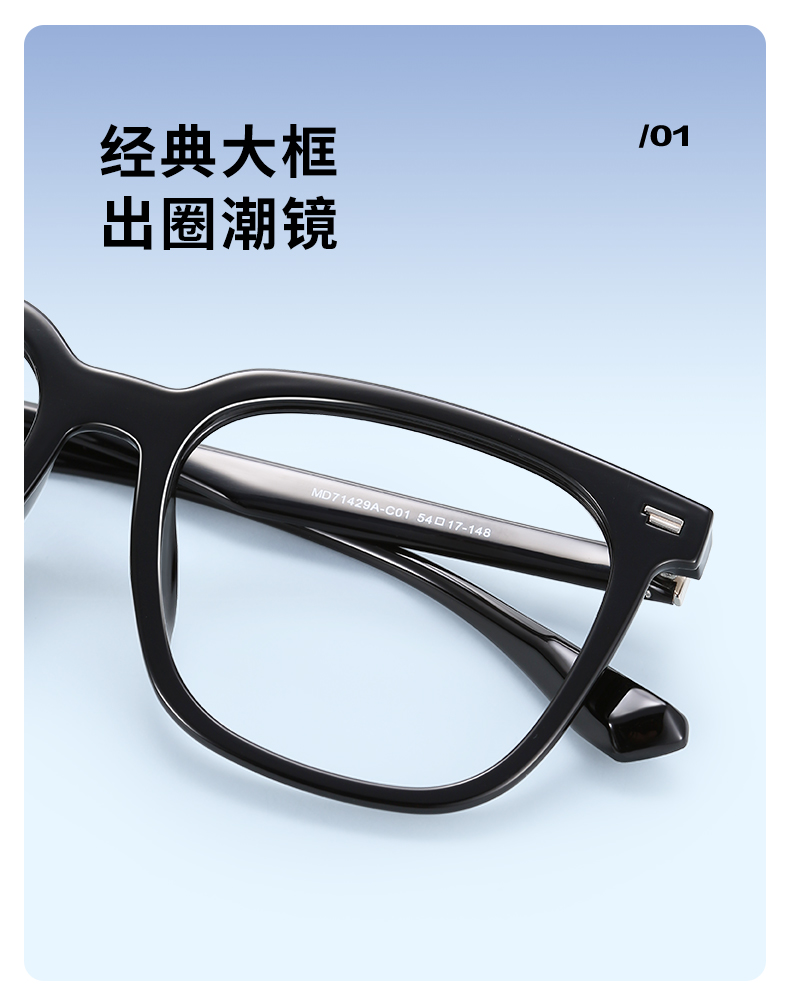普莱斯光学眼镜MD71429A 经典大黑框 TR90材质 四色可选男女同款