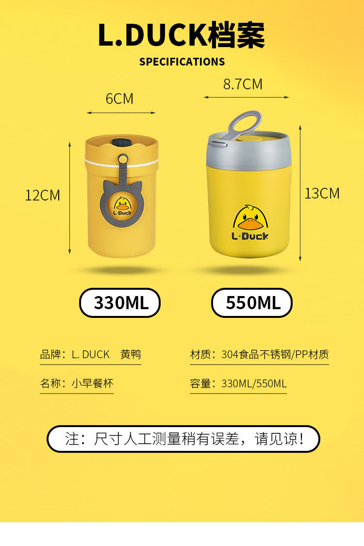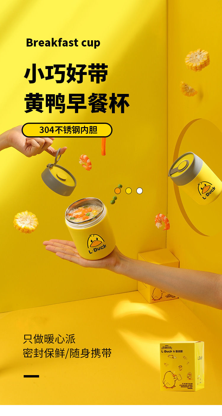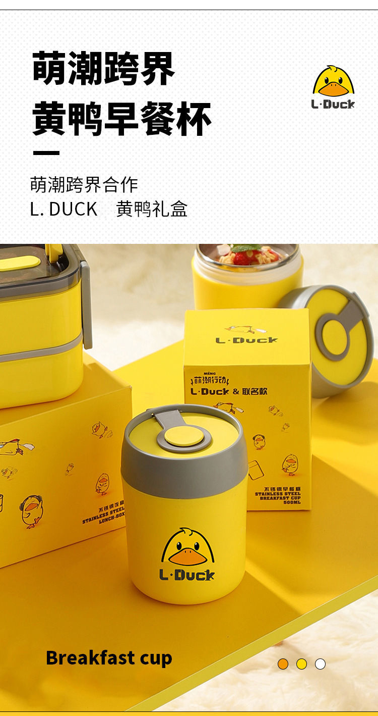「萌潮跨界 小黄鸭联名礼盒装」不锈钢早餐杯 PP汤杯上班族学生汤粥罐卡通燕麦糖水杯餐饮用具