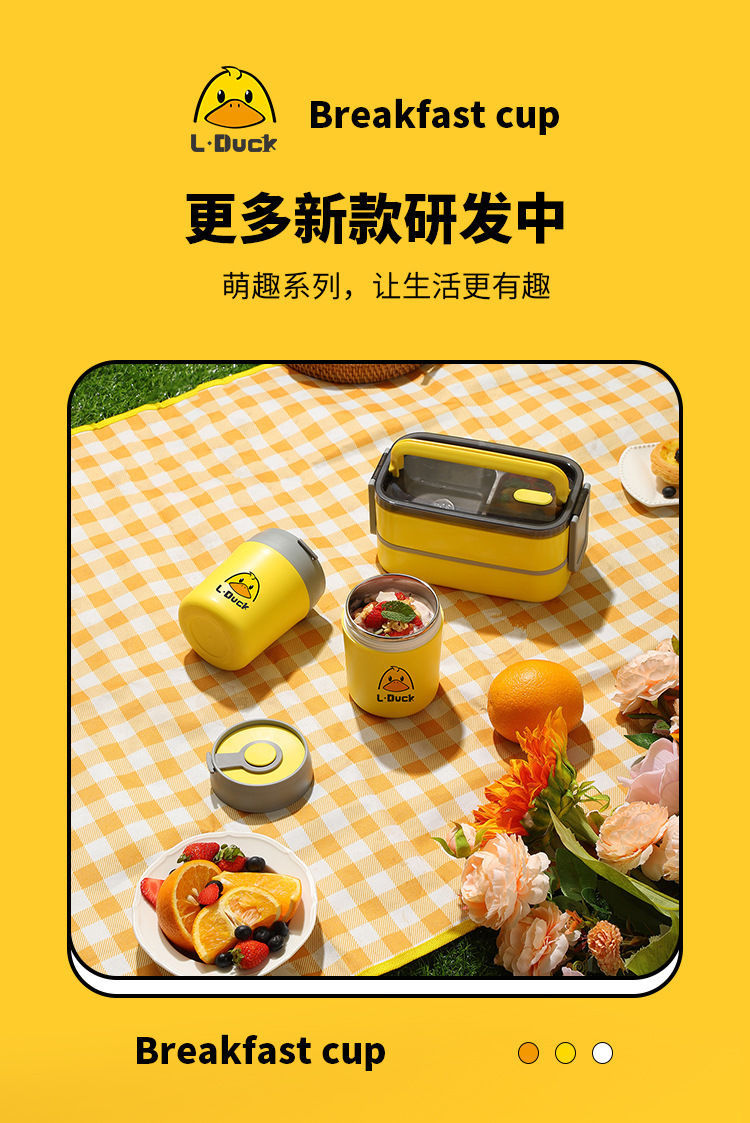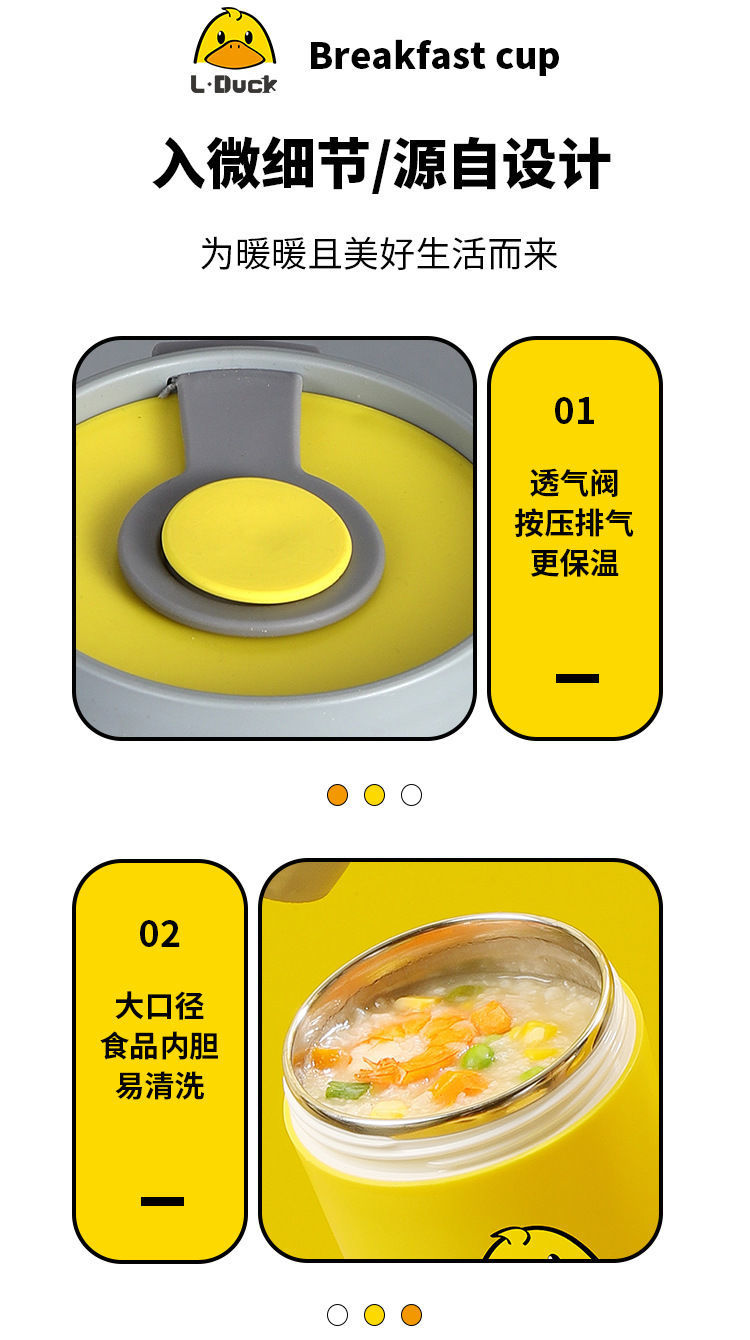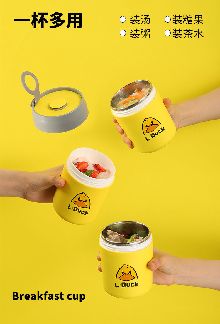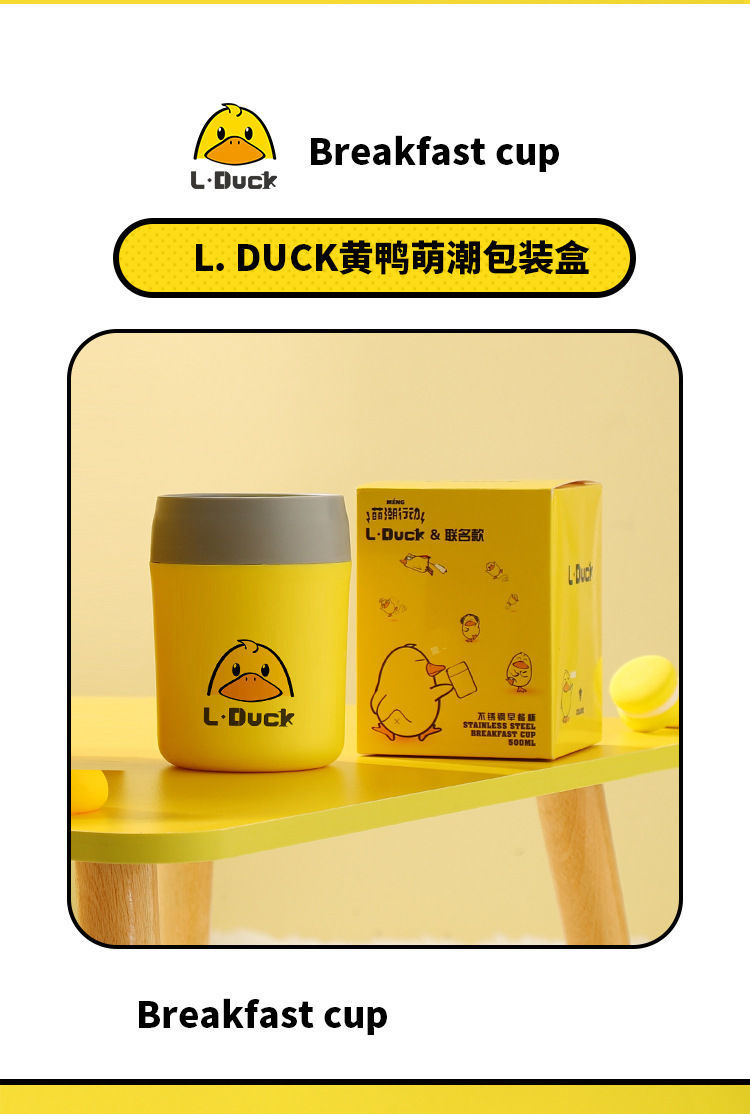 「萌潮跨界 小黄鸭联名礼盒装」不锈钢早餐杯 PP汤杯上班族学生汤粥罐卡通燕麦糖水杯餐饮用具