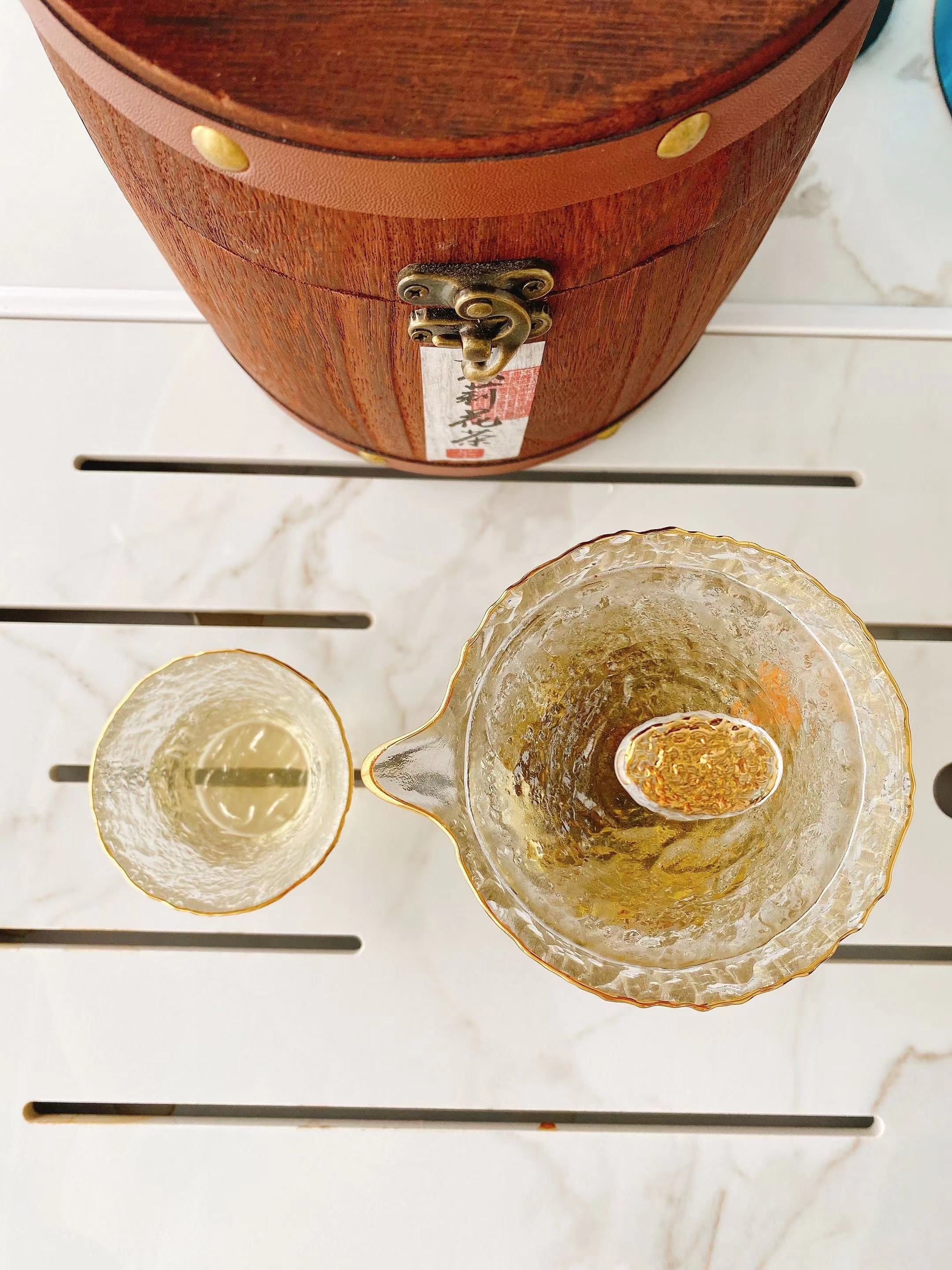 茶汤清澈微黄泛绿、口感鲜爽,香气馥郁、滋味醇和,好喝看得见!茶表诚意,馈赠八方,古朴木桶装,送礼大气得体!