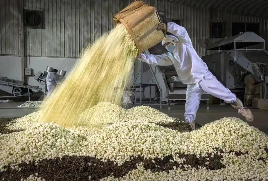 让茶叶吸收茉莉花的香气,变成带有花香的茶