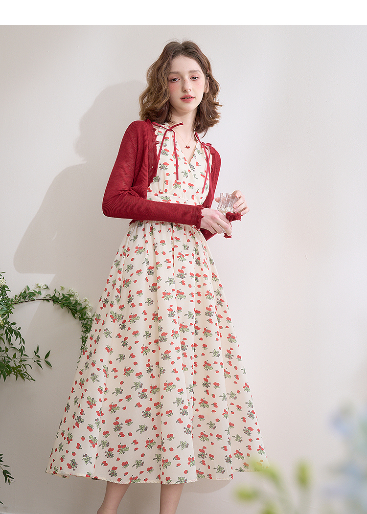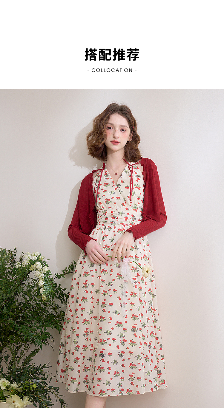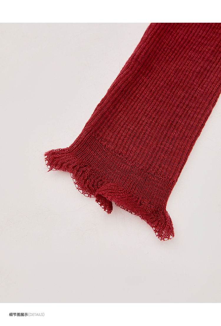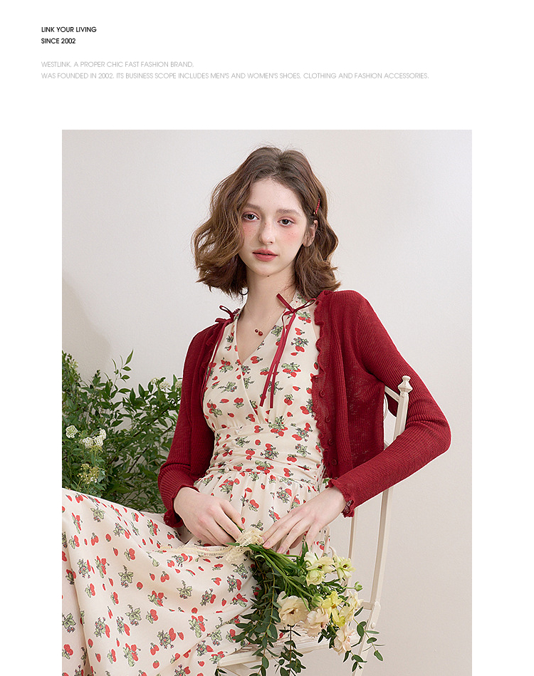 西遇薄款针织开衫女夏季新款木耳边红色短款外搭空调衫上衣D0050484