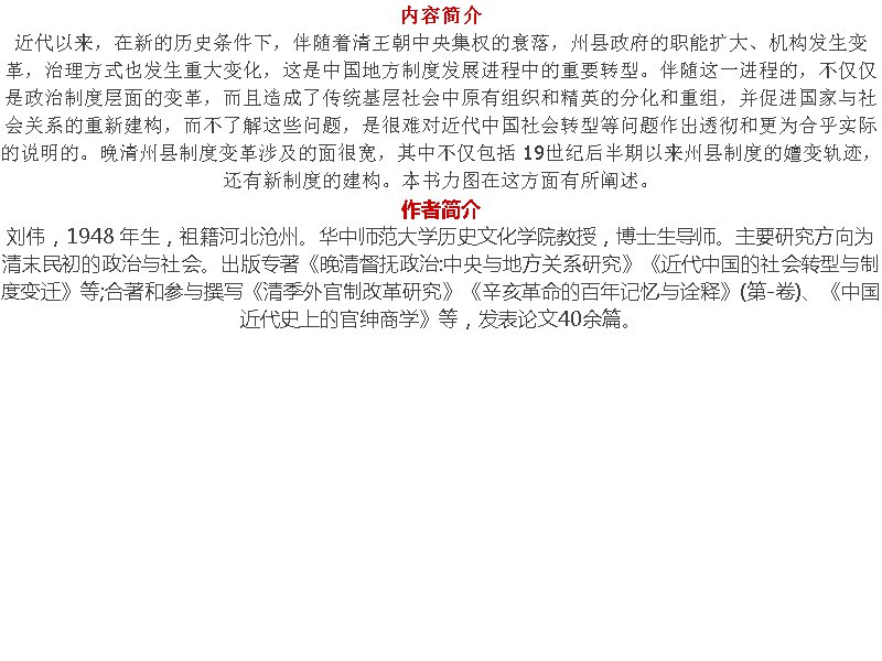 清季州县改制与地方社会 中华学人丛书 9787303241149 刘伟 著 北京师范大学出版社 正版书籍