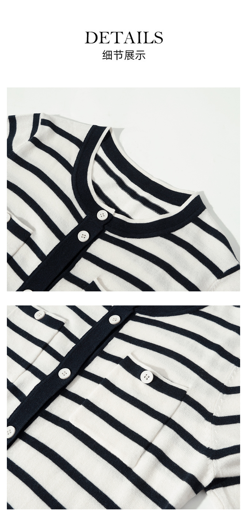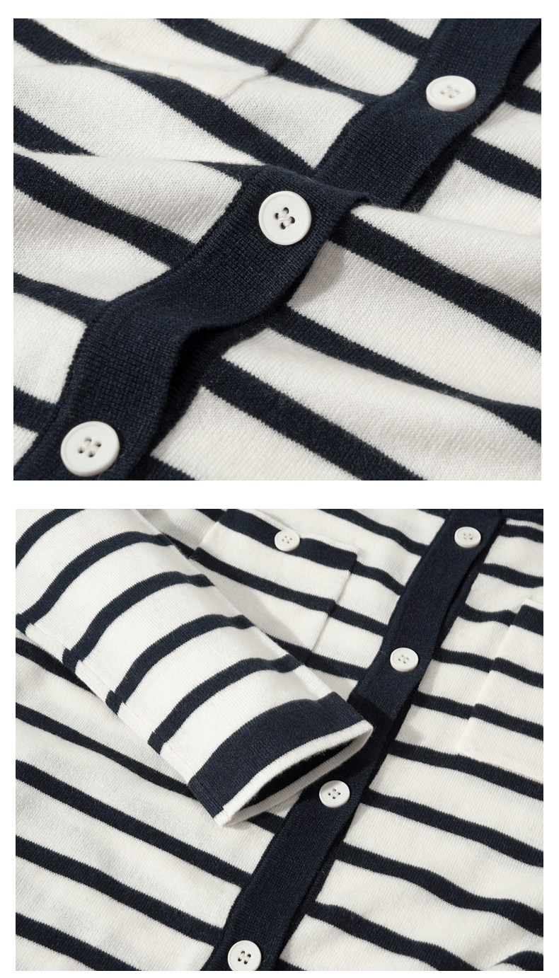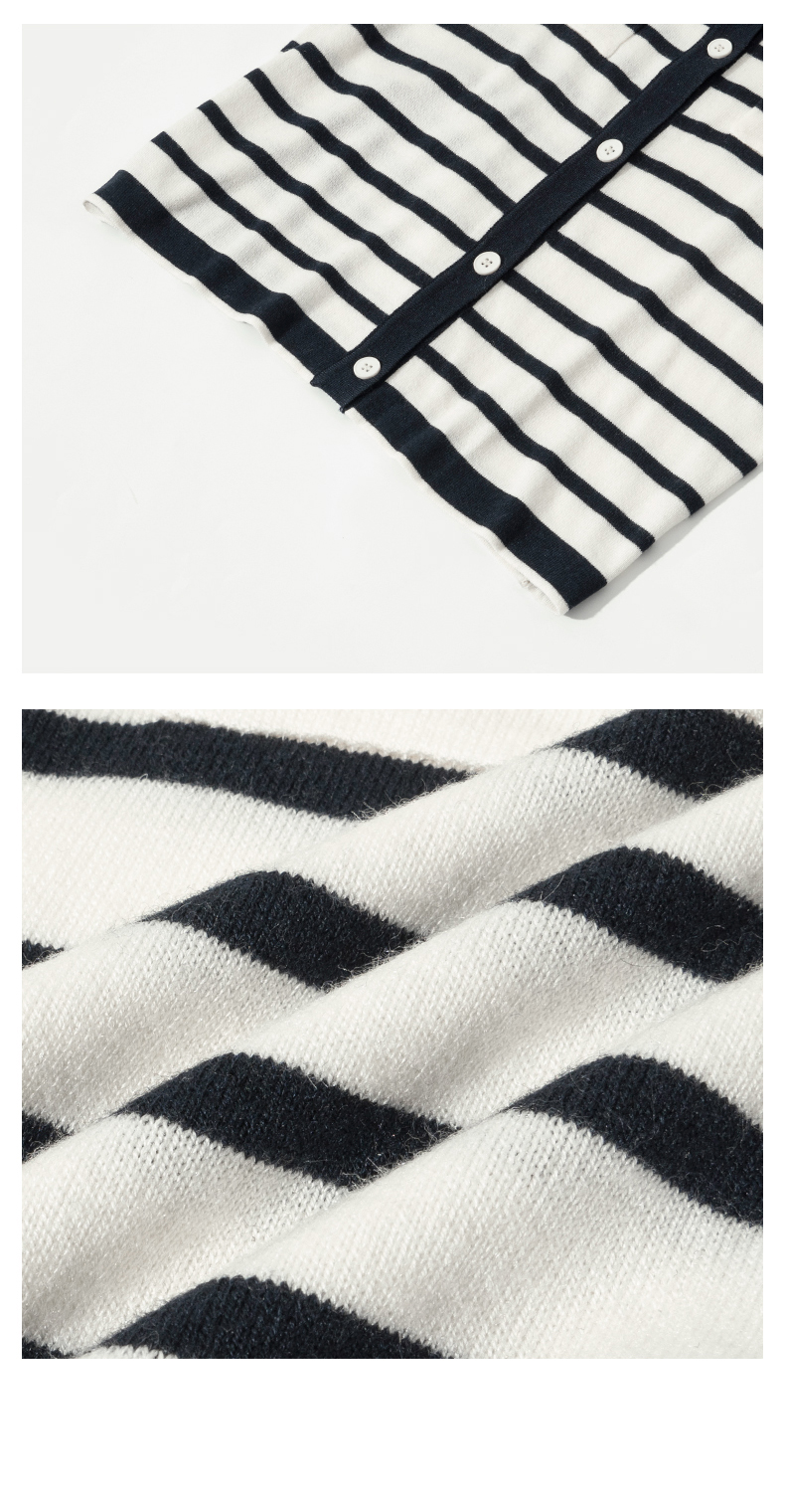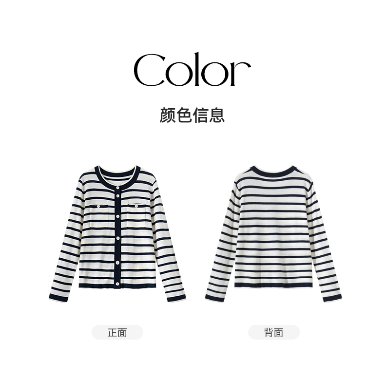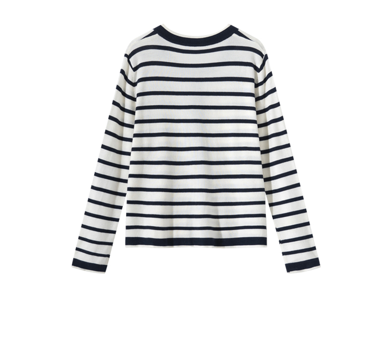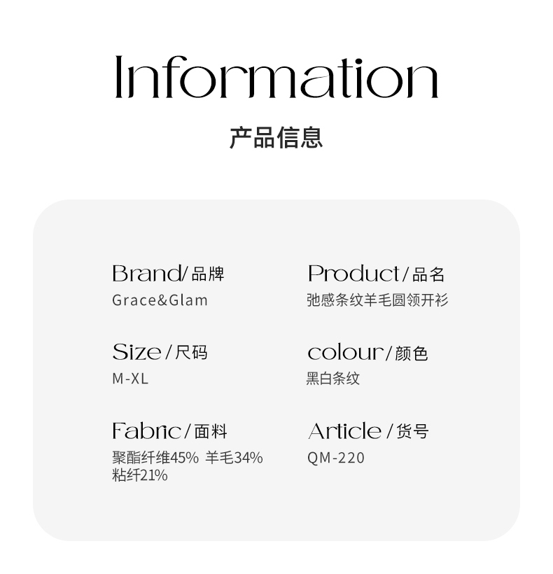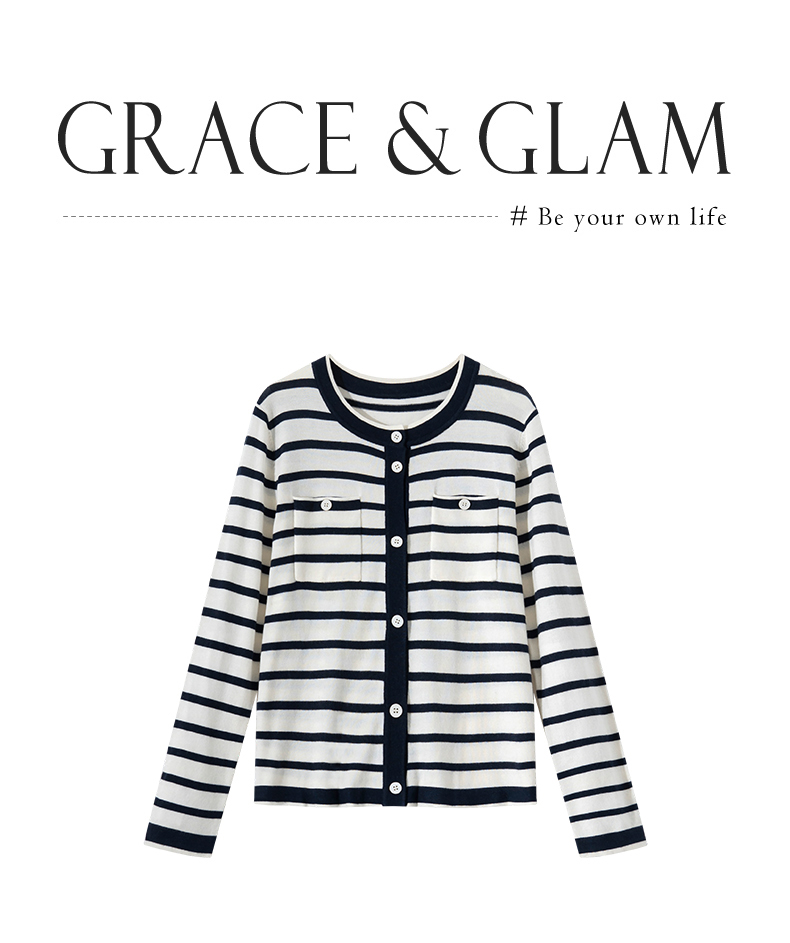 Grace&Glam 松弛感条纹羊毛圆领开衫