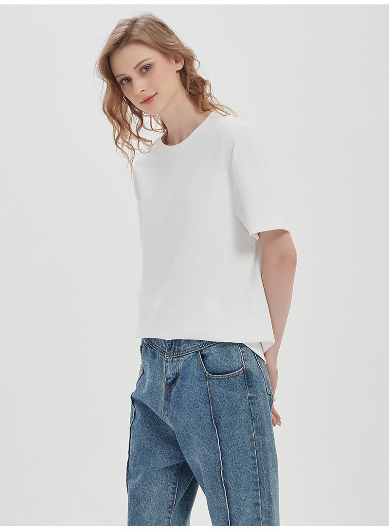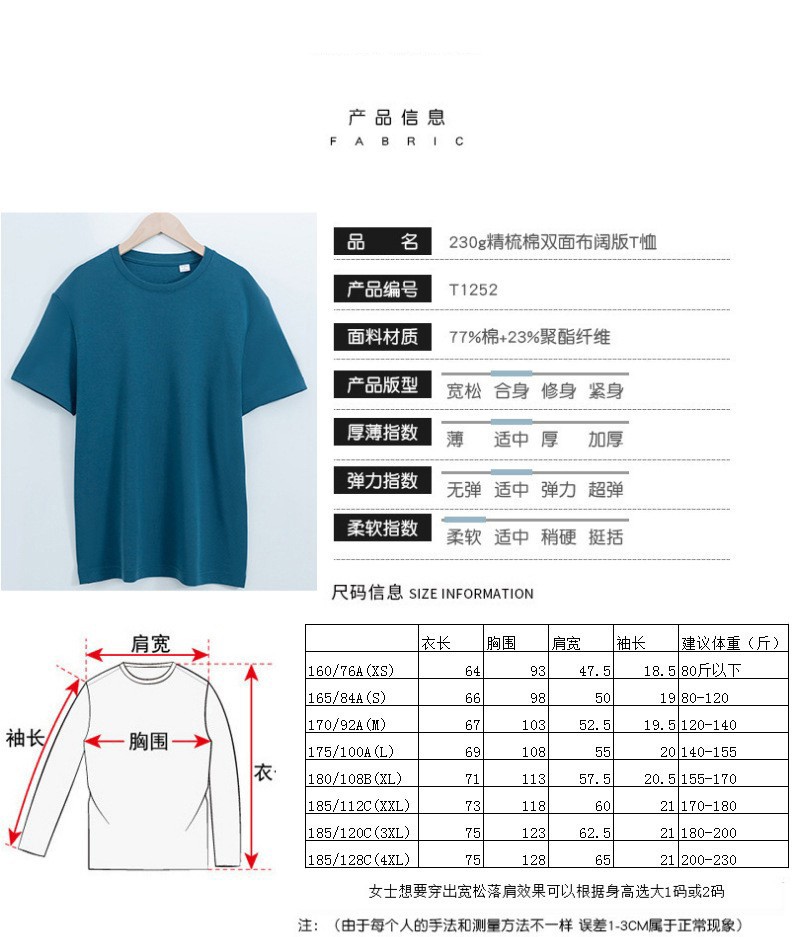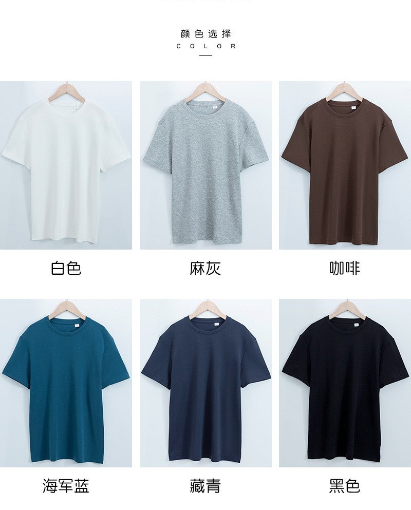 岸纾 双面新疆长绒棉短袖T恤230g(6色可选)情侣款短袖经典圆领简约设计T1252