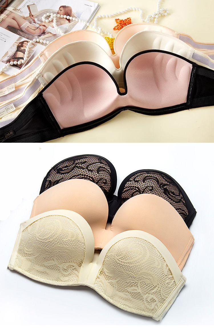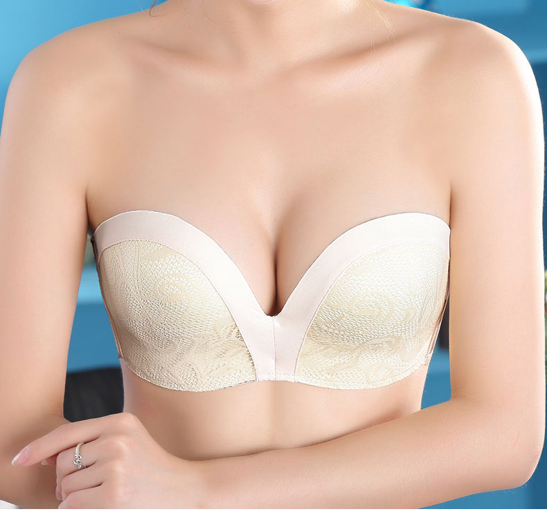 无肩带内衣聚拢防滑上托无钢圈文胸女抹胸薄款隐形小胸贴加厚性感