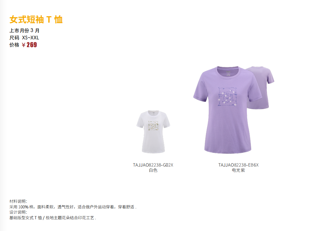 探路者女式棉T恤TAJJAO82238