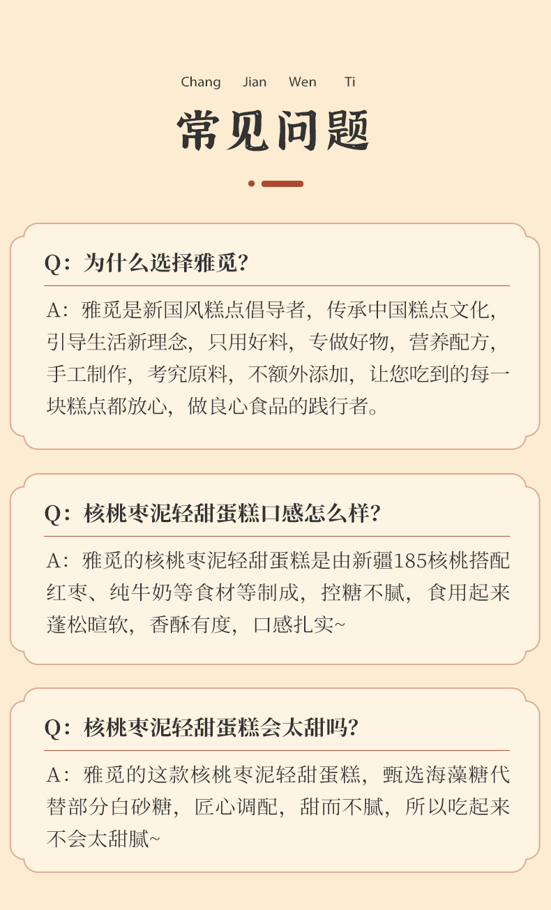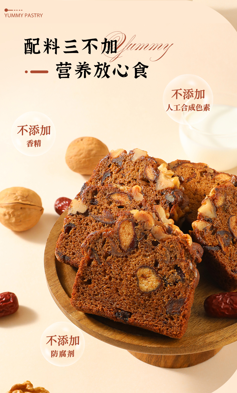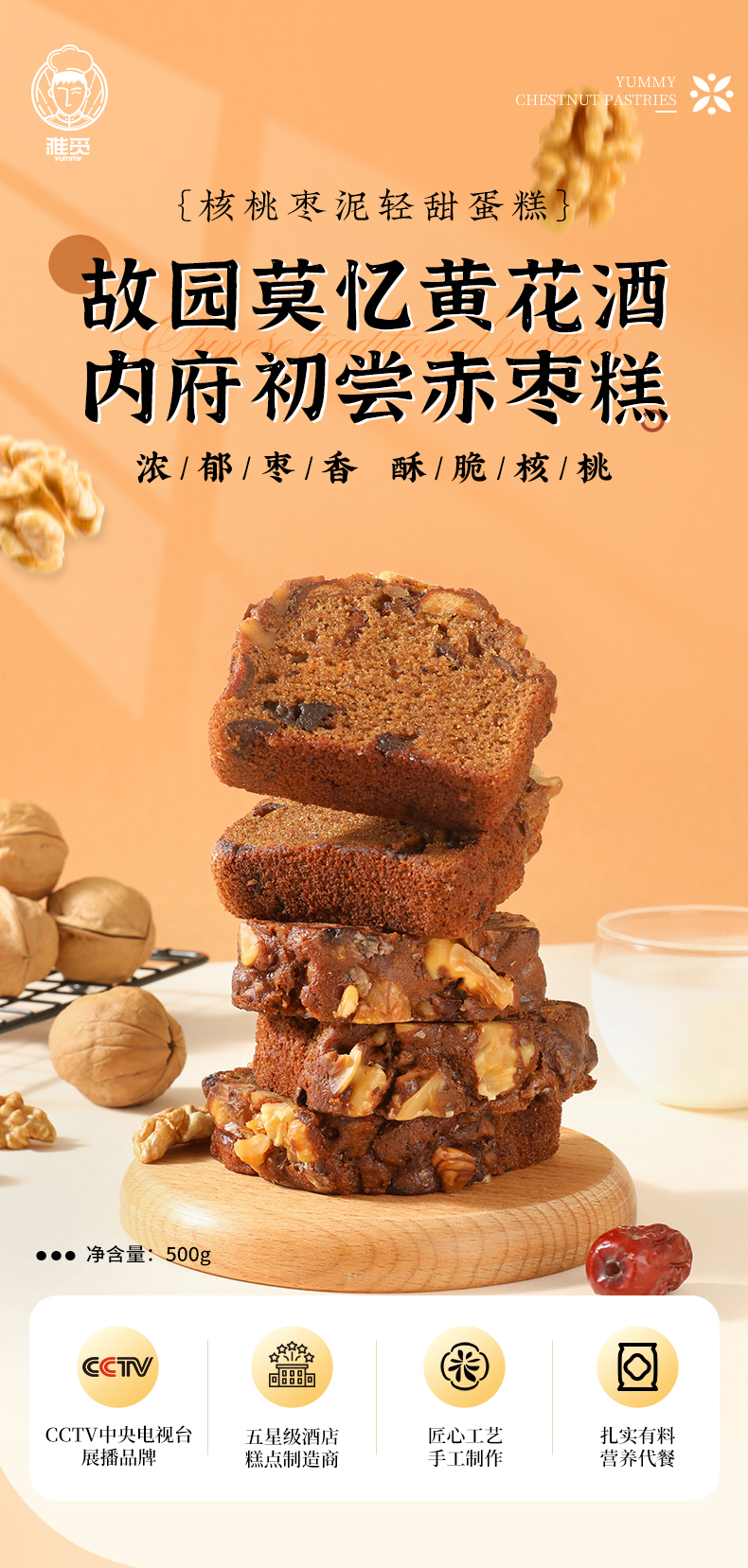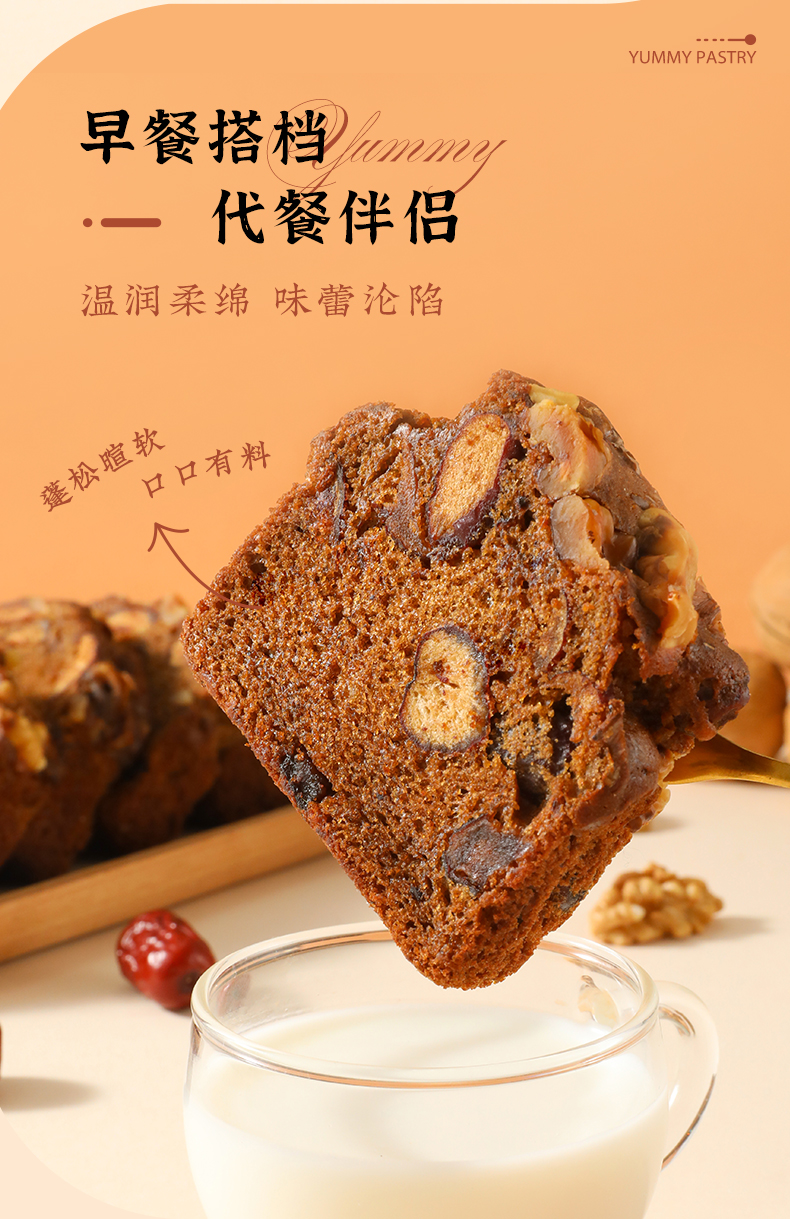 雅觅 核桃枣泥轻甜蛋糕 500g/盒 甄选新疆185核桃+大粒红枣 纯牛奶鸡蛋和面 配料干净! 口感丰盈,好吃不贵,独立小包装,携带方便,饱腹感强