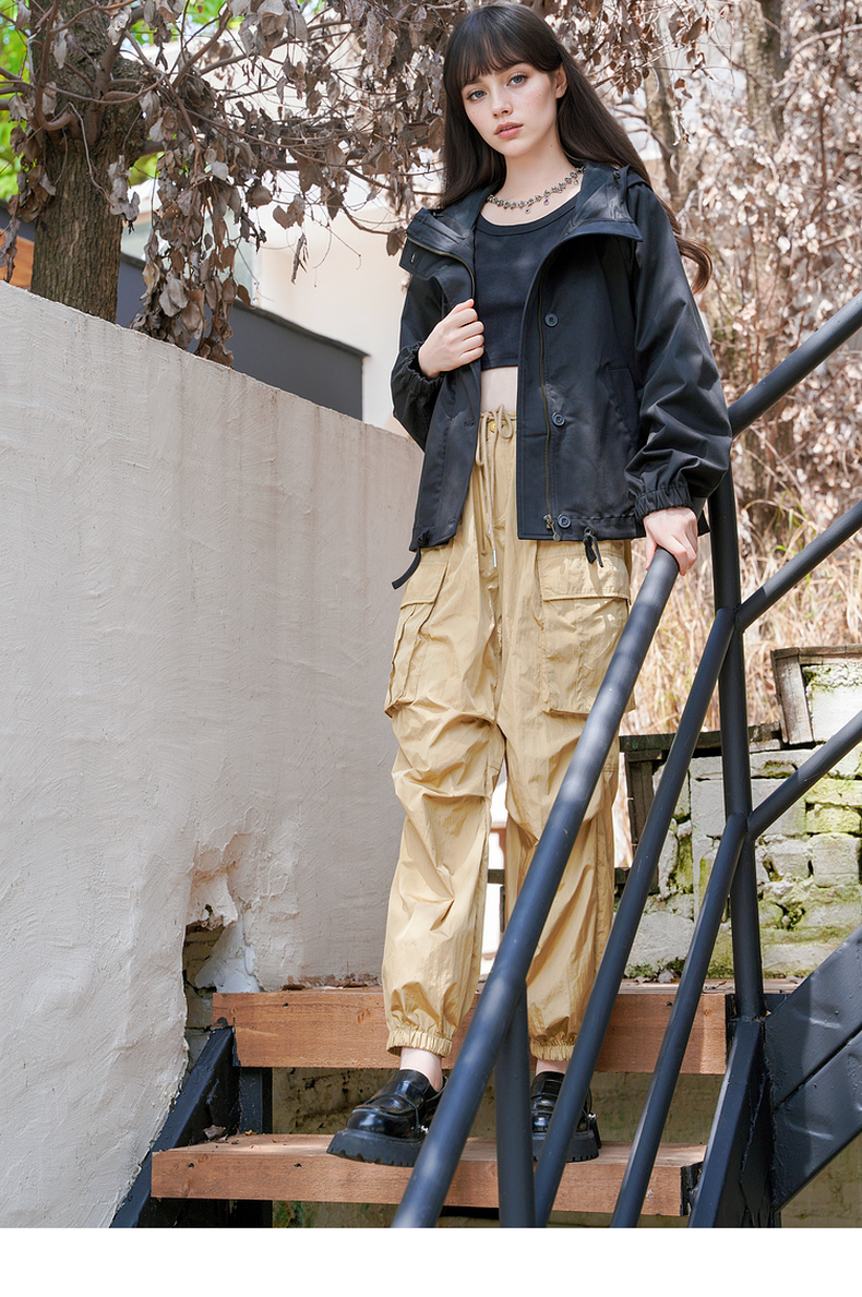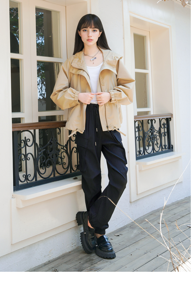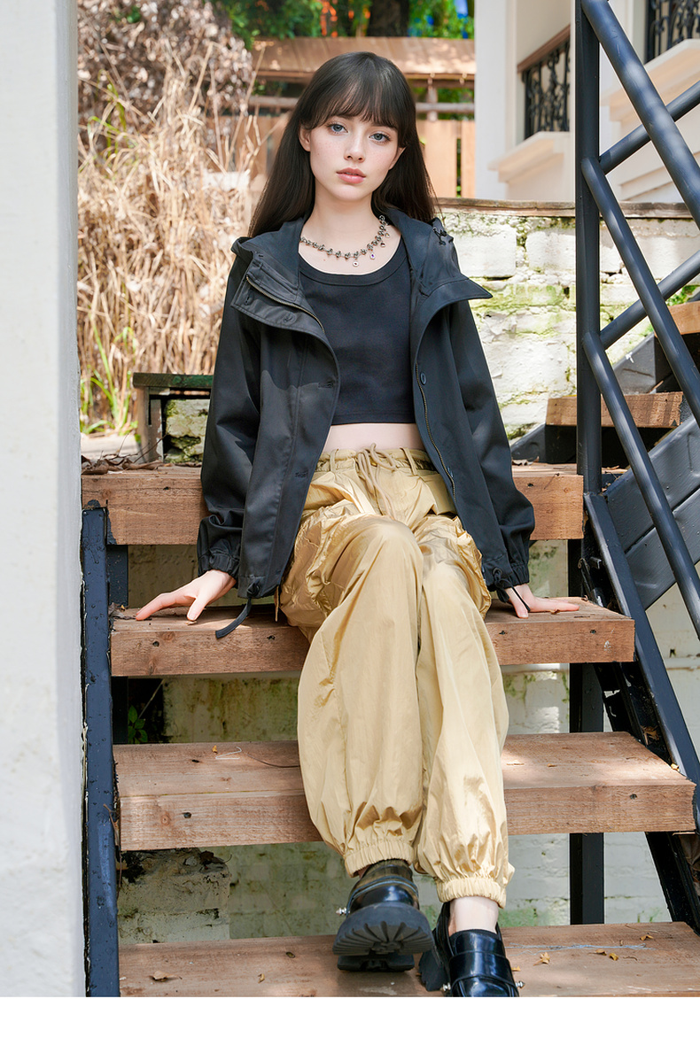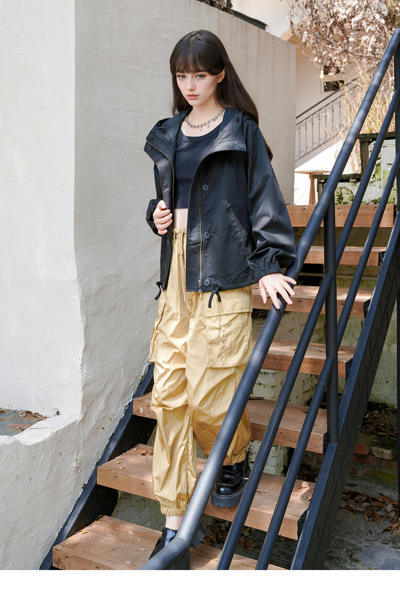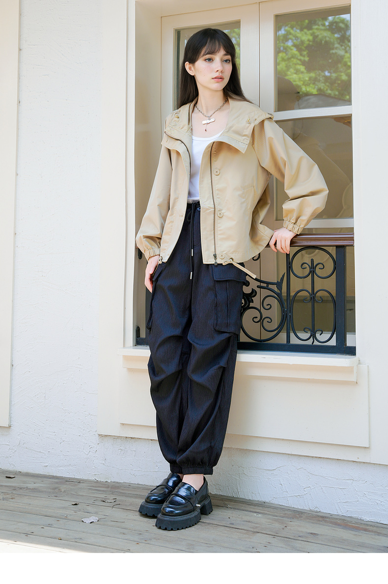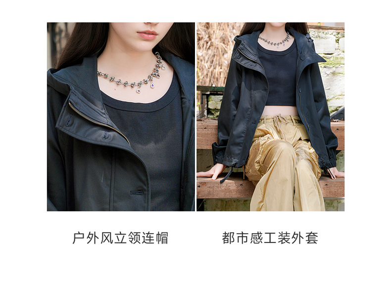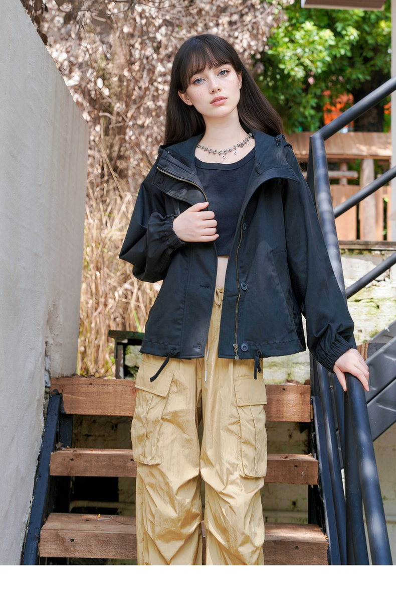 谜底连帽短款风衣外套女2025秋季新款休闲百搭宽松夹克257MW7844