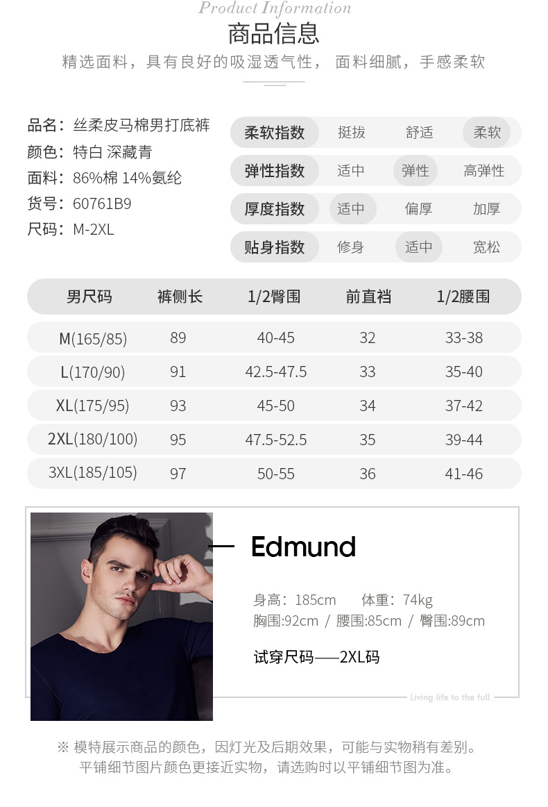 Threegun三枪【匠心系列-120支丝柔皮马棉】男士打底裤保暖长裤-60761B921