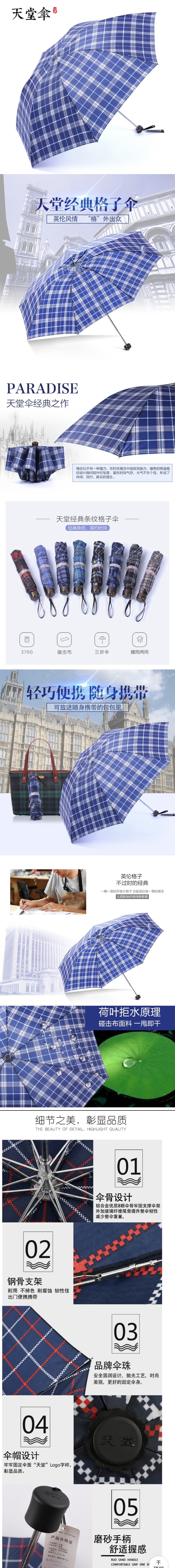天堂伞丨格子伞男女雨伞折叠晴雨两用遮阳伞防晒太阳伞学生 加大款-灰黑格子(带蓝色线条) - 33641E格