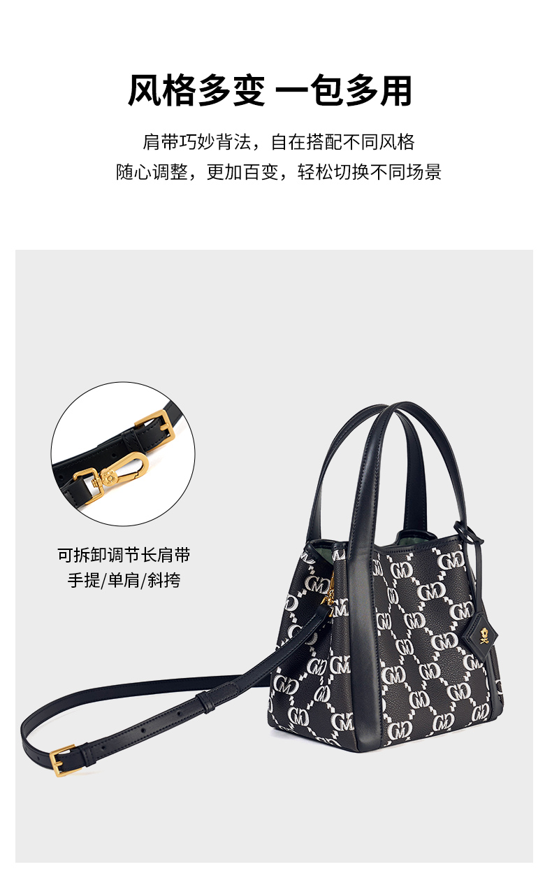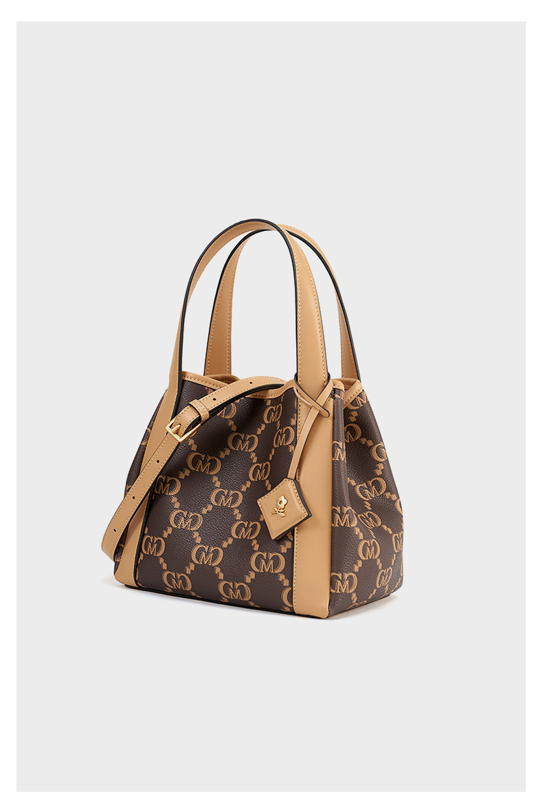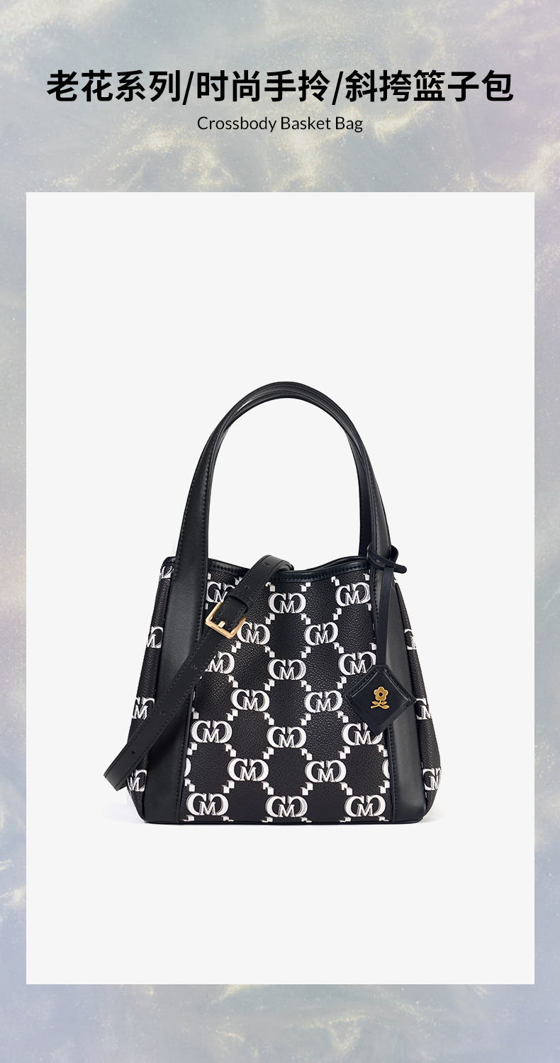 梦特娇女包新款小众时尚通勤复古老花水桶包礼盒单肩斜挎包女