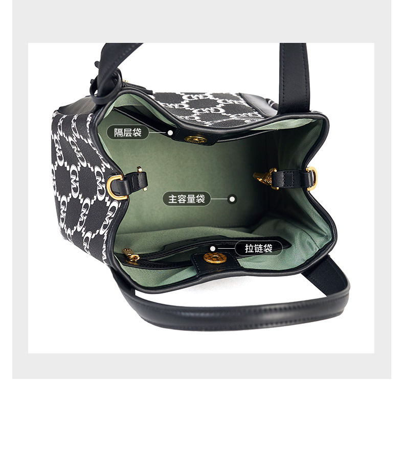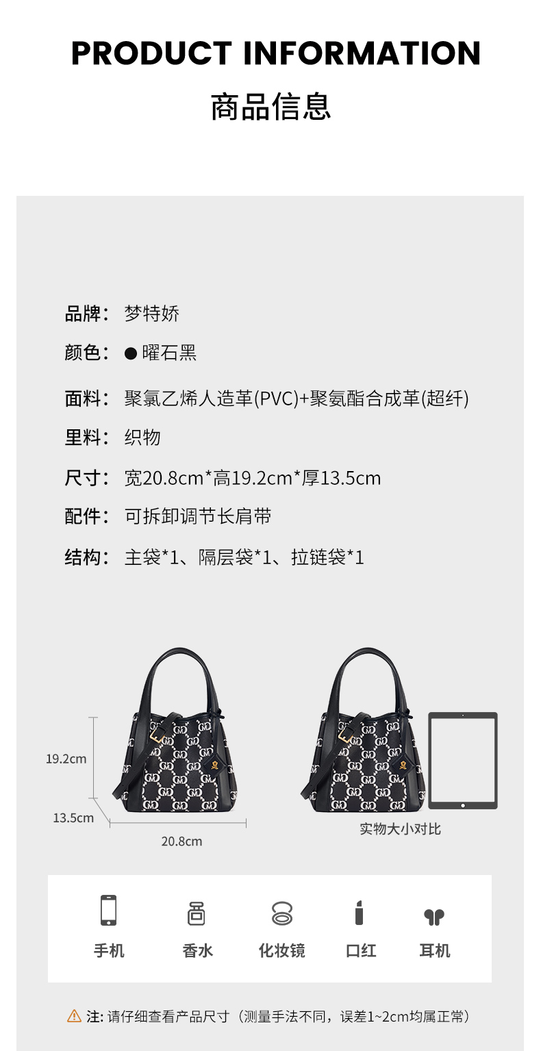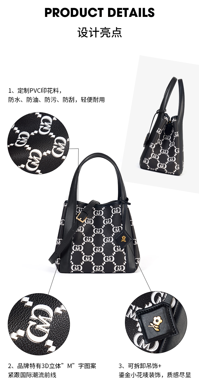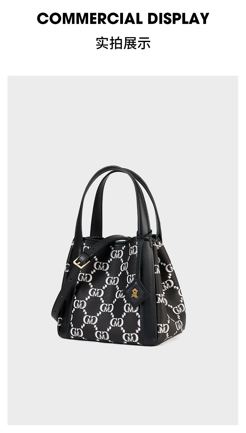 梦特娇女包新款小众时尚通勤复古老花水桶包礼盒单肩斜挎包女
