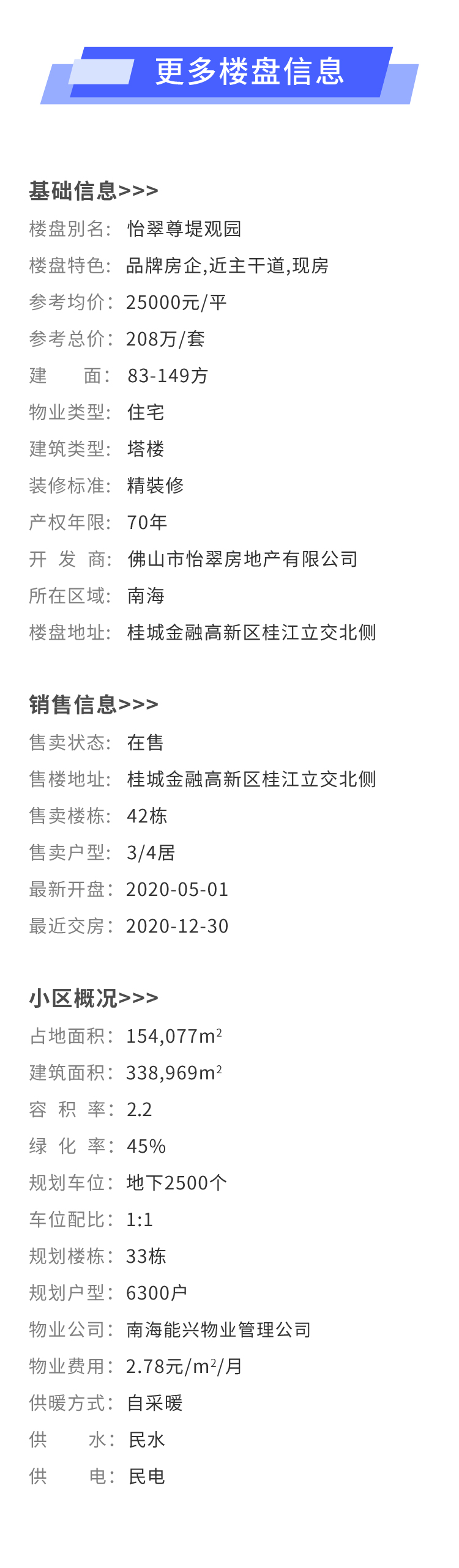 【佛山南海】怡翠尊堤 参考均价:25000元/平 建面:83-149方 参考总价:208万/套