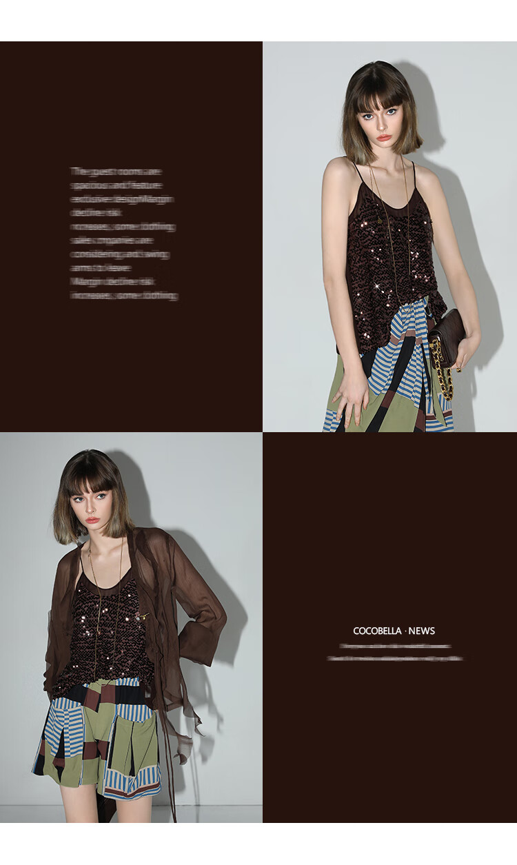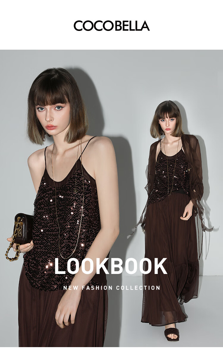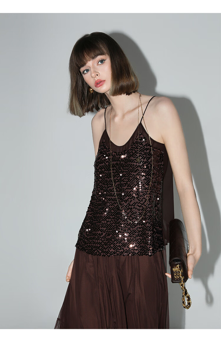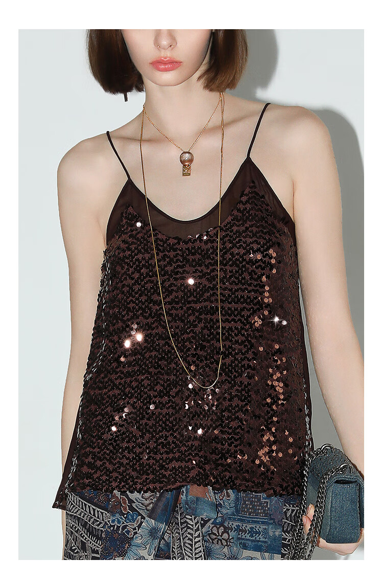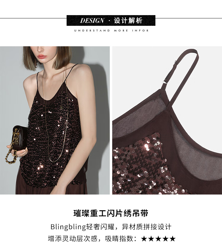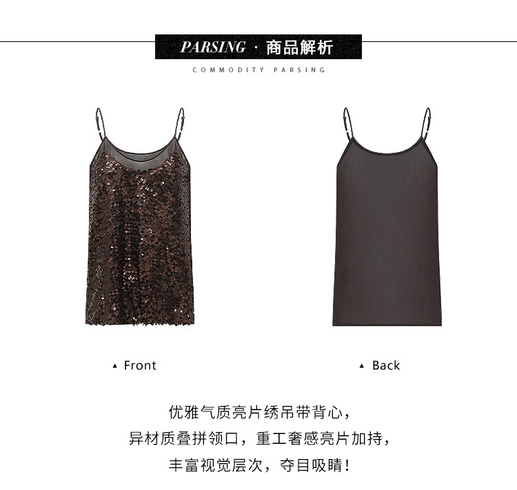COCOBELLA气质优雅亮片绣吊带微性感V领内搭可外穿背心DA13-3
