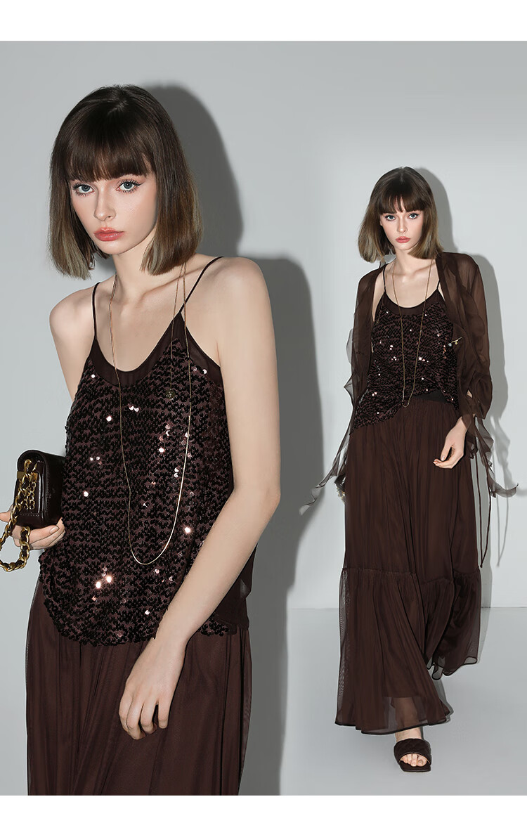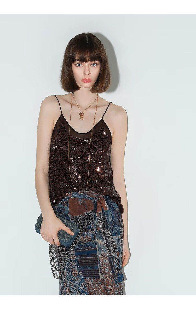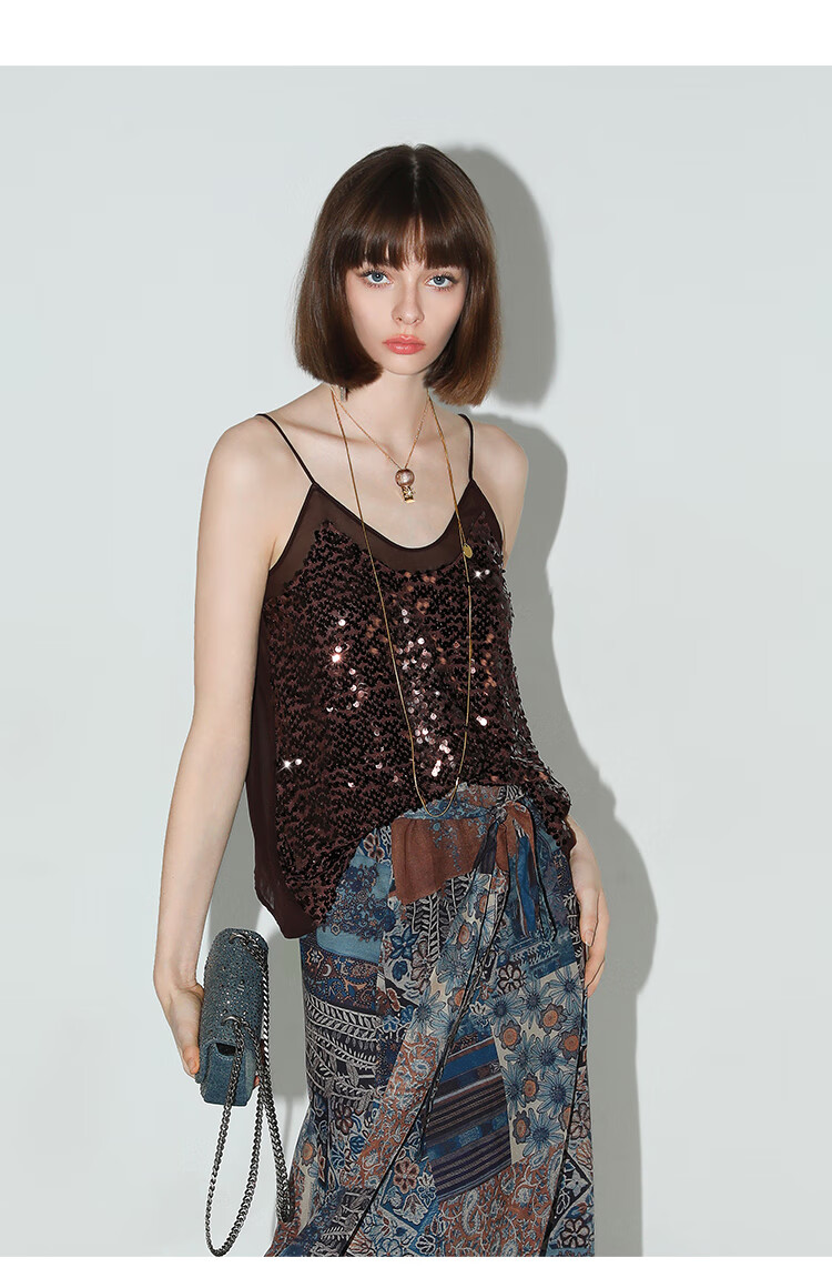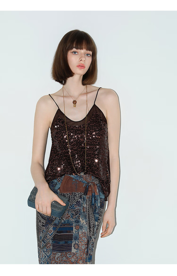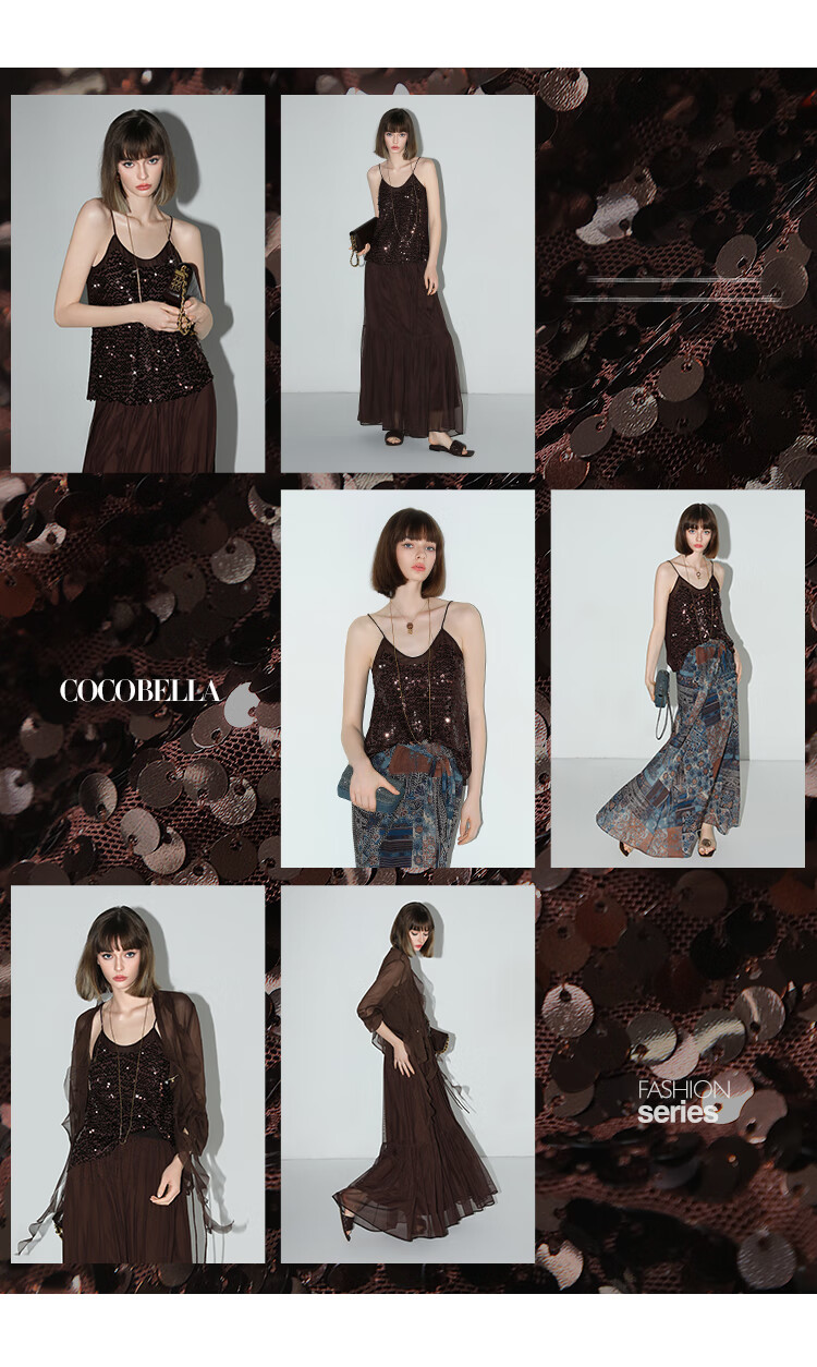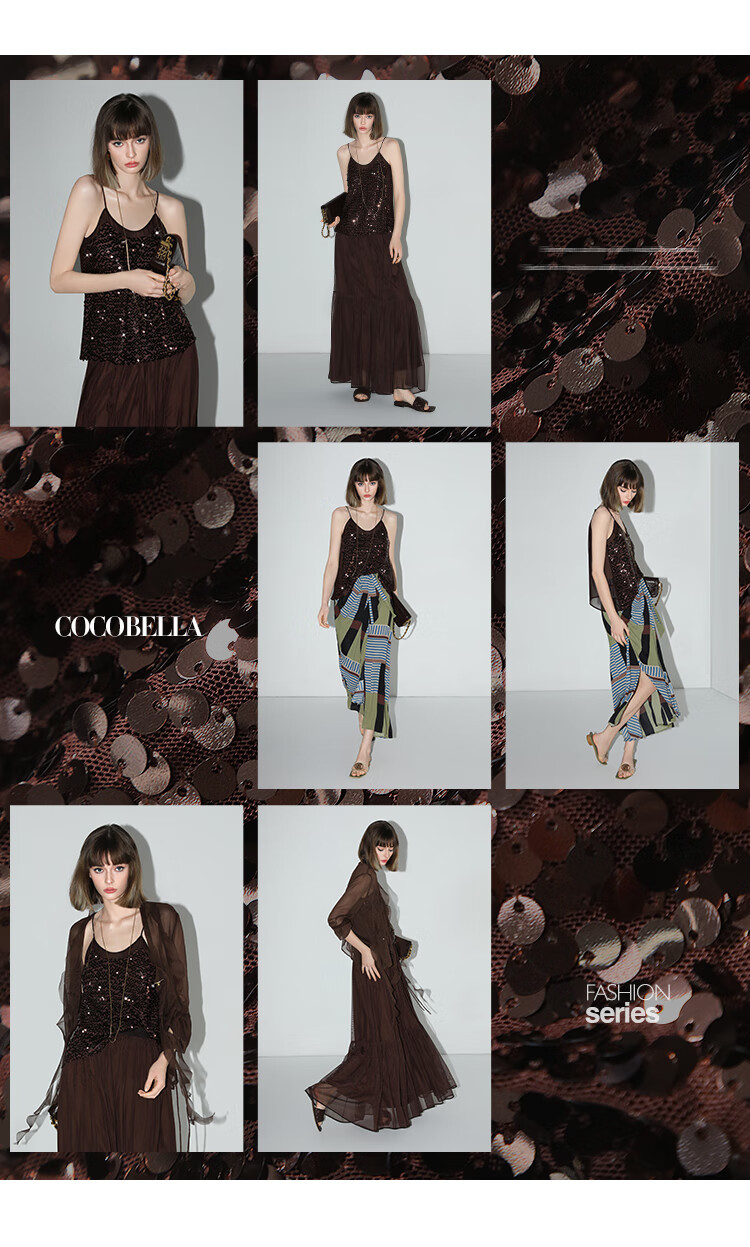 COCOBELLA气质优雅亮片绣吊带微性感V领内搭可外穿背心DA13-3
