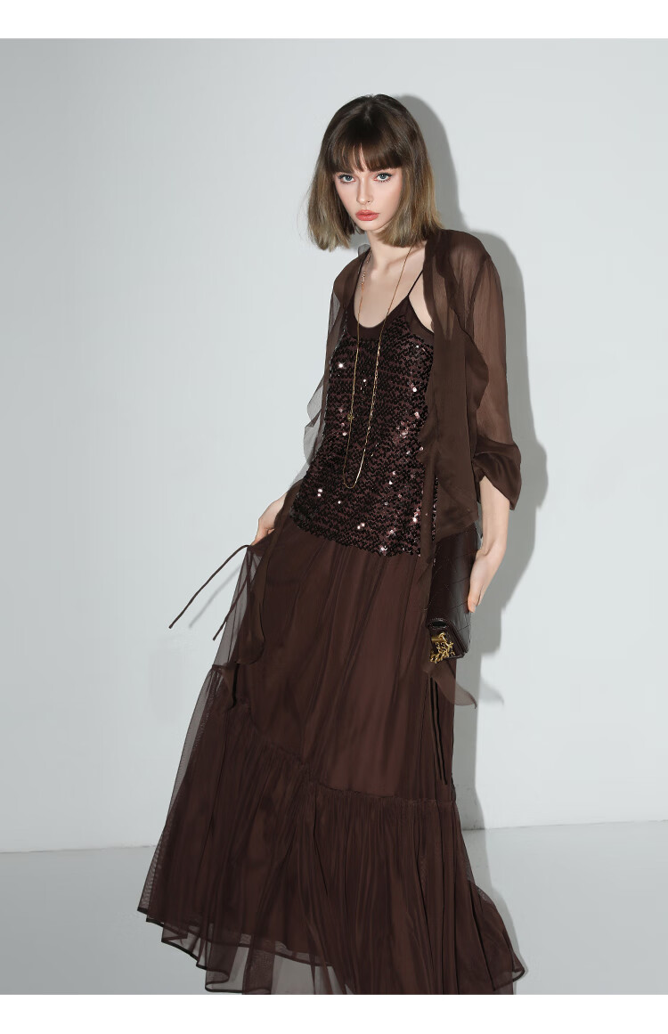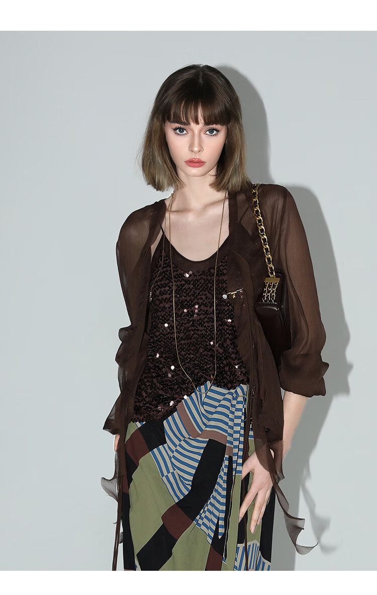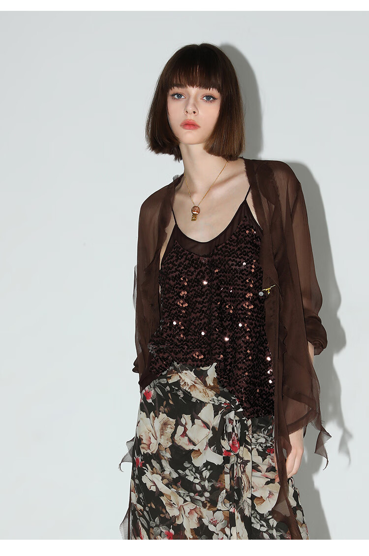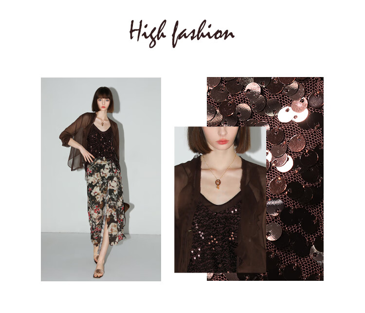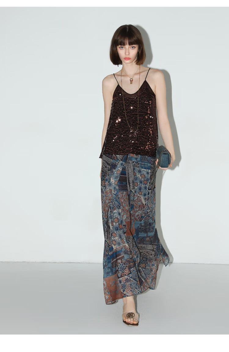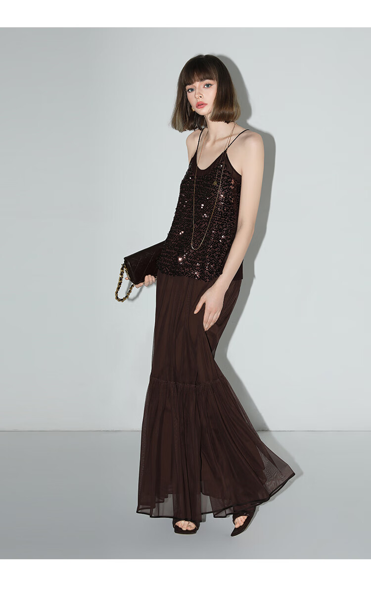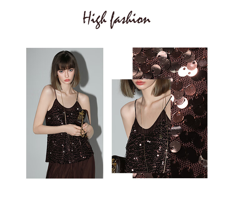 COCOBELLA气质优雅亮片绣吊带微性感V领内搭可外穿背心DA13-3