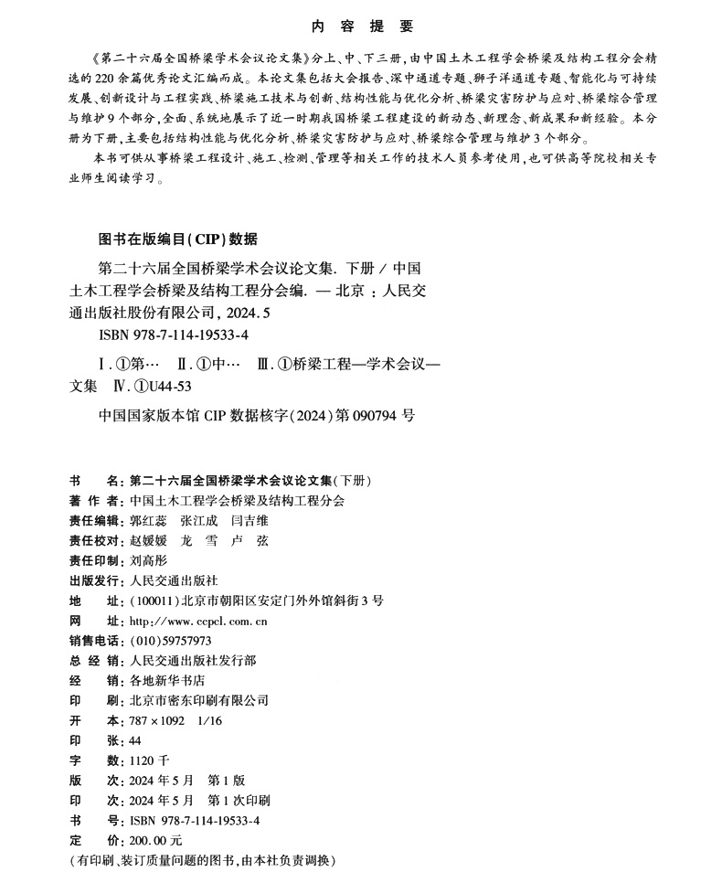 书名:第二十六届全国桥梁学术会议论文集(下册)