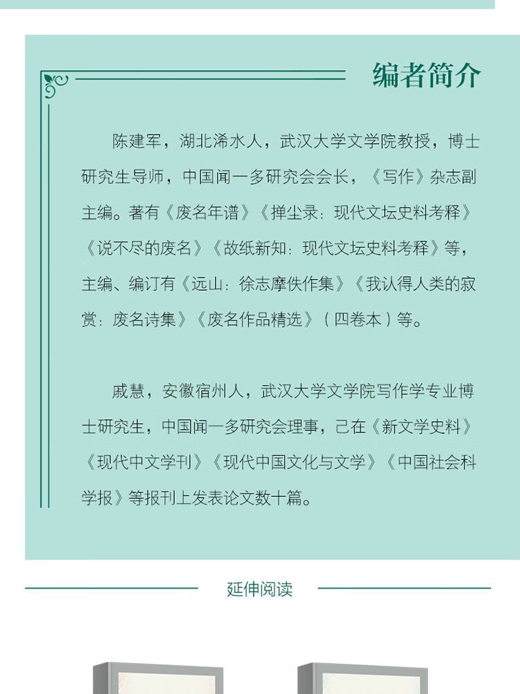 陈建军,湖北浠水人,武汉大学文学院教授,博士研究生导师,中国闻一多研究会会长,《写作》杂志副主编。著有《废名年谱》《掸尘录:现代文坛史料考释》《说不尽的废名》《故纸新知:现代文坛史料考释》等,主编、编订有《远山:徐志摩佚作集》《我认得人类的寂赏:废名诗集》《废名作品精选》(四卷本)等。