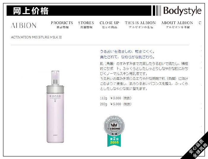 【不买会亏】奥尔滨ALBION EXAGE活润保湿渗透乳液2号保湿型200g
