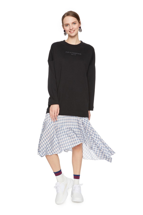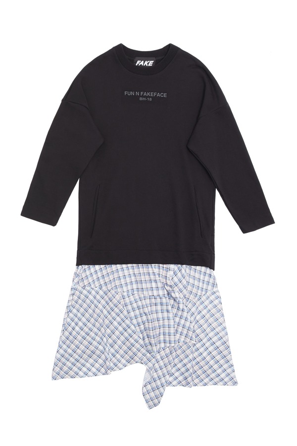 BASIC HOUSE 格纹拼接卫衣连衣裙 5866