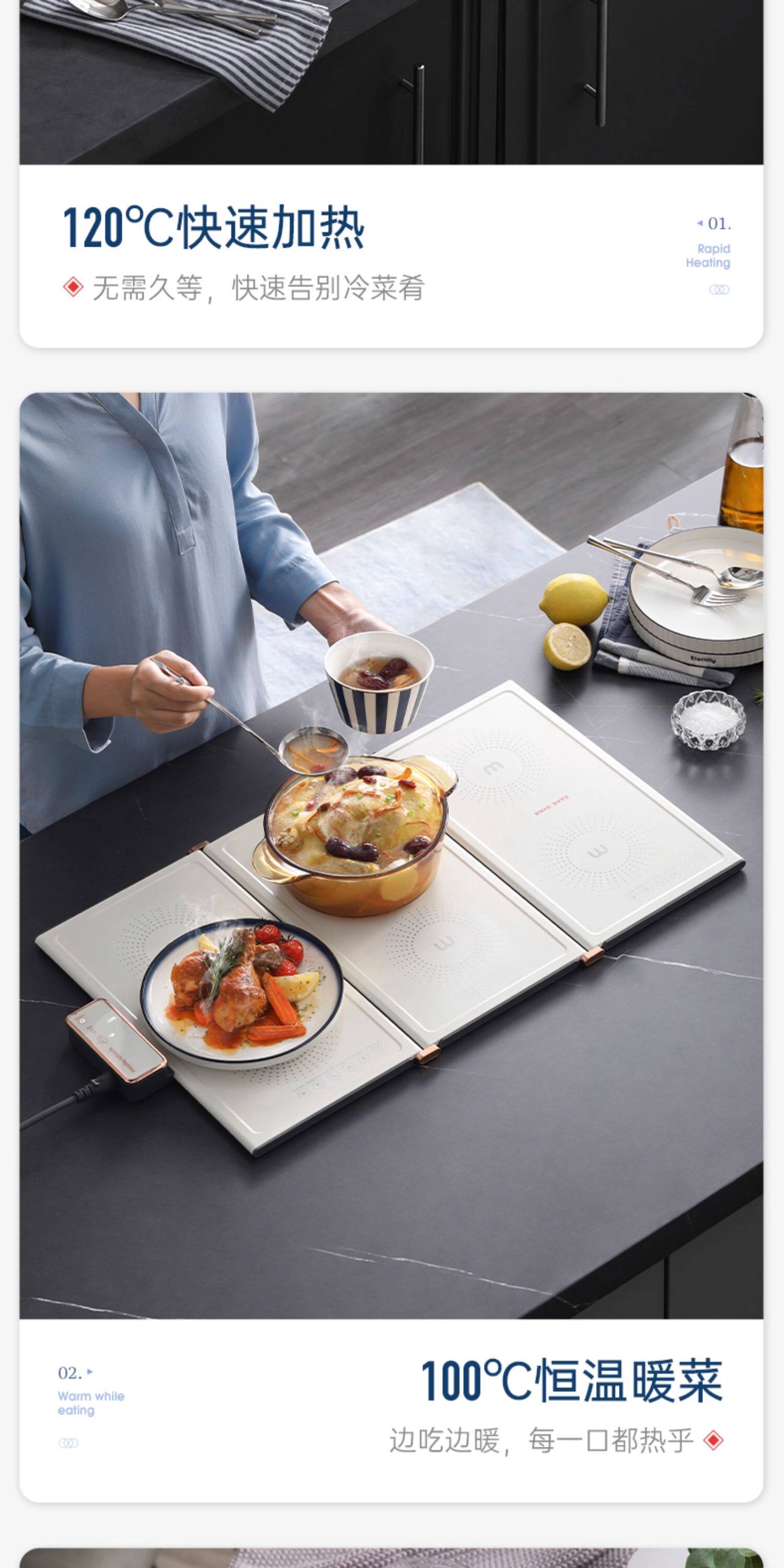 【摩飞长形暖菜板】摩飞折叠暖菜板保温家用长方形多功能智能热饭垫热牛奶冬季热菜板