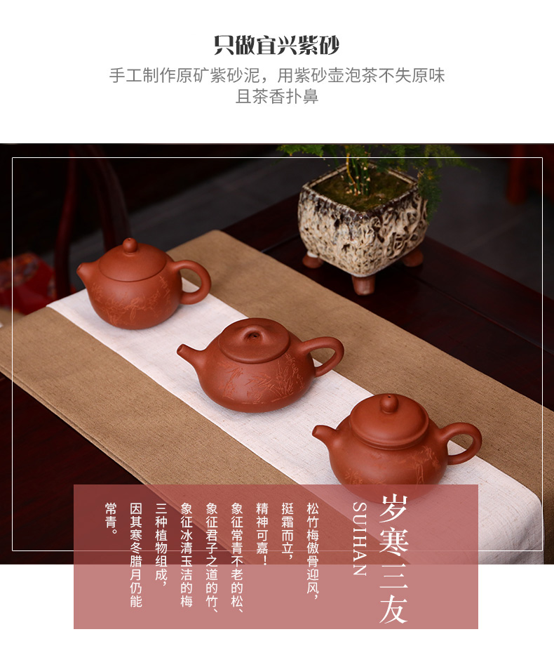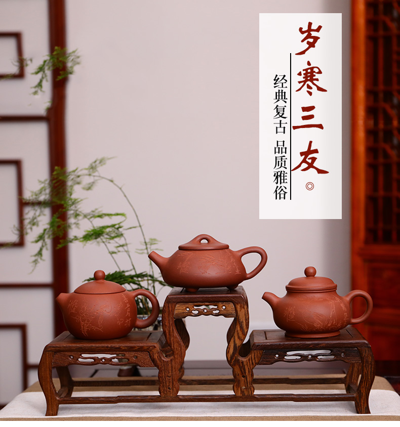 【经典】宜兴原矿紫砂壶岁寒三友 经典复古 品质雅俗