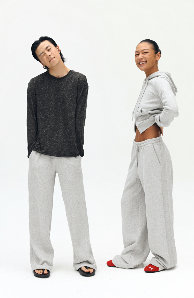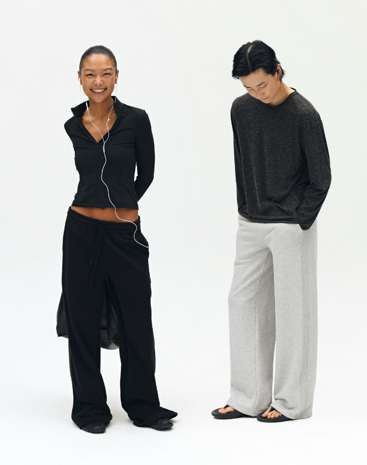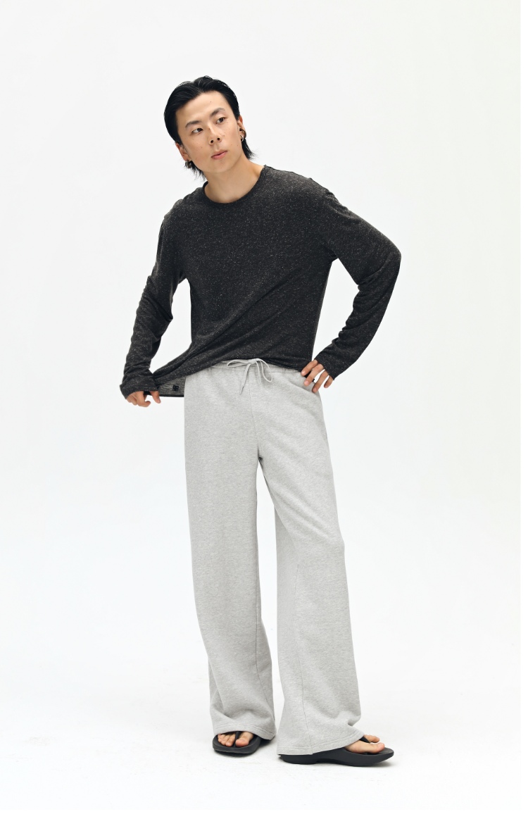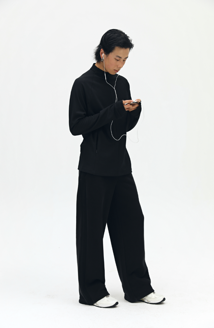 oneup罗纹拼接直筒卫裤